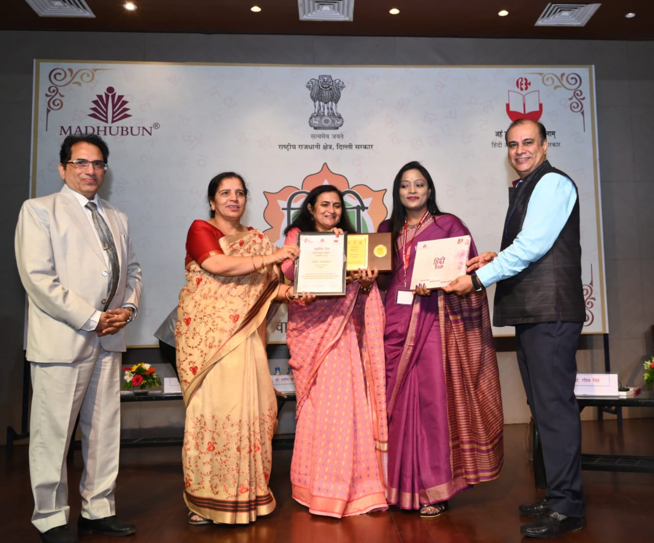 IVWS is proud to announce that our Senior Secondary Hindi teacher, Ms. Sangeeta Jaiswal, was felicitated on the auspicious occasion of Hindi Diwas, where teachers from all states of India were invited on 13th September to celebrate Hindi Hai Hum organised by Madhuban Prakashan and Bharatiya Hindi Academy under the aegis of the State Government of Delhi. The occasion was hosted at P H D Chamber of Commerce situated at Haus Khas in New Delhi. The Chief Guest of this programme was Kapil Mishra, Minister, Government of Delhi. Dr.Rashmi Singh (I A S), Prof. Chand Kiran Saluja, Dr. Suresh Pant, Dr. Pradip Kumar Jain, the Ambassador of Surinam Shree Arun Kumar, the Ambassador of Iran Dr. Hossain Wamiri, veteran Journalists Abhishek Jain, Gopal Baghel Madhu, The , President of Vishwa Hindi Samiti of Toronto, Canada, Principal Prof. Rama , and the News Reader of Aj Tak Sayeed Ansari graced the occasion as Special Guests.