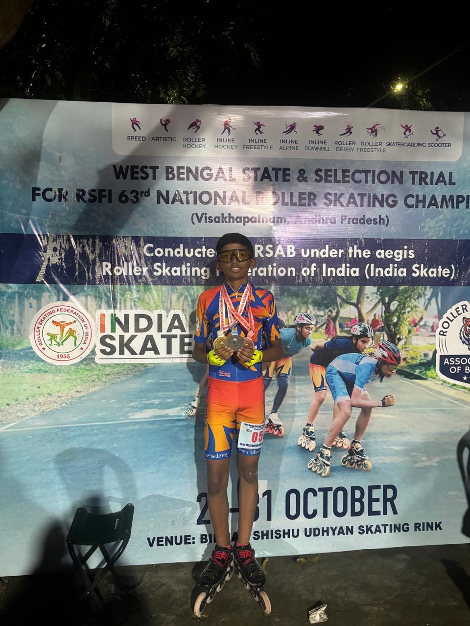 Ansh Sonar, student of IVW School has secured 1 Gold, 1 Silver and 1 Bronze medal in the West Bengal State Skating Championship