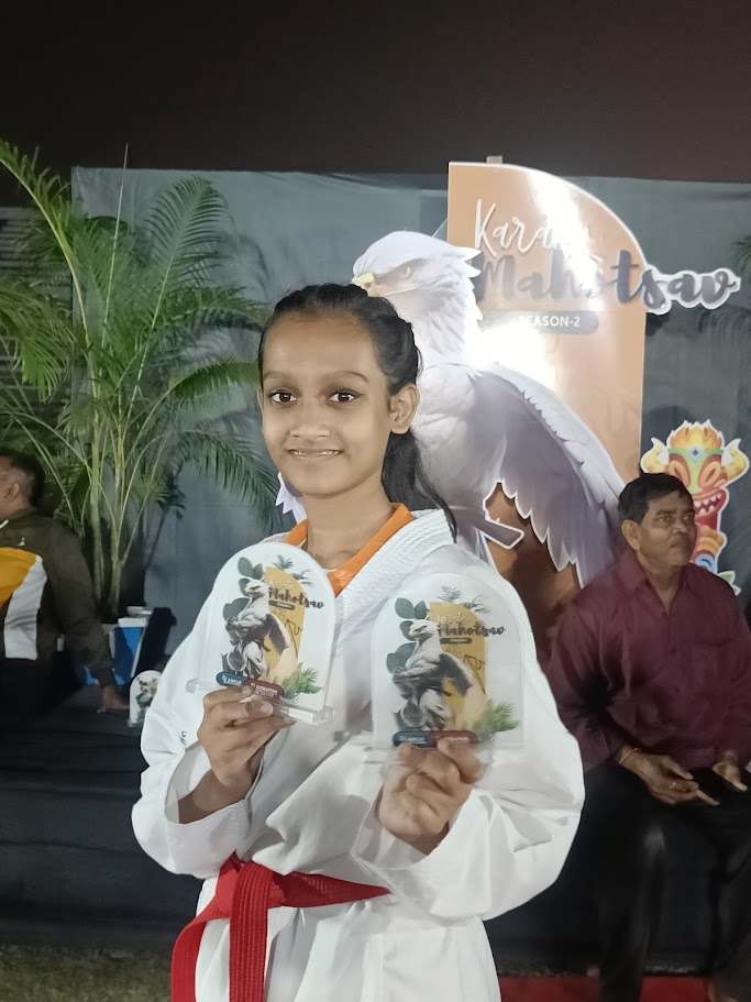 Eedha Chakravartty of class 7D has won two Gold Medals in Kata & Kumite (fight) in the Karate Mahotsav Season 2
