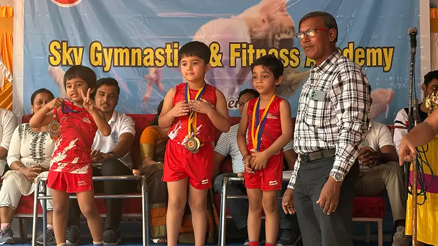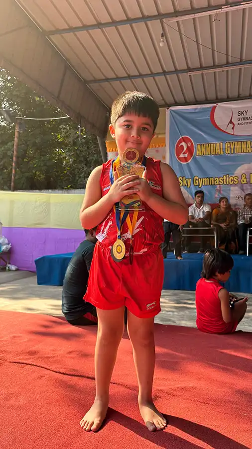 Agneev Ghosh of UKG A has won medals in all 3 categories that he participated in his recent Gymnastic competition, which was organised by Sky Gymnastics & Fitness Academy.