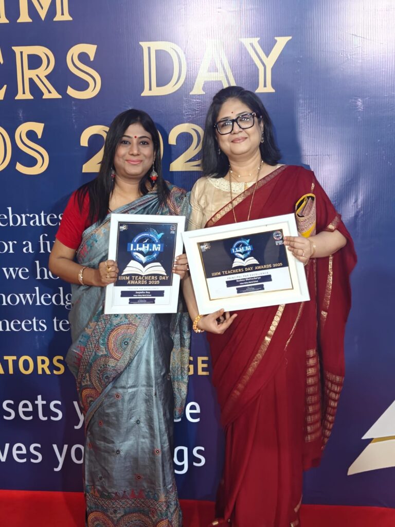 It was indeed a moment of pride as on Saturday 6th September 2025, the school Principal, Ms. Reshma Bhattacharya and Senior Secondary Teacher, Ms. Sanjukta Ray, received “Principal Par Excellence” and “Teacher Par Excellence” awards at the prestigious IIHM Teachers Award 2025 in honour of their valuable contribution in the field of education.