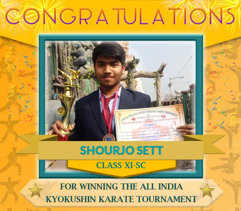 We are proud to announce that Shourjo Sett of Class XI-Sc has won the championship in All India Full Contact Kyokushin Karate Tournament – 15 to 18 yrs category (Kumite Fight) held on 30th & 31st December 2016