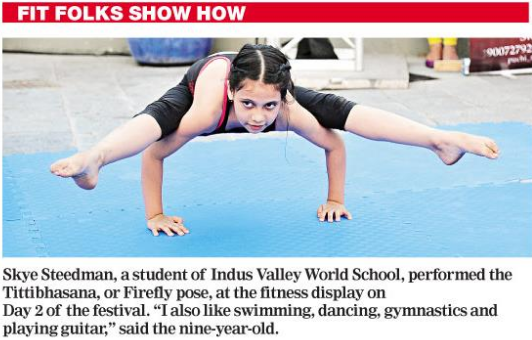 Indus Valley World School is proud to announce their student, Skye Steedman’s act at the fitness display event in the festival ‘Streets of India’ got featured at T2, The Telegraph, 23rd of November edition. We are proud of her.