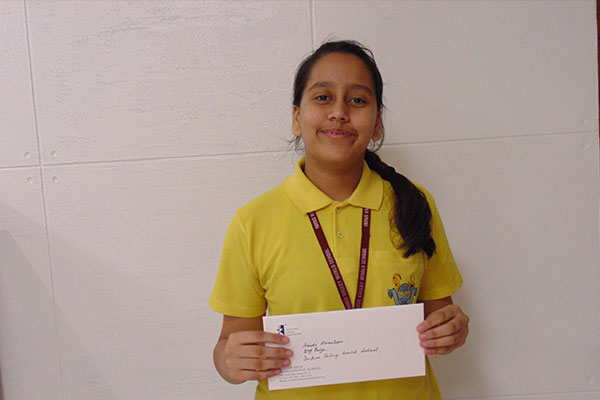 Anvesha Kumar of Grade X represented the Indus Valley World School at the Satikanta Guha Memorial Elocution Competition on 16 April. The programme was organised by Garden High International School and Anvesha came 2nd in the Hindi category winning a cash prize of Rs.5000 and book vouchers worth Rs.2000 for the school.