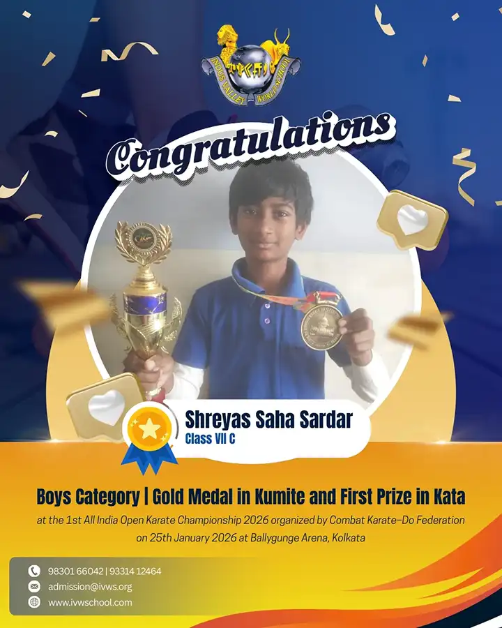 The 1st All India Open Karate Championship 2026 was organized by the Combat Karate–Do Federation on 25th January 2026 at Ballygunge Arena, Kolkata. Students from various schools across the country participated in the championship. Shreyas Saha Sardar of Class VII, Section E, represented our school in the Girls category and delivered an outstanding performance. He clinched the gold medal in Kumite and won first prize in Kata, bringing great pride and honour to the school through his remarkable achievement.