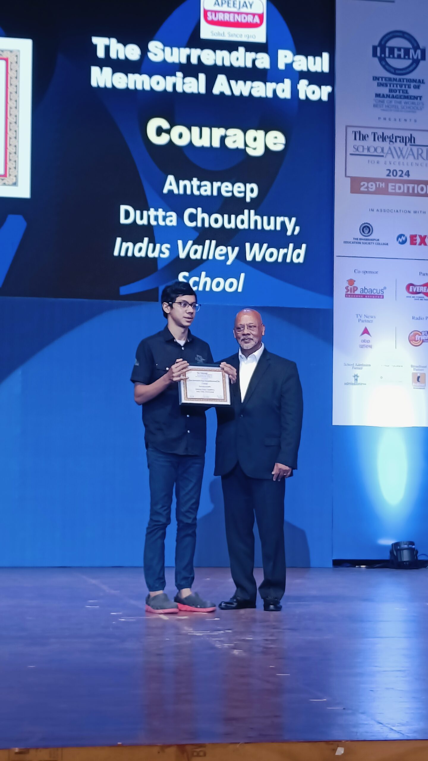 On 24th August 2024, Antareep Dutta Chowdhury of the 2023-24 batch was felicitated with The Telegraph School Award for Courage. Antareep qualified for BITS Pilani (score 249), IISER, WBJEE(502) ISI and has elected to study Bachelor of Data Science Honours in ISI. We are very proud of his achievements.