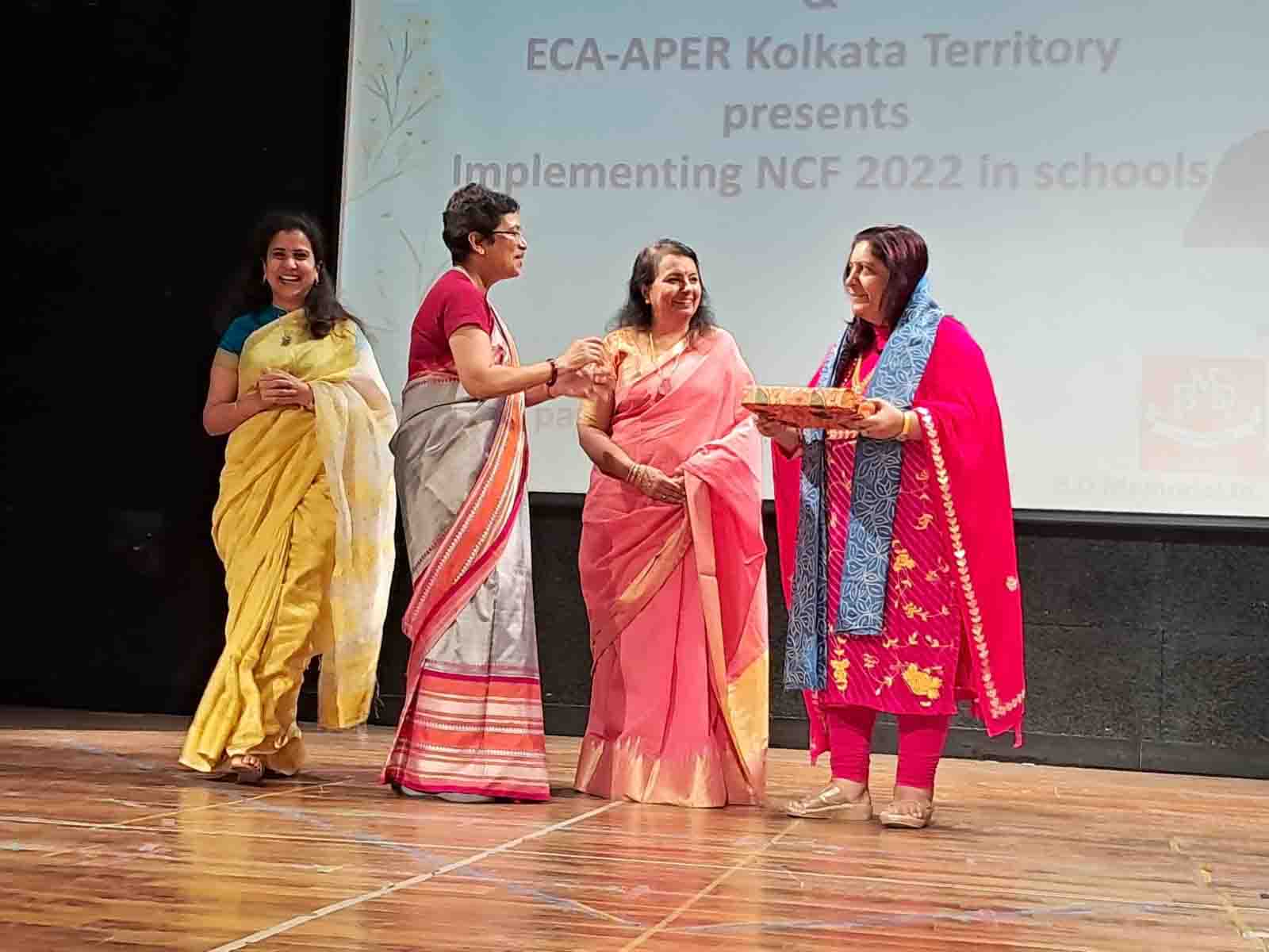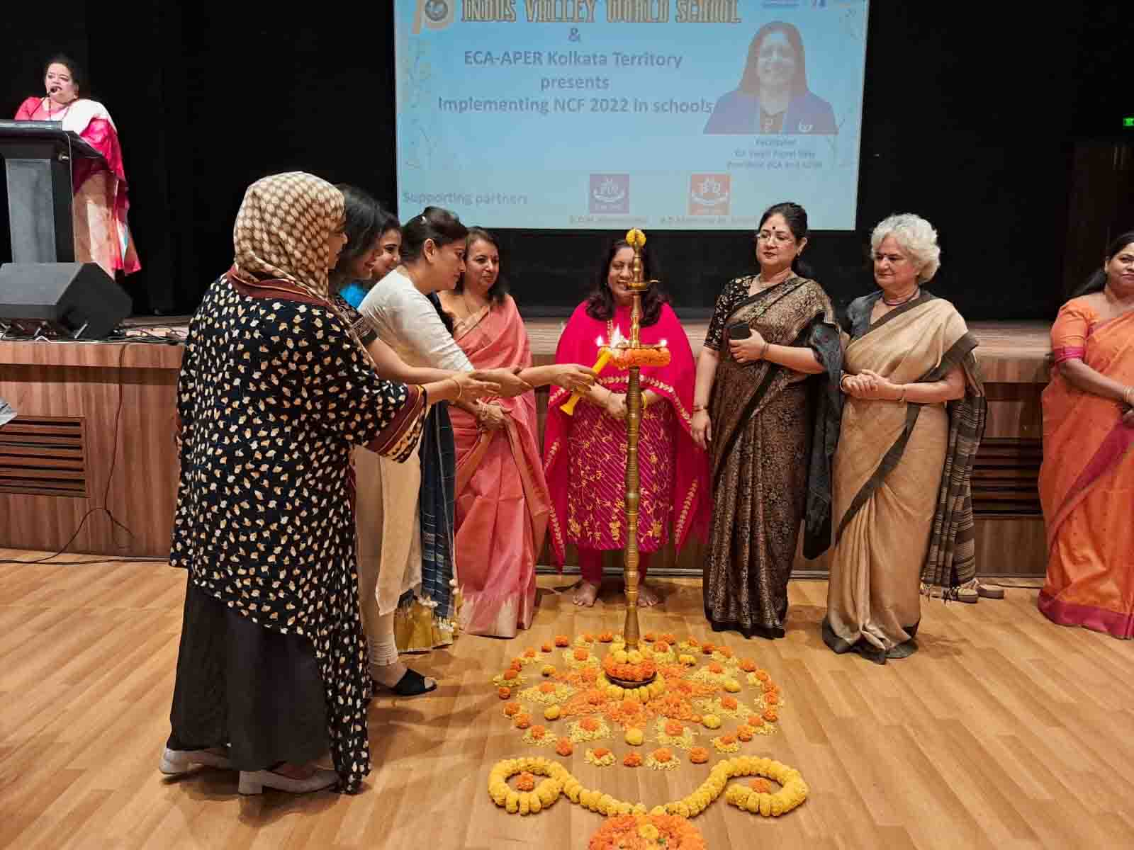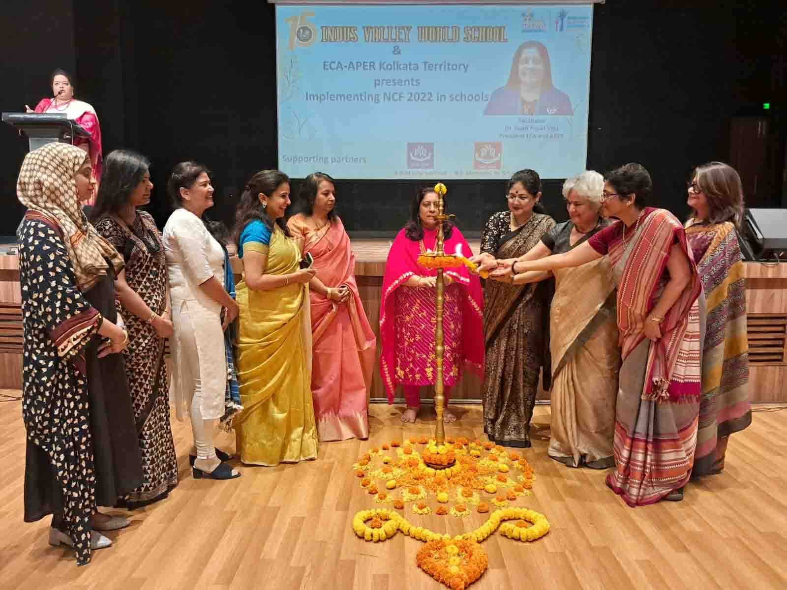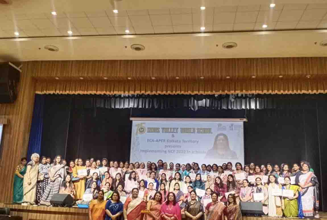 On 11th February 2023, Indus Valley World School welcomed the iconic educator Dr. Swati Popat Vats. The day long programme began with the traditional lighting of the lamp as Dr. Vats was welcomed to Kolkata. The morning session saw the charismatic Dr. Popat Vats discuss the main features of the NCF with nearly 90 teachers from across the city. The three hour session had every teacher present in the auditorium riveted to their seats. The afternoon saw an interactive session with city school leaders as Dr. Vats discussed and debated about how to straddle the new challenges thrown up in the sphere of education. She emphasised the collective strength that leaders in education can display by sharing a common vision.