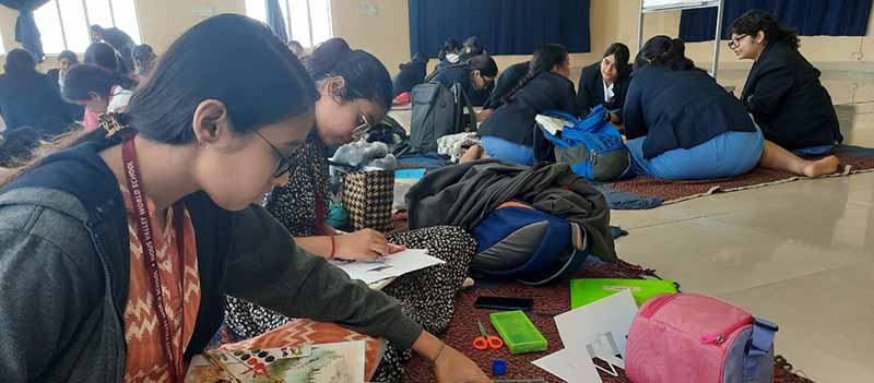 Sulagna Ray Chowdhury, Tanishka Pramanik and Sumedha Mukherjee participated in an intensive Art and Design Bootcamp organised by ISDI-Atlas Skilltech University at Lakshmipat Singhania Academy from 26-28 January. The students created their own art project at the end of the intensive experience.