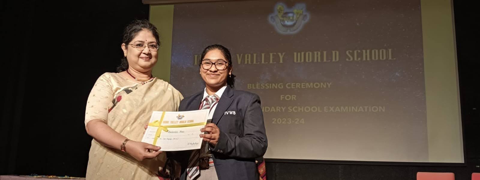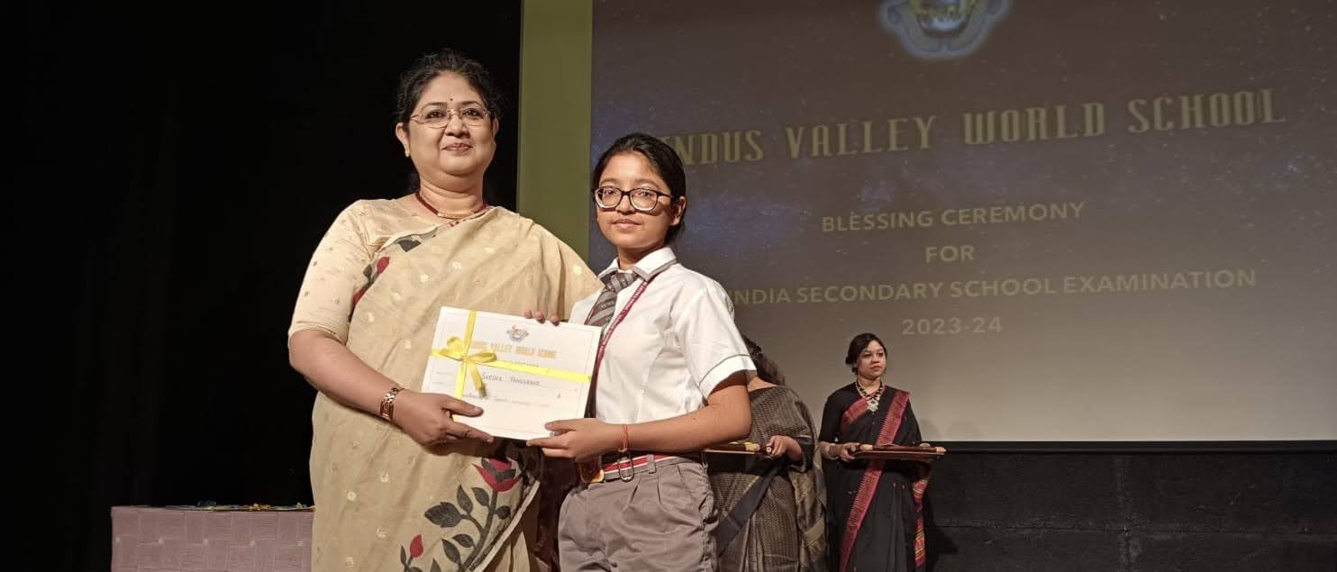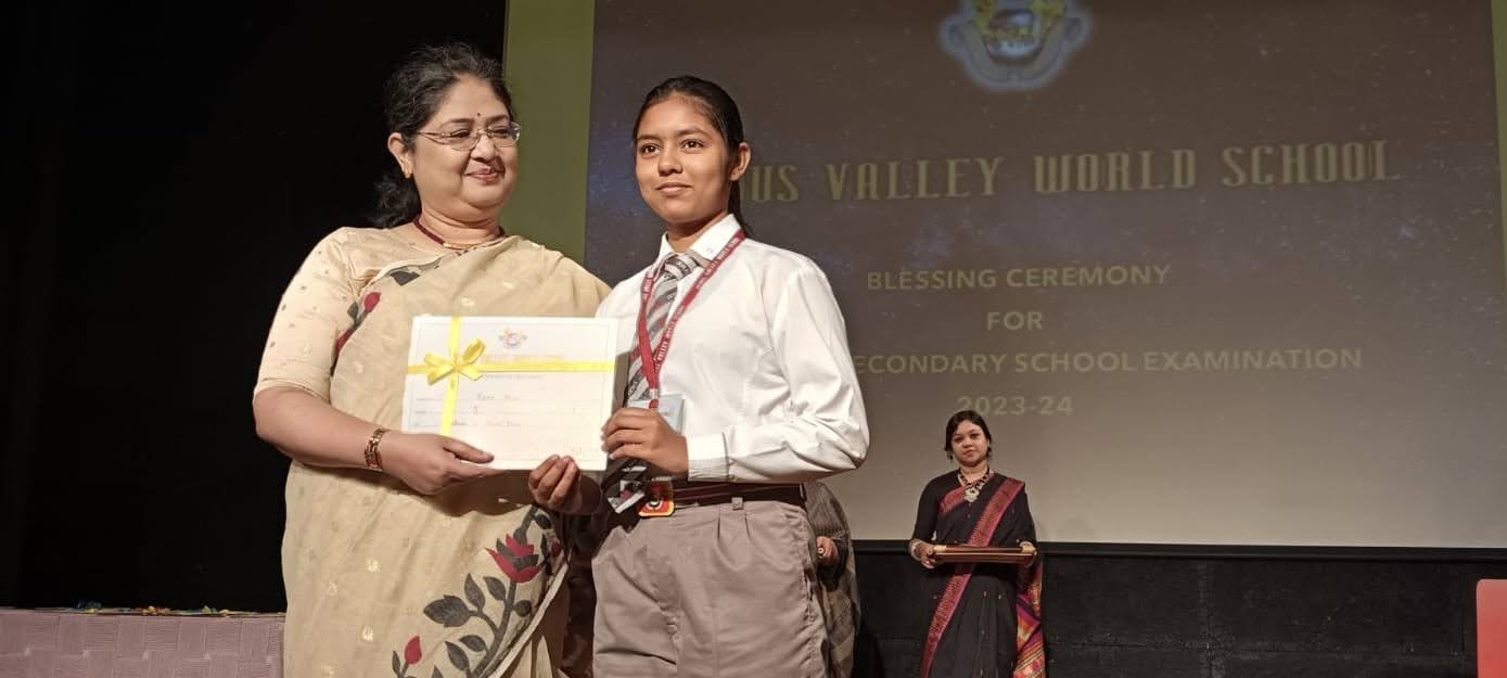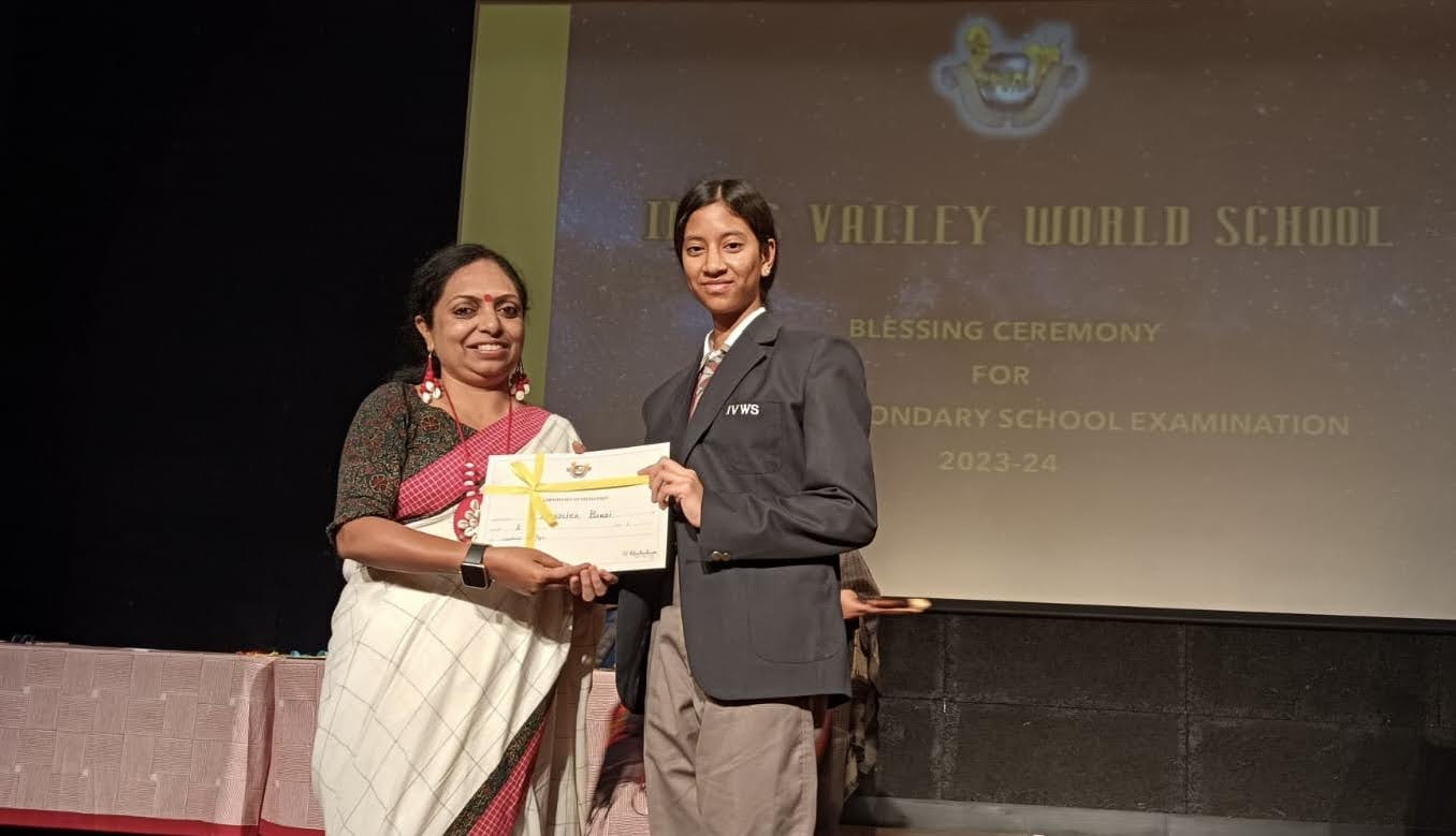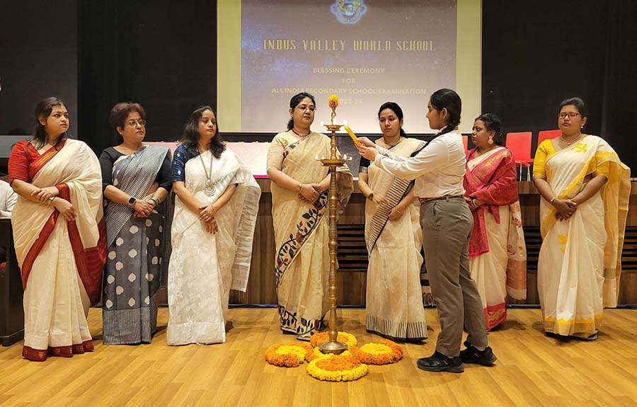 On 13th February 2024, Grade X was part of a moving Blessing Ceremony which opened with the traditional lighting of the lamp and a shloka. The students were recognised for their academic and co-curricular achievements for the last year. They received instructions about the examinations from the Principal Ms. Reshma Bhattacharya. Their parents and teachers were led in prayer by the Director Ms. Amita Prasad. The programme ended with a song of blessing and the National Anthem.
