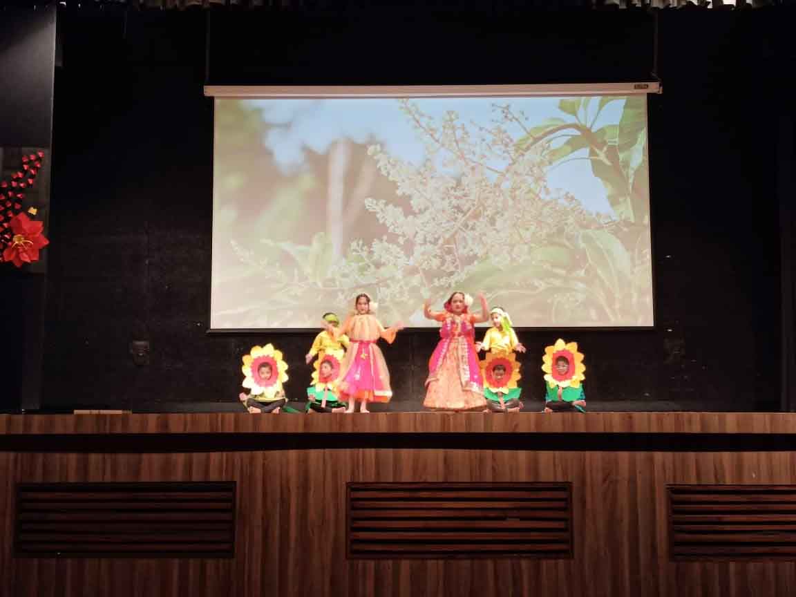On 18th March all 100 students of our Pre-Primary section took to the stage for the first time to welcome Spring in all its glory. They performed like professionals even though it was their first time on the stage under stage lights. They were ably supported by the IVWS School Choir comprising children from Grades III-VIII, narrators from Grades I and III and their teachers. The parents and guests were completely charmed by their amazing performance. Some glimpses of Colours of Spring…