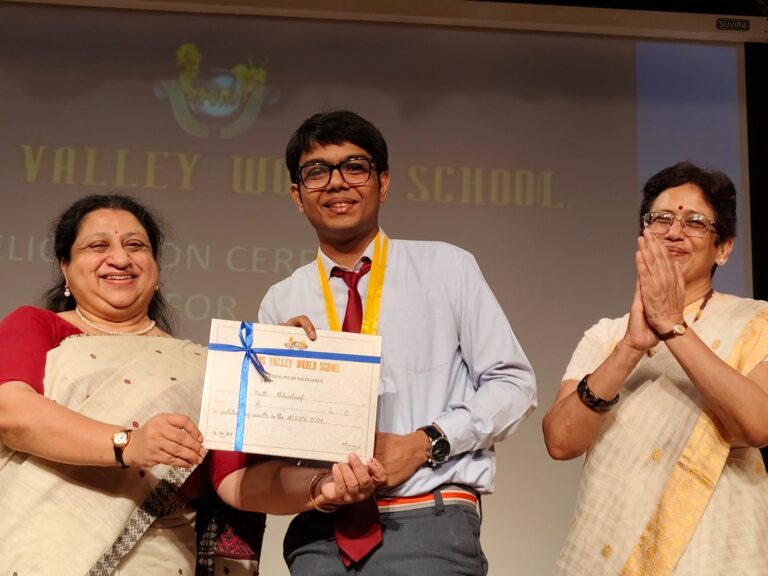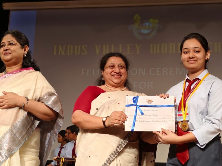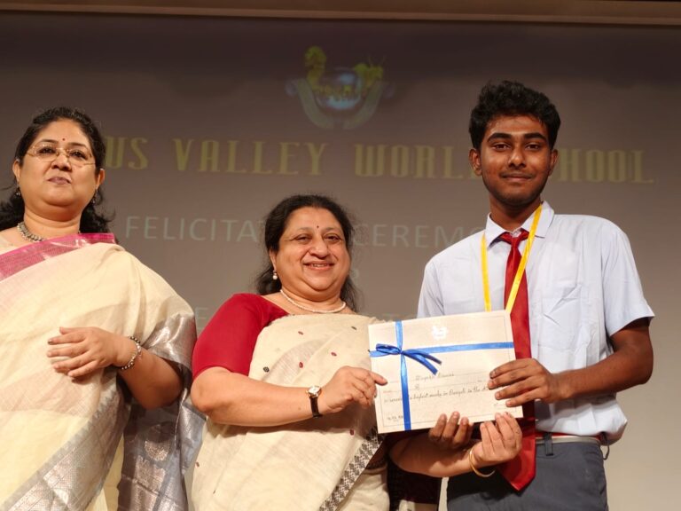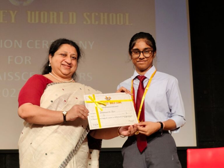 On 12th June 2024, the toppers of AISSE and AISSCE 2024 were felicitated in the school auditorium. The Guest of Honour for the ceremony was Ms. Rajyasri Biswas, Principal Garden High School. The programme began with the traditional lighting of the lamp and a prayer song. The students and parents were addressed by the Principal Ms. Reshma Bhattacharya. This was followed by the felicitation of the toppers where they received medals and certificates for their wonderful achievement in the examinations. The Guest of Honour addressed the audience thereafter and the programme ended with the singing of the National Anthem.