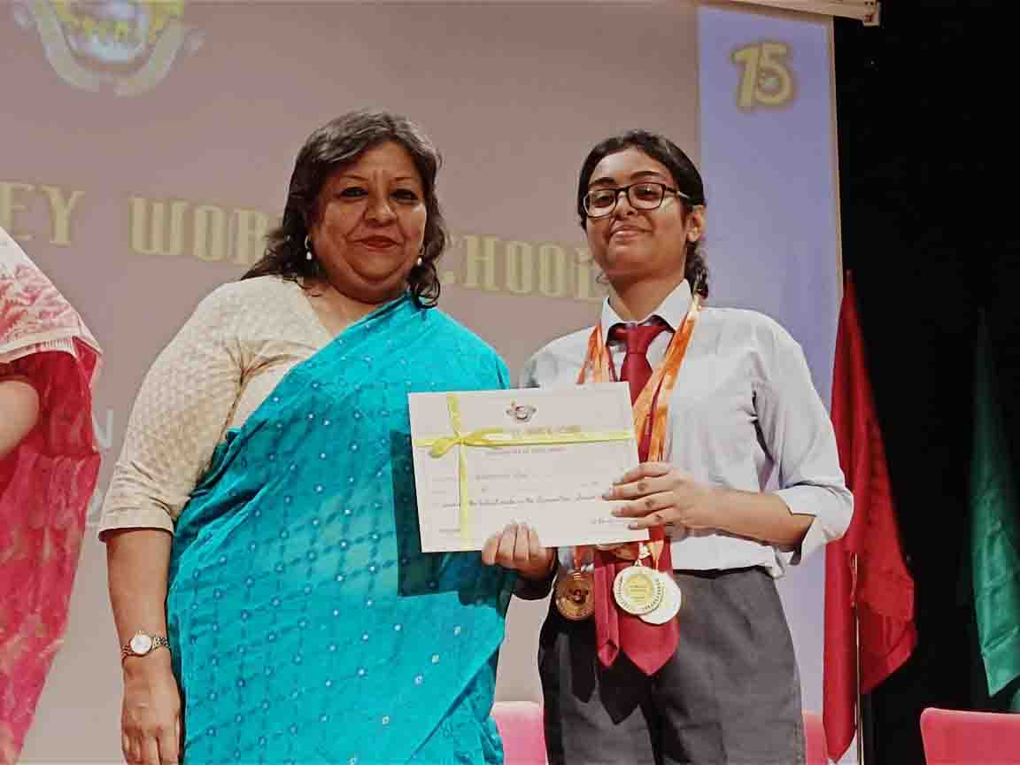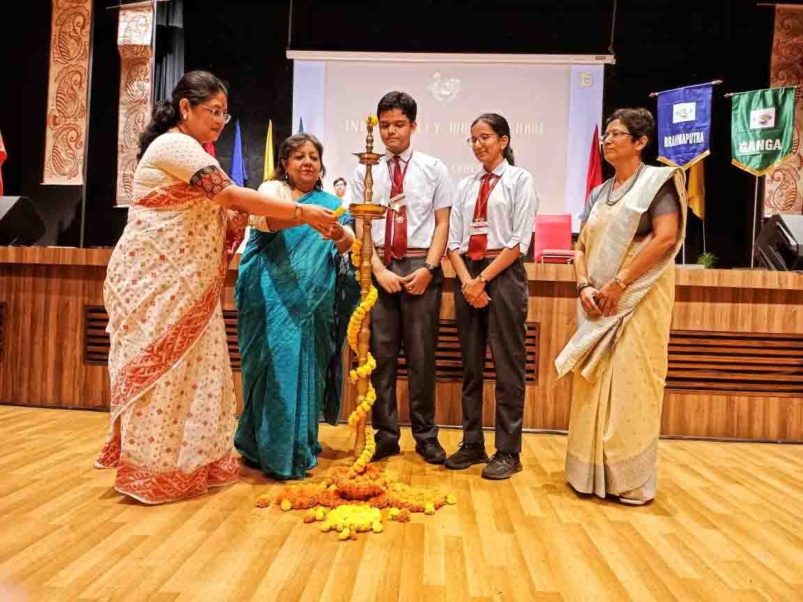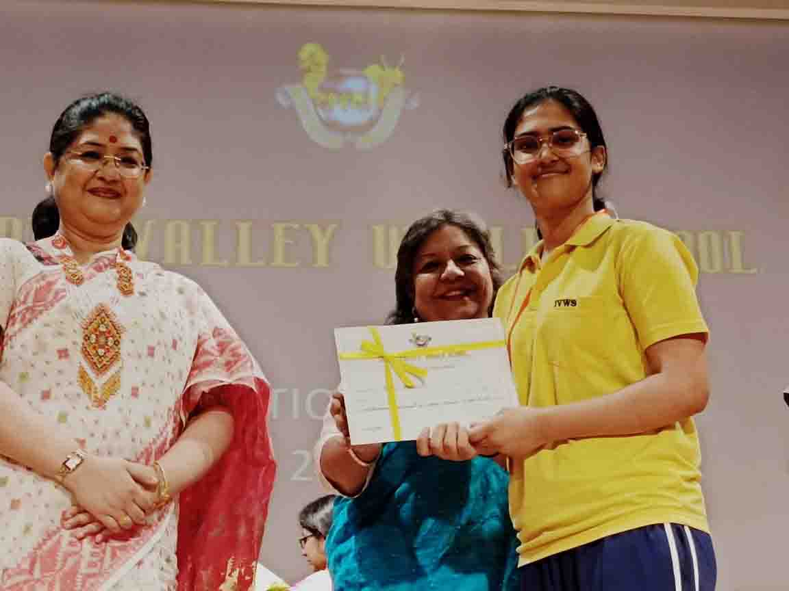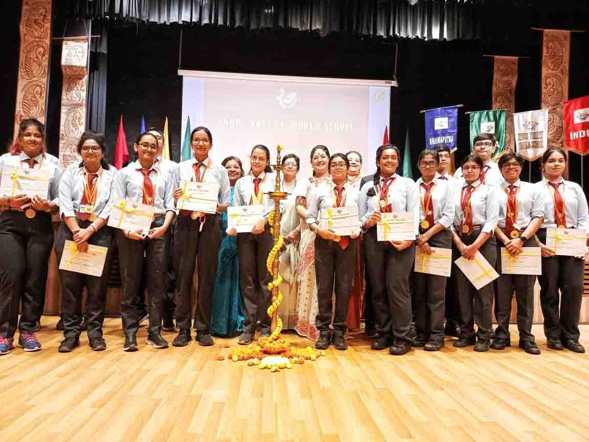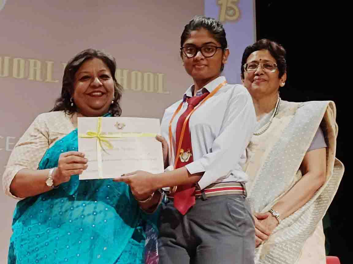 On 19th May 2023, the Felicitation Ceremony for the toppers of AISSE & AISSCE 2023 was organised in the school auditorium. The occasion was graced by the Director of Sushila Birla Girls School Ms. Sharmila Bose.The programme began with the traditional lighting of the lamp by the Chief Guest alongside our Board Toppers Souradeep Bhattacharjee ( Grade X ) and Neha Agarwal ( Grade XII) with the Director and Principal. After a prayer song by the IVWS Senior Choir the felicitation ceremony began. The Principal Ms. Reshma Bhattacharya addressed the gathering before the programme began. The felicitation of the toppers was done in the presence of their parents and a packed auditorium applauded the hard work of the students. The ceremony ended with everyone singing the National Anthem.