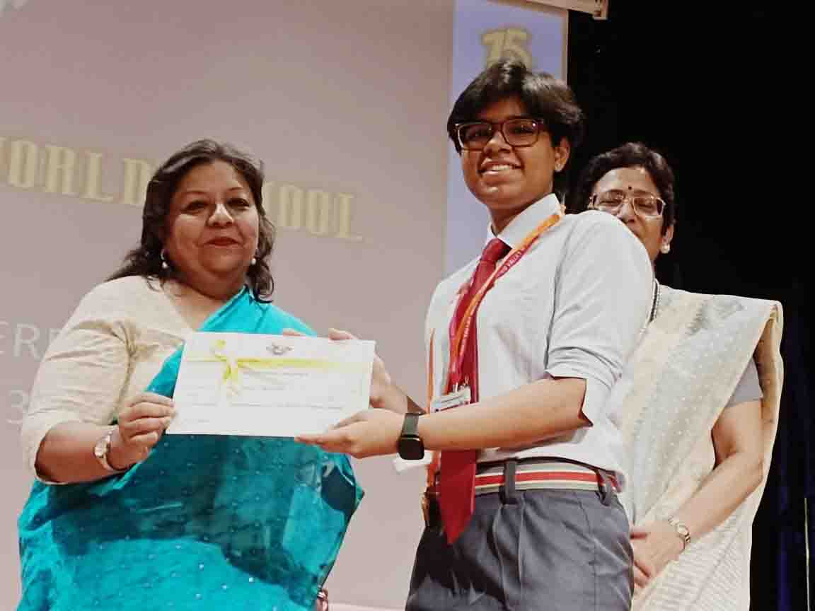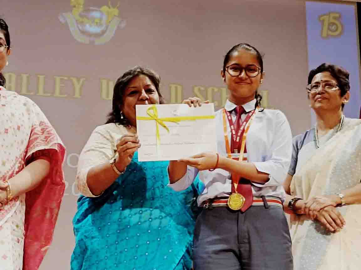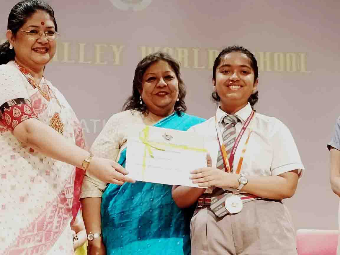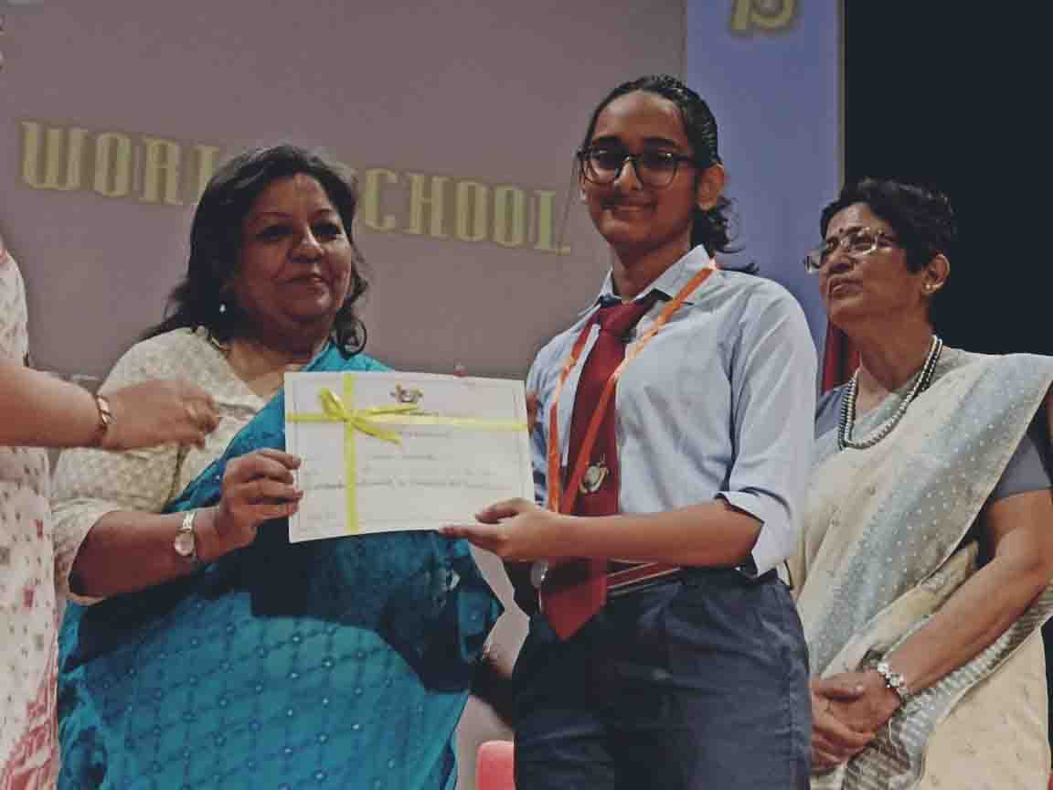 On 19th May 2023, the Felicitation Ceremony for the toppers of AISSE & AISSCE 2023 was organised in the school auditorium. The occasion was graced by the Director of Sushila Birla Girls School Ms. Sharmila Bose.The programme began with the traditional lighting of the lamp by the Chief Guest alongside our Board Toppers Souradeep Bhattacharjee ( Grade X ) and Neha Agarwal ( Grade XII) with the Director and Principal. After a prayer song by the IVWS Senior Choir the felicitation ceremony began. The Principal Ms. Reshma Bhattacharya addressed the gathering before the programme began. The felicitation of the toppers was done in the presence of their parents and a packed auditorium applauded the hard work of the students. The ceremony ended with everyone singing the National Anthem.