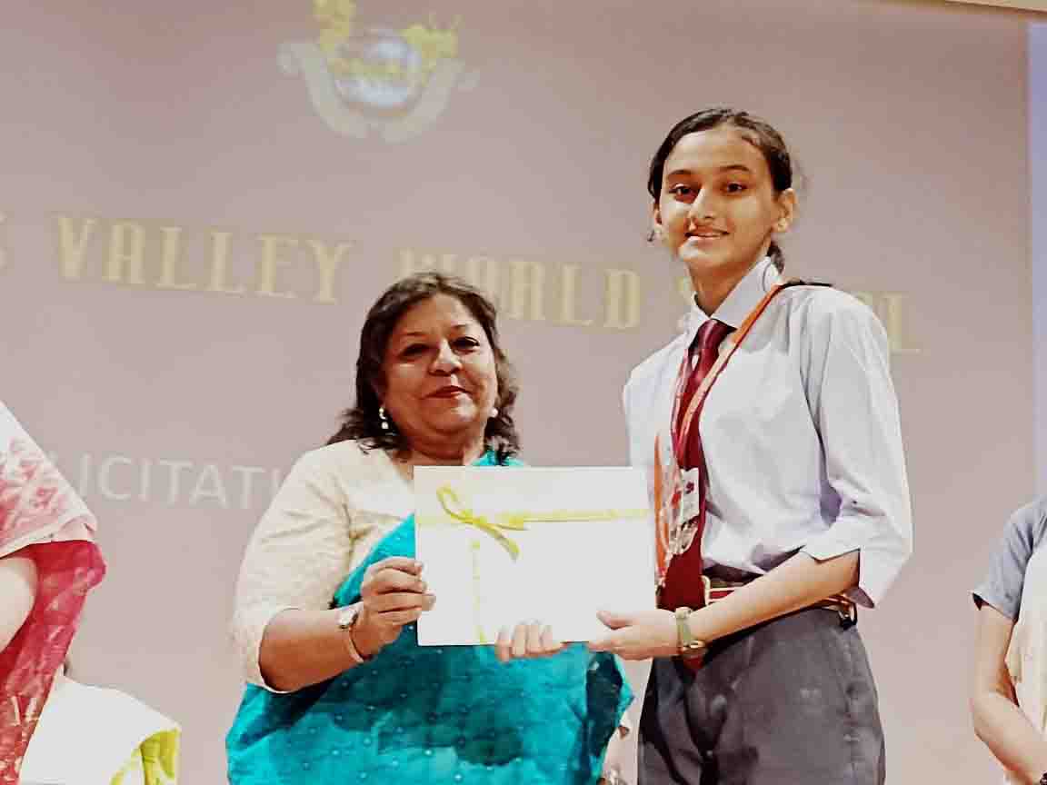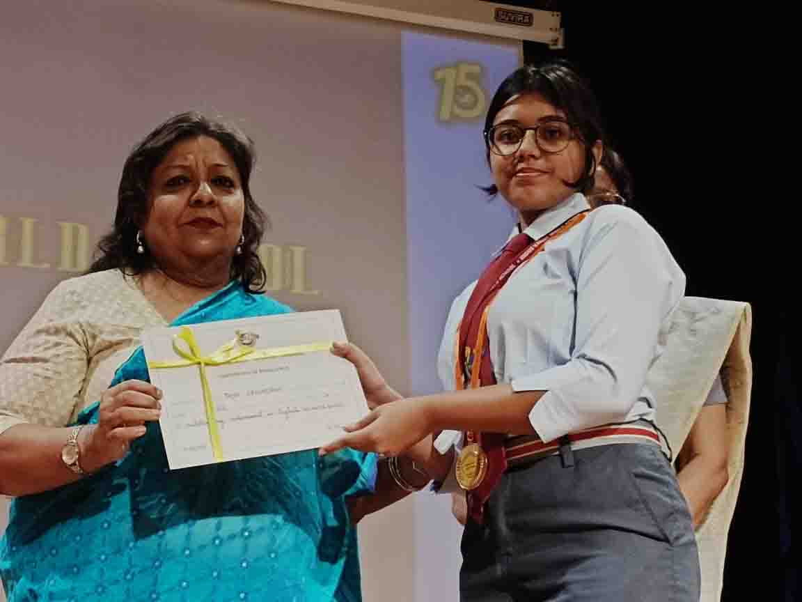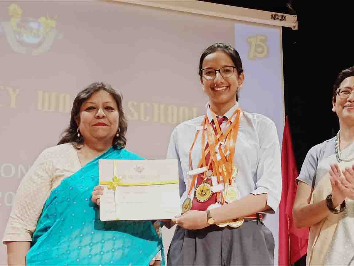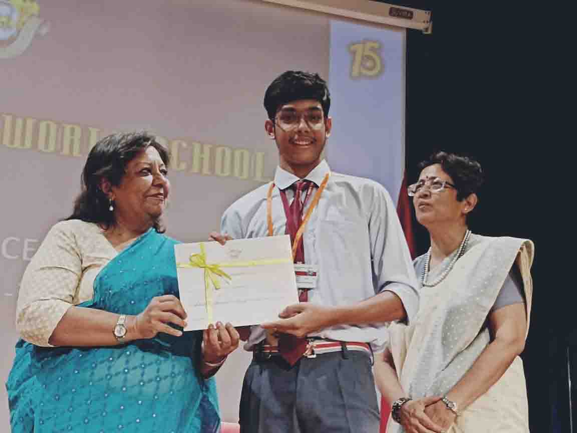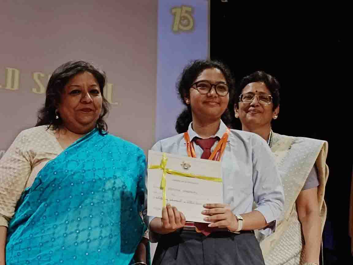 On 19th May 2023, the Felicitation Ceremony for the toppers of AISSE & AISSCE 2023 was organised in the school auditorium. The occasion was graced by the Director of Sushila Birla Girls School Ms. Sharmila Bose.The programme began with the traditional lighting of the lamp by the Chief Guest alongside our Board Toppers Souradeep Bhattacharjee ( Grade X ) and Neha Agarwal ( Grade XII) with the Director and Principal. After a prayer song by the IVWS Senior Choir the felicitation ceremony began. The Principal Ms. Reshma Bhattacharya addressed the gathering before the programme began. The felicitation of the toppers was done in the presence of their parents and a packed auditorium applauded the hard work of the students. The ceremony ended with everyone singing the National Anthem.