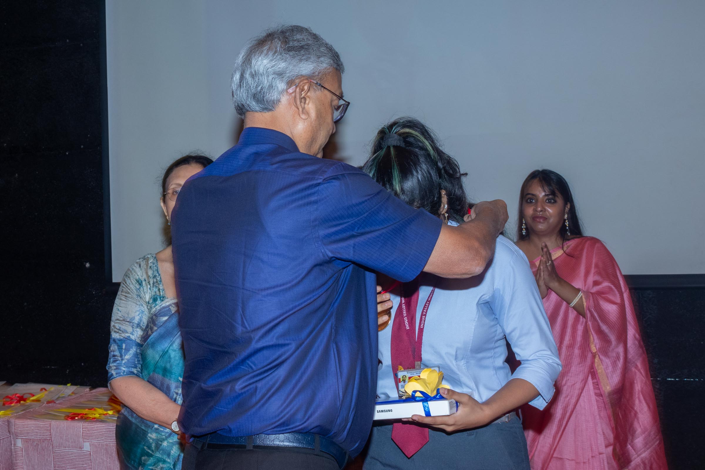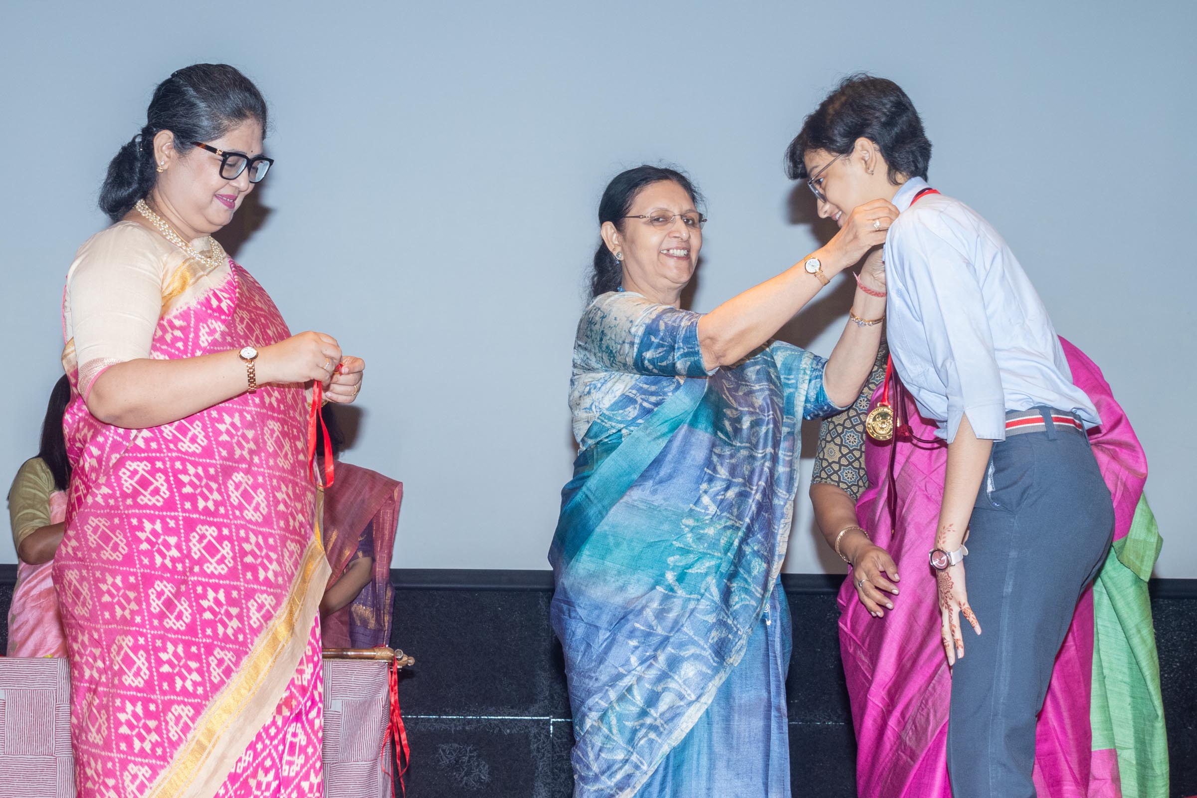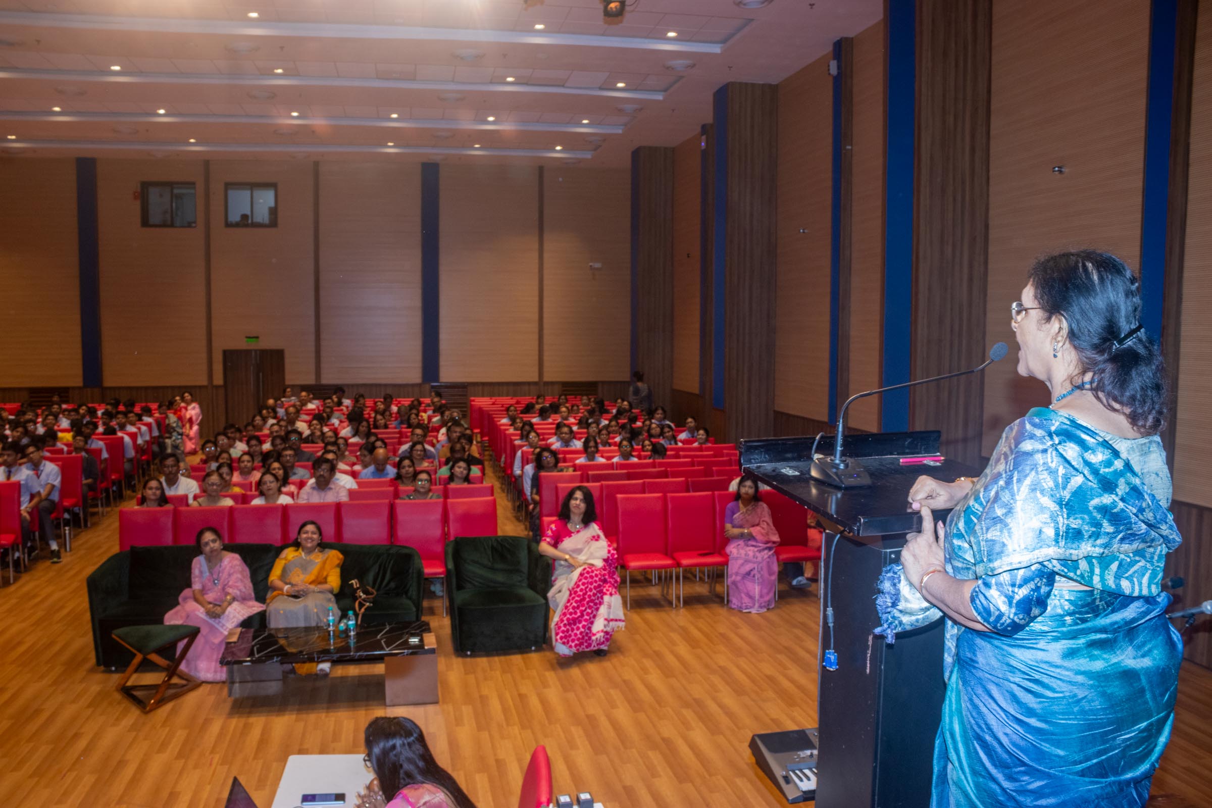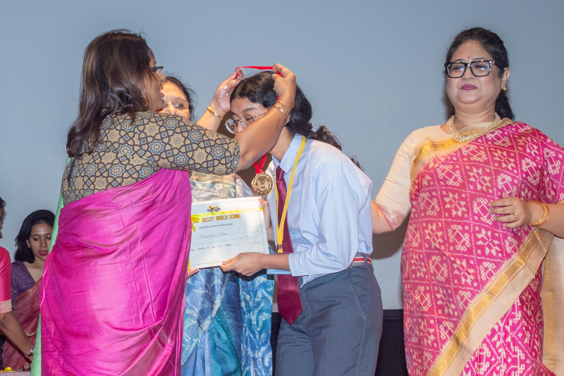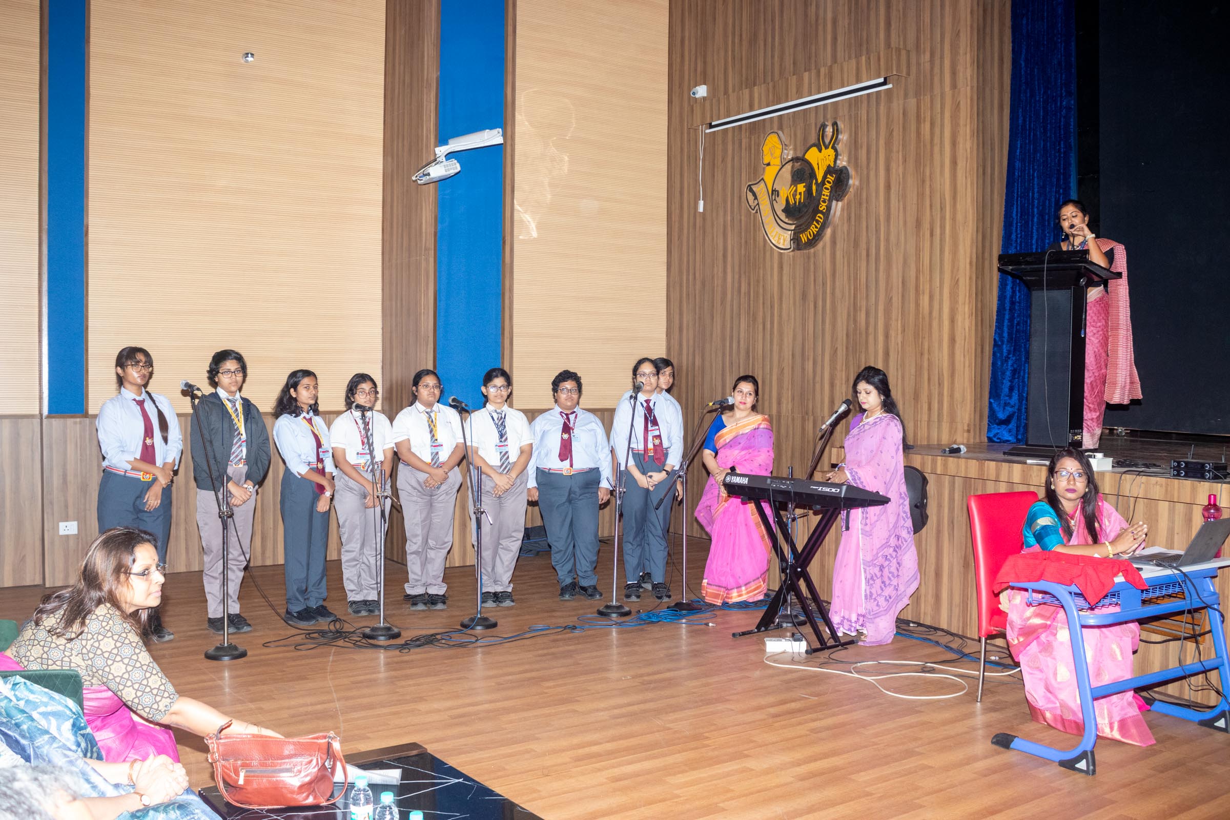 In the welcome address, Mrs Bhattacharya congratulated and appreciated the efforts of the students on their stellar performance in the boards and set the tone for the day. After the soulful rendition of the prayer song, students enthralled the audience by presenting Ganesh Vandana through their impeccable dance performance. Amidst a huge round of applause, the honoured guests and dignitaries were felicitated on stage by the Principal, Vice Principal and Mr S.L Gupta. The students displayed unabated excitement as the overall board toppers of grade X, Diyasmi Pal and grade XII, Koneenika Basak were felicitated with tabs, medals and certificates for scoring a whopping 98.8% and 99.2% respectively. Then it was the turn of the 34 high achievers being recognized for their stupendous aggregate of 95% and above followed by the subject toppers, many of whom scored a perfect 100 in subjects like Mathematics, Science, AI, Psychology, Sociology, Commercial Art, Home Science and Informatics Practices.