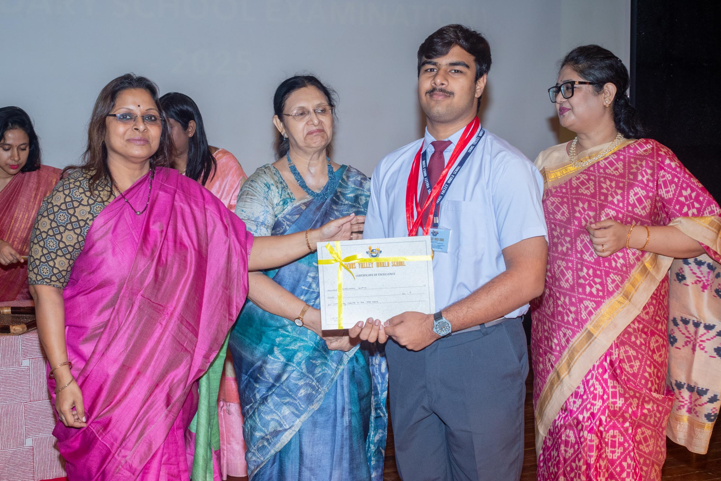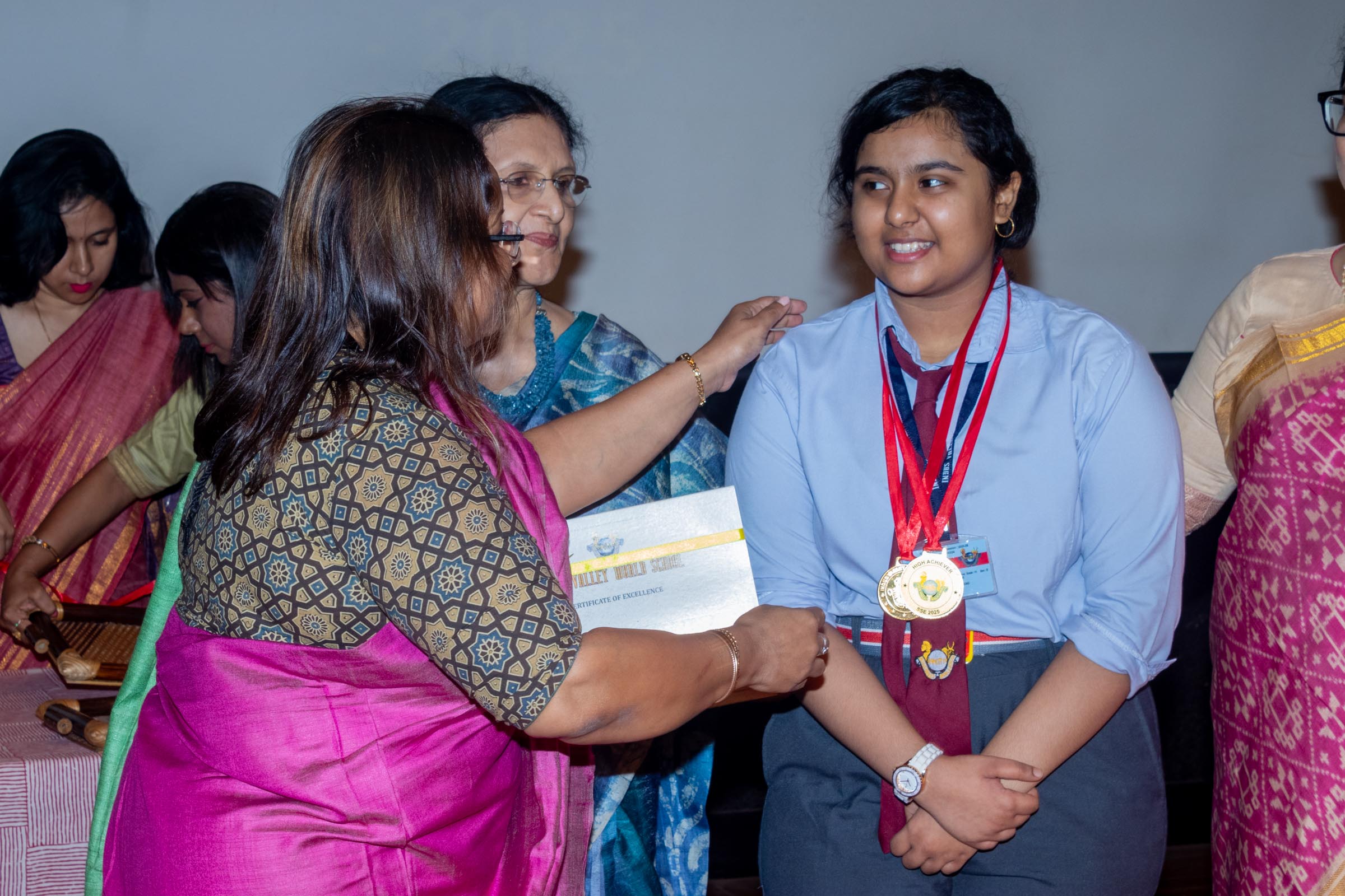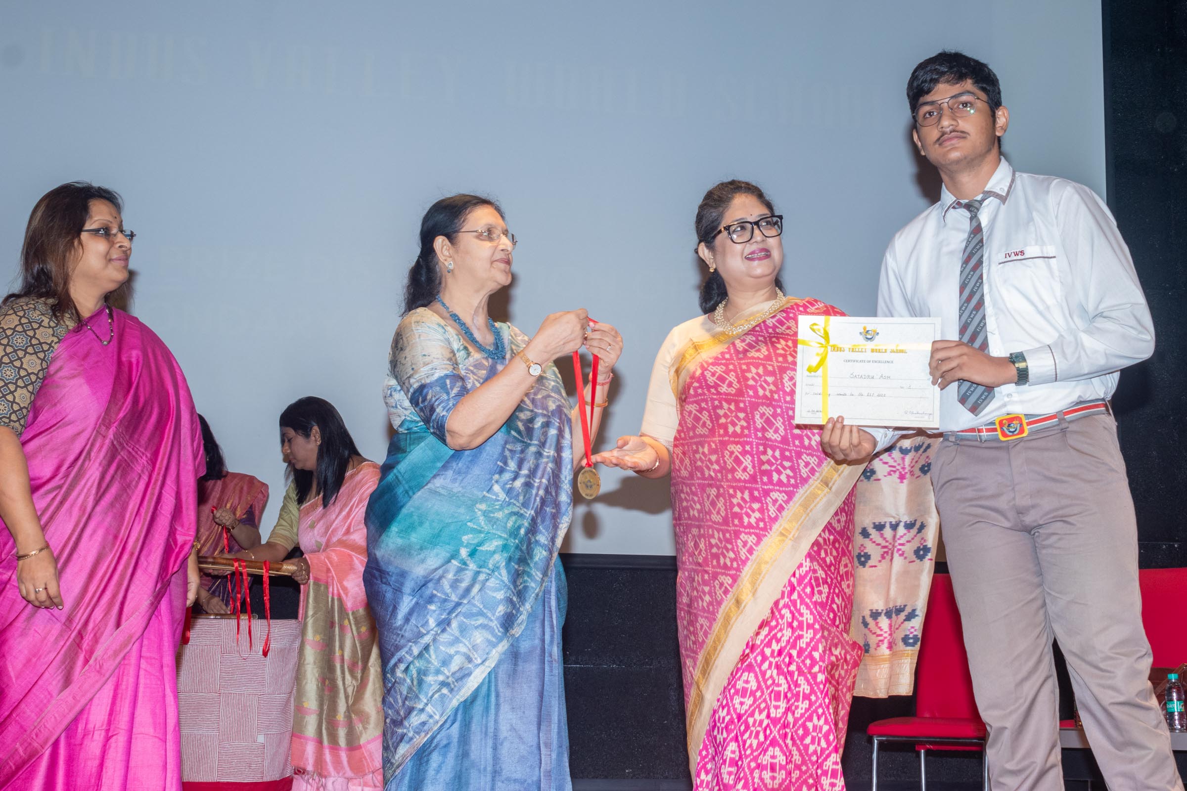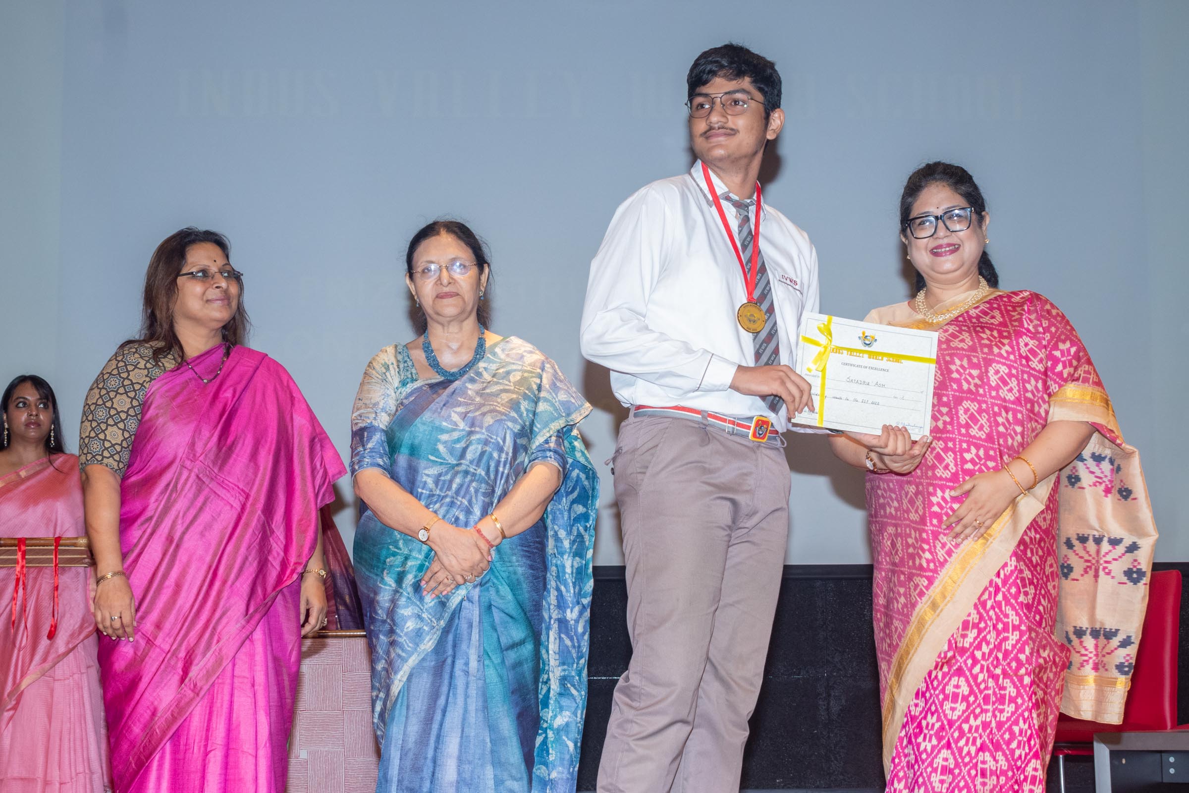 On 11th June, Indus Valley World School felicitated the board toppers and high achievers of SSE and SSCE of 2025 in its school auditorium in a grand ceremony. The occasion was graced by the Chief Guest, renowned educationist Ms Indrani Ganguly. IVWS was honoured and privileged to have Mr Sushil Poddar, a prominent figure in the trade association circuit as the Guest of Honour for the day and other dignitaries to encourage the students. The programme began on a traditional note with the lighting of the ceremonial lamp by the Chief Guest, Guest of Honour, CEO Mr S.L Gupta, Principal Ms Reshma Bhattacharya, Vice Principal and Administrator Ms Madhumita Seal, and other heads of the school.