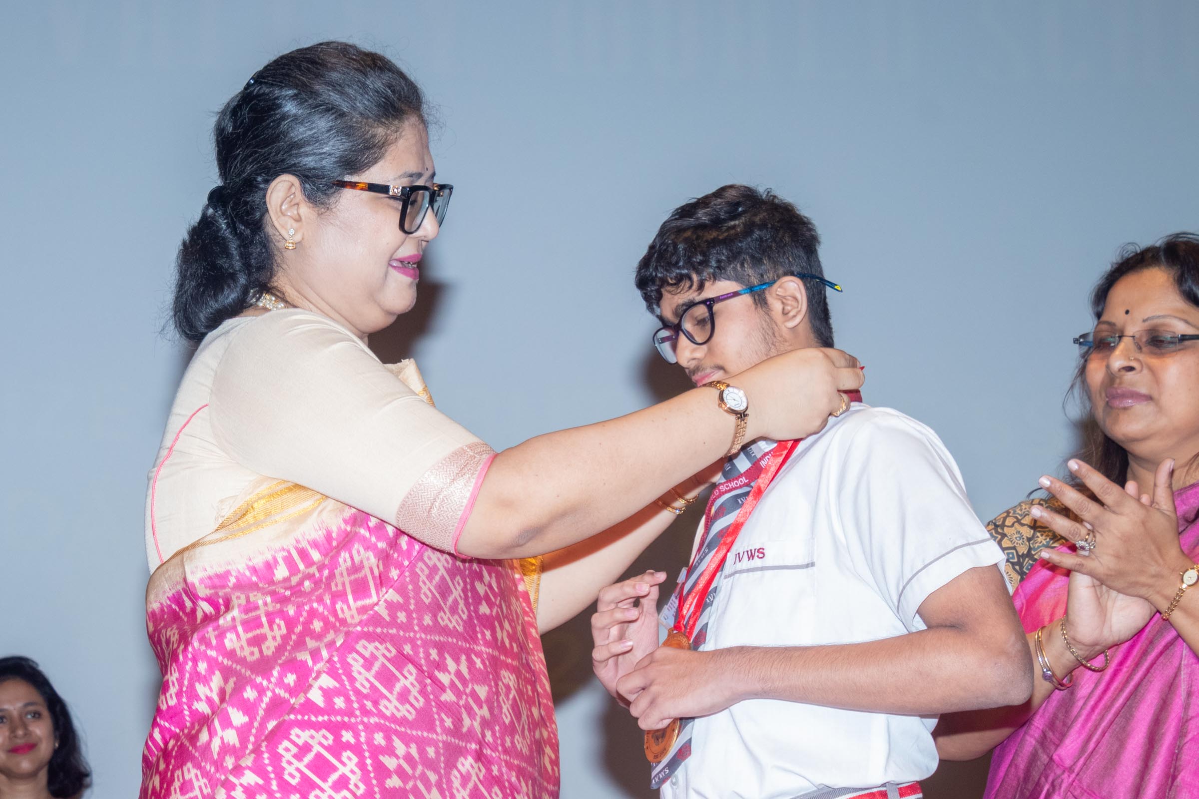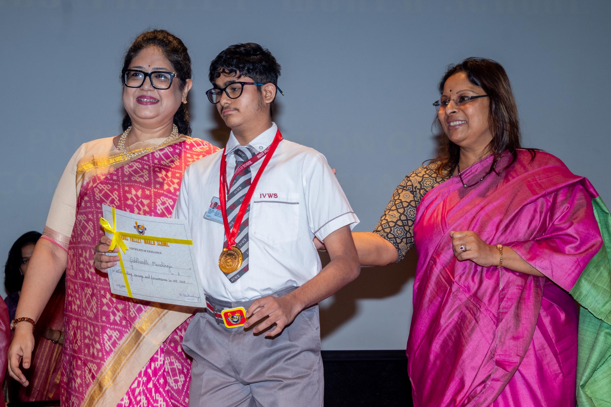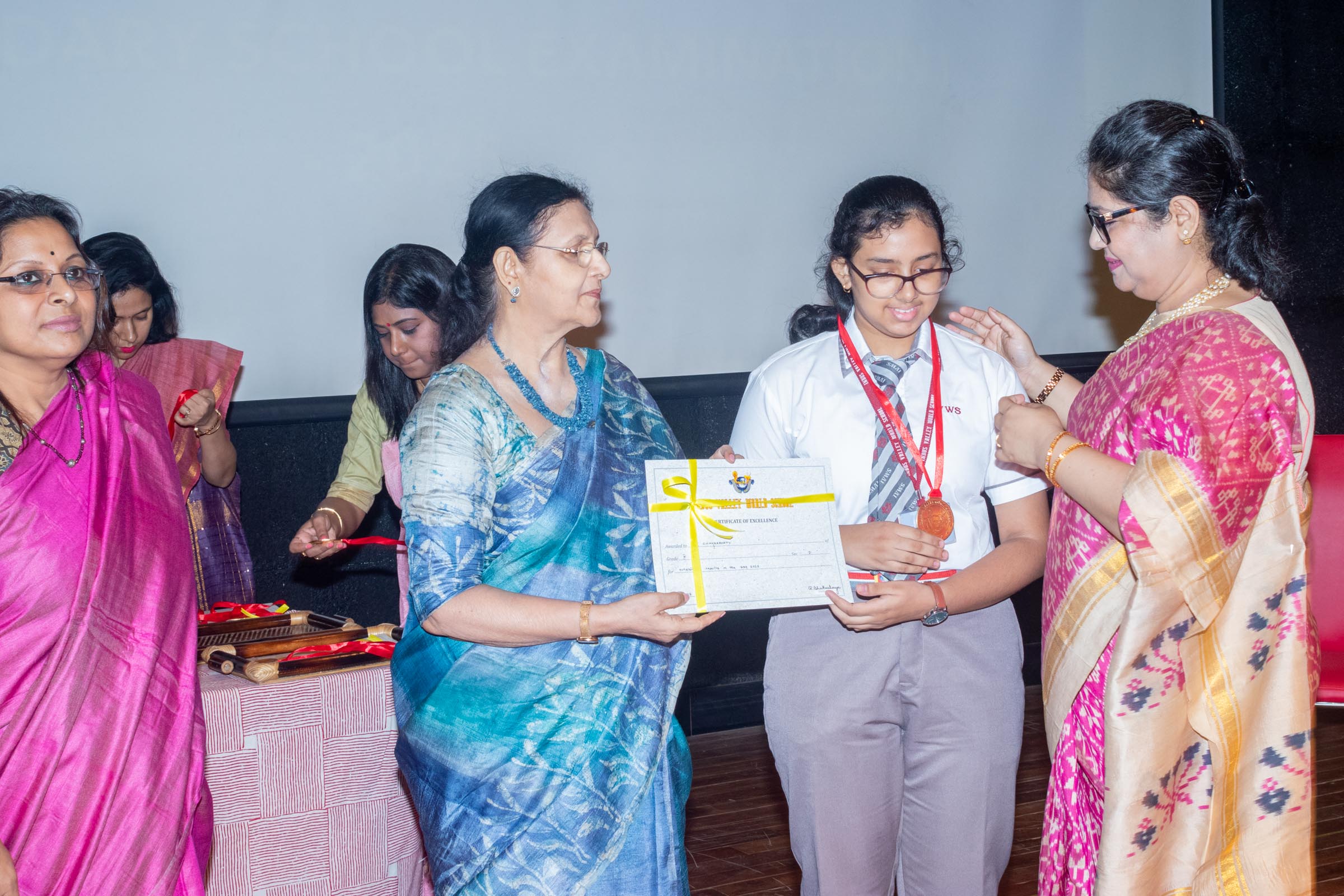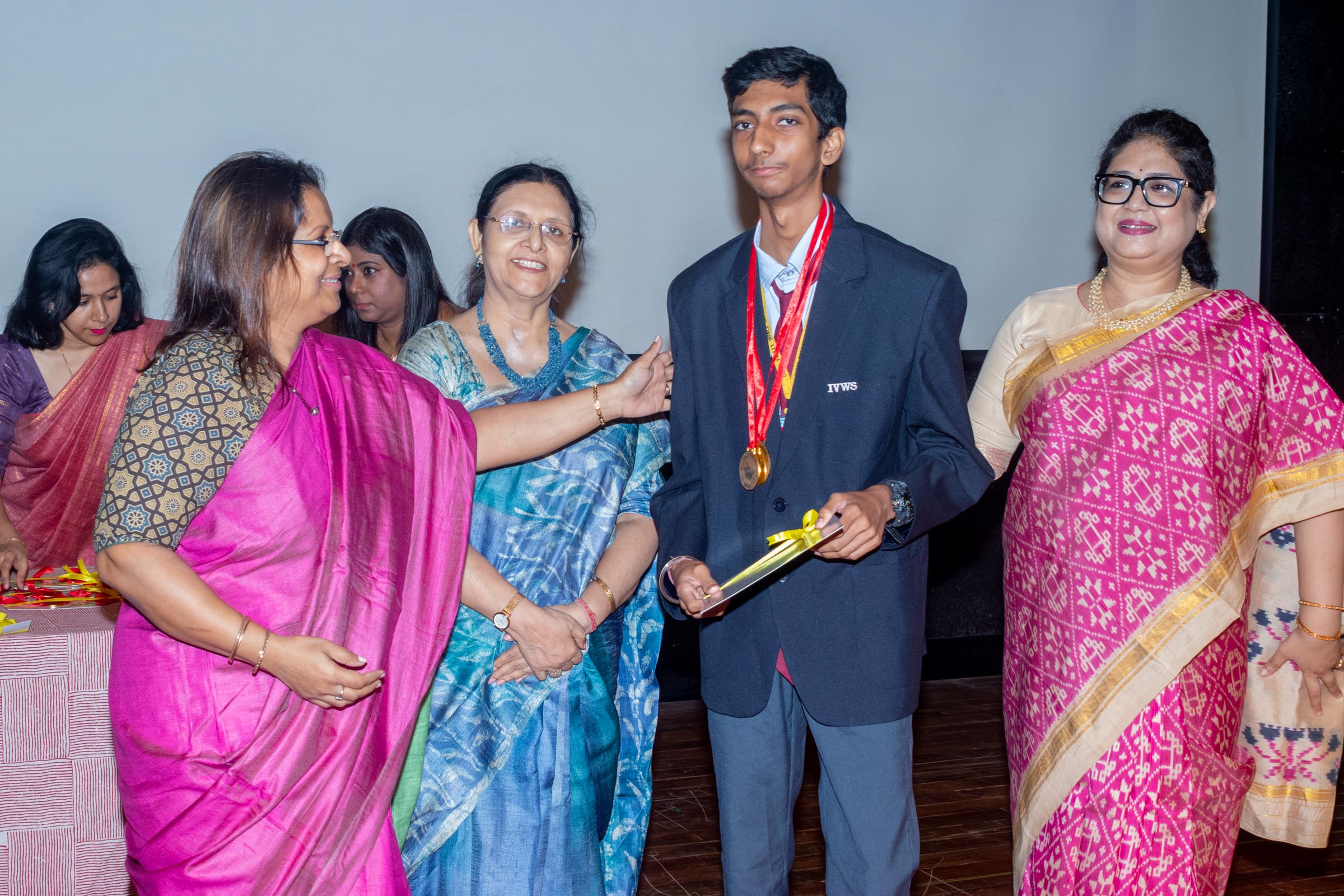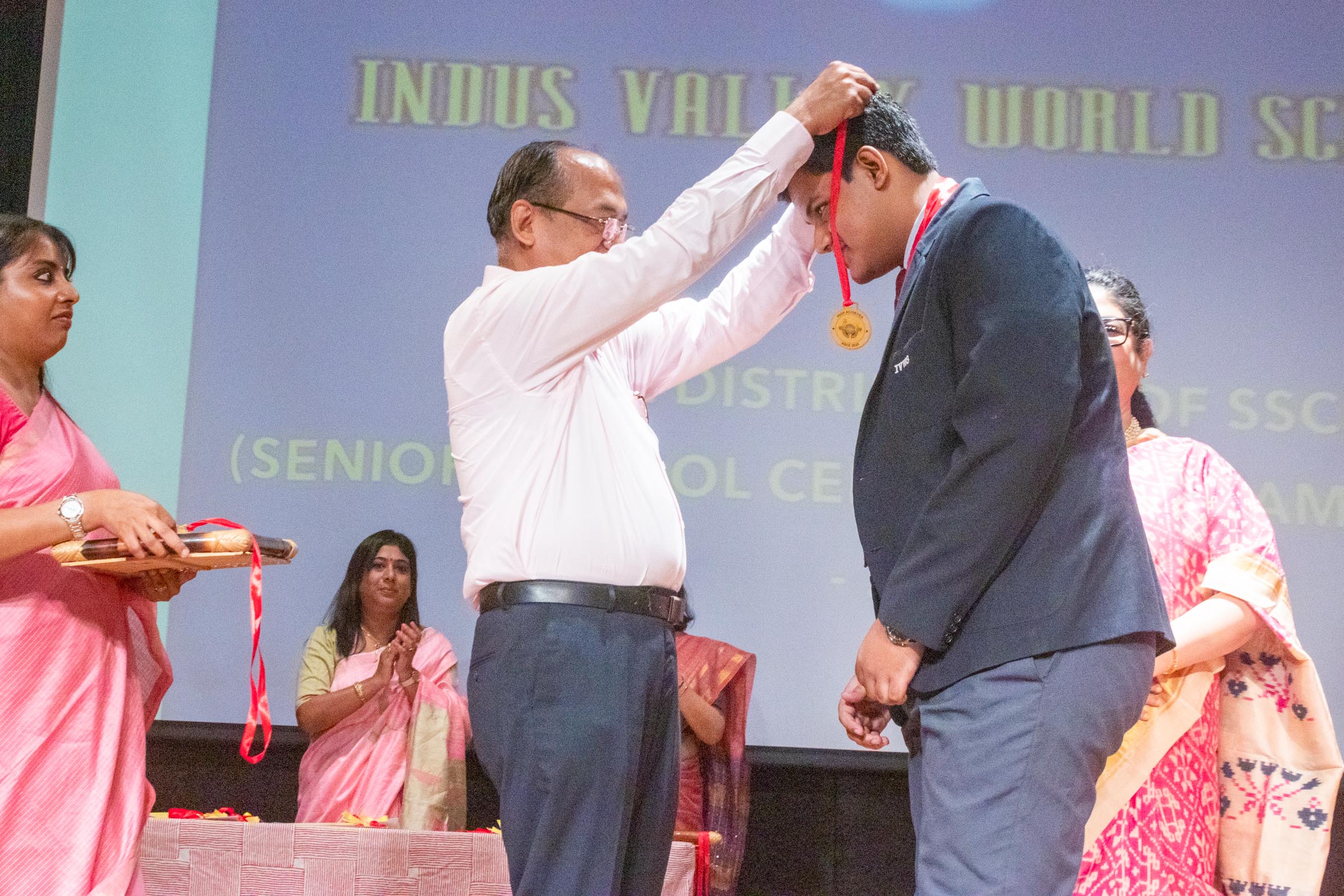 On 11th June, Indus Valley World School felicitated the board toppers and high achievers of SSE and SSCE of 2025 in its school auditorium in a grand ceremony. The occasion was graced by the Chief Guest, renowned educationist Ms Indrani Ganguly. IVWS was honoured and privileged to have Mr Sushil Poddar, a prominent figure in the trade association circuit as the Guest of Honour for the day and other dignitaries to encourage the students. The programme began on a traditional note with the lighting of the ceremonial lamp by the Chief Guest, Guest of Honour, CEO Mr S.L Gupta, Principal Ms Reshma Bhattacharya, Vice Principal and Administrator Ms Madhumita Seal, and other heads of the school.