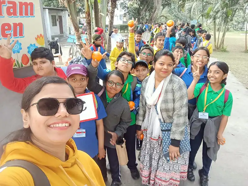 The outing saw teachers and students bear thoughtful company to one another. As the children boarded the buses for their return journey, a tempting orange in hand, they looked hardly exhausted rather happy in robust form.