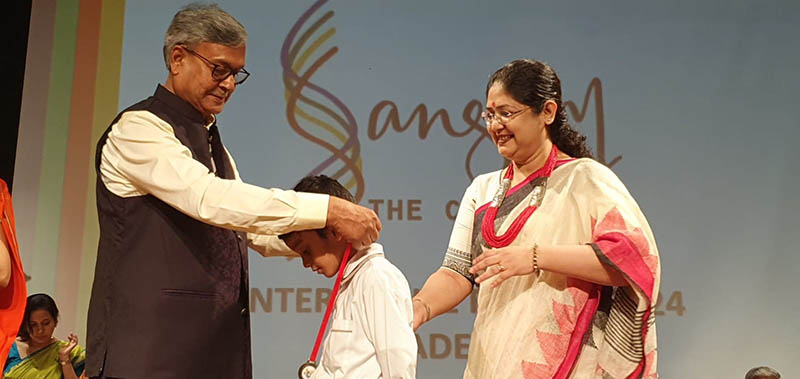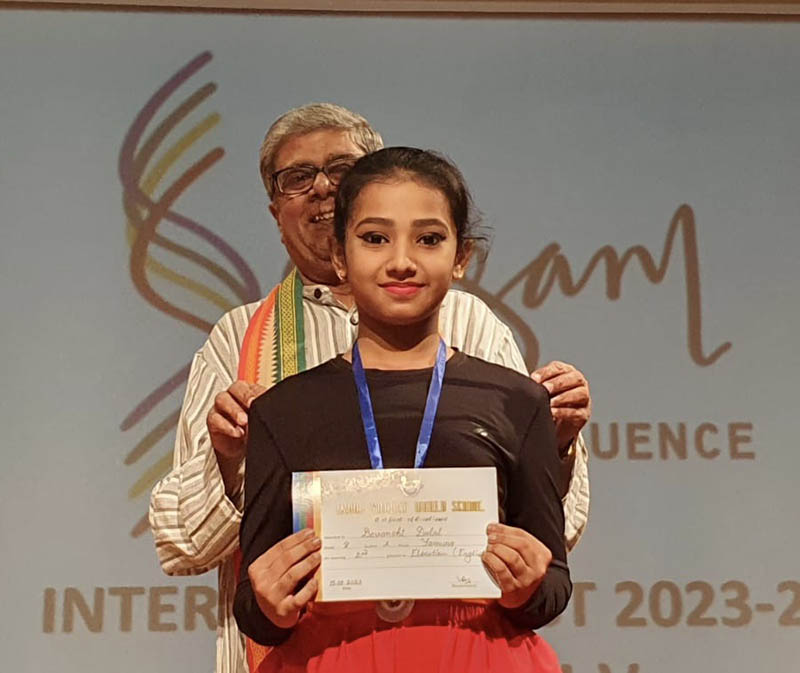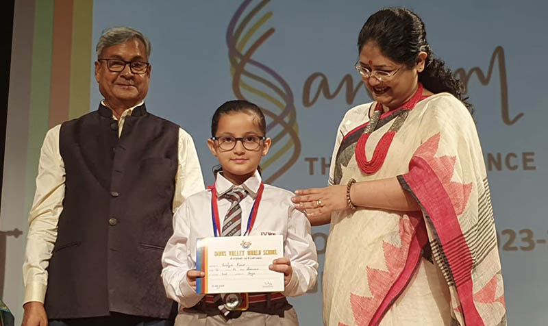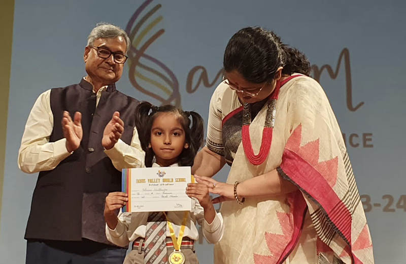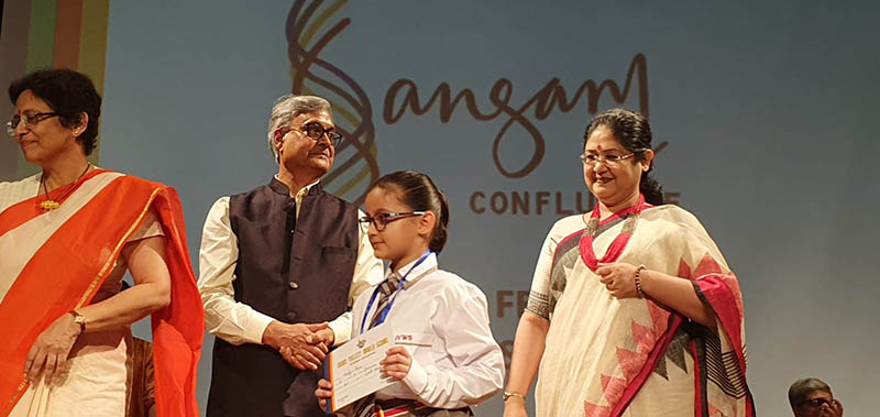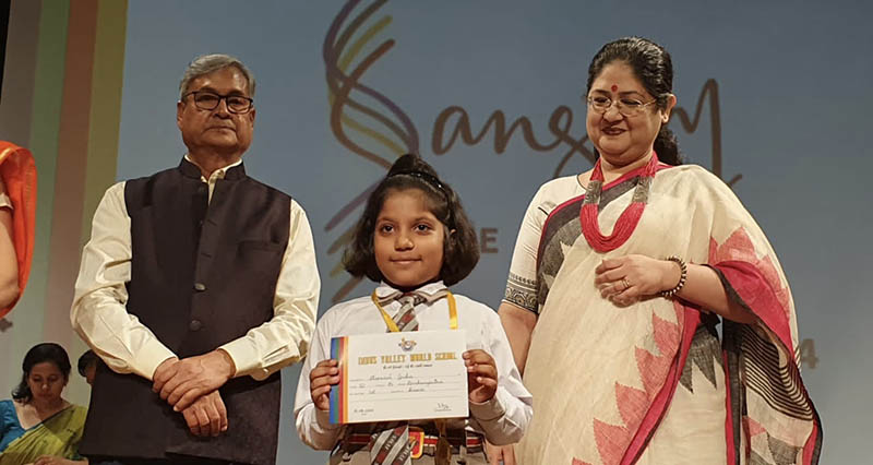 The programme opened with a breathtaking Yoga display that was followed by dance presentations by the three prize winners from Grade V. Then the prize winners for Sangam from Grades 3-5 were felicitated on stage. The prize distribution was interspersed with songs sung by two students. The programme ended with a brief dance presentation by the students of the Future Hope School who came to specially perform for us. The morning ended with an inspiring speech by our Chief Guest which gave parents and teachers a lot of food for thought. The vote of thanks by our Director Mrs. Amita Prasad was followed by the National Anthem.