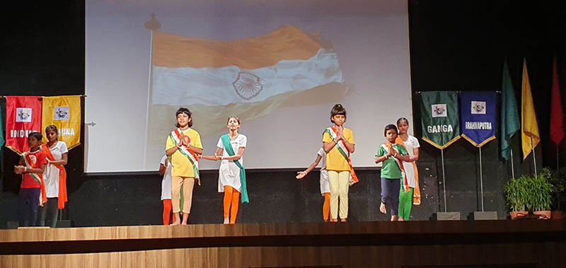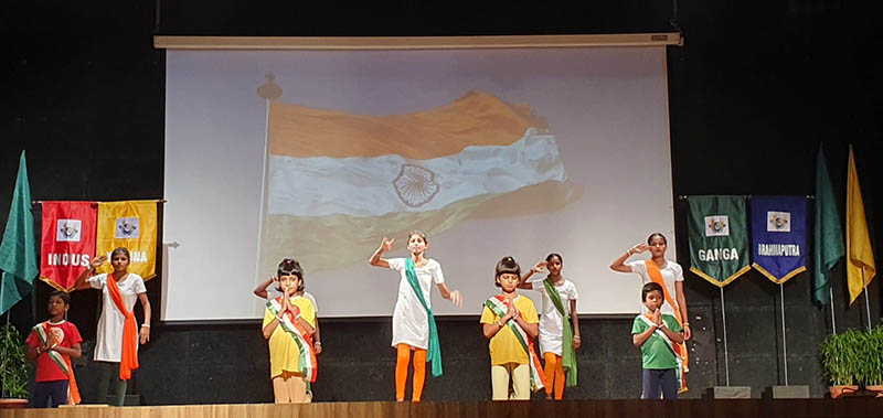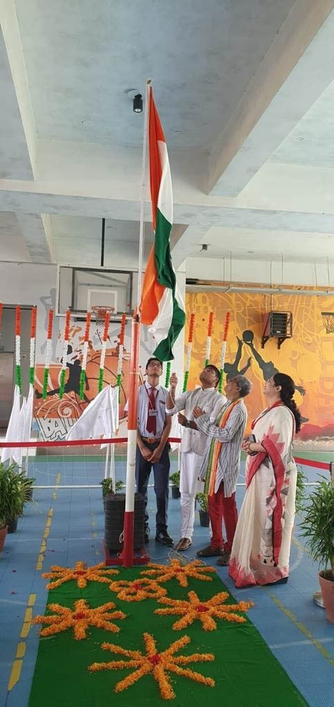 The morning began with the flag hoisting ceremony by our Chief Guest Mr.S.V. Raman along with our Principal Ms. Reshma Bhattacharya and School Captain Ishir Narayan.