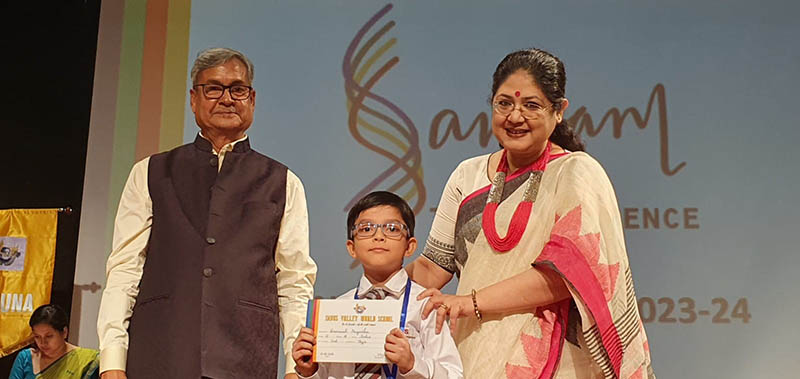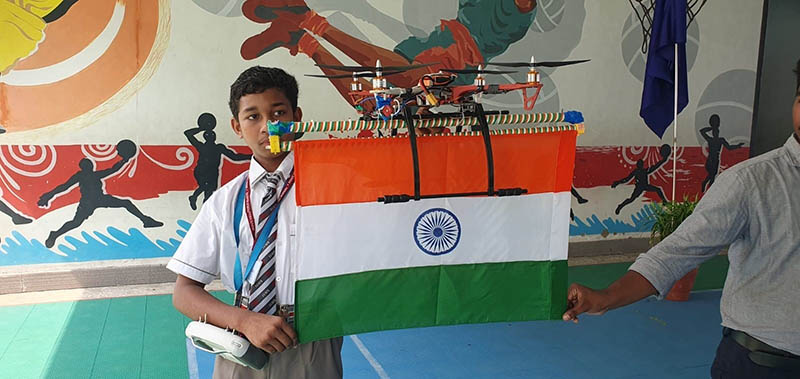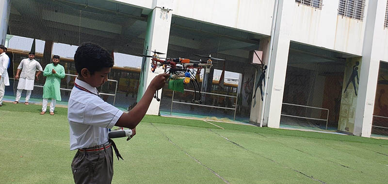 This was followed by the display of a drone created by Aditya Sen of Grade VII who received the Draupadi Devi Khaitan Memorial Award for Innovation from our CEO Sri S.L. Gupta.