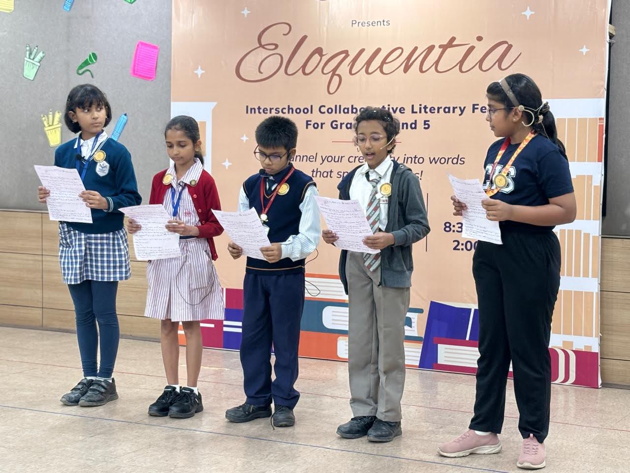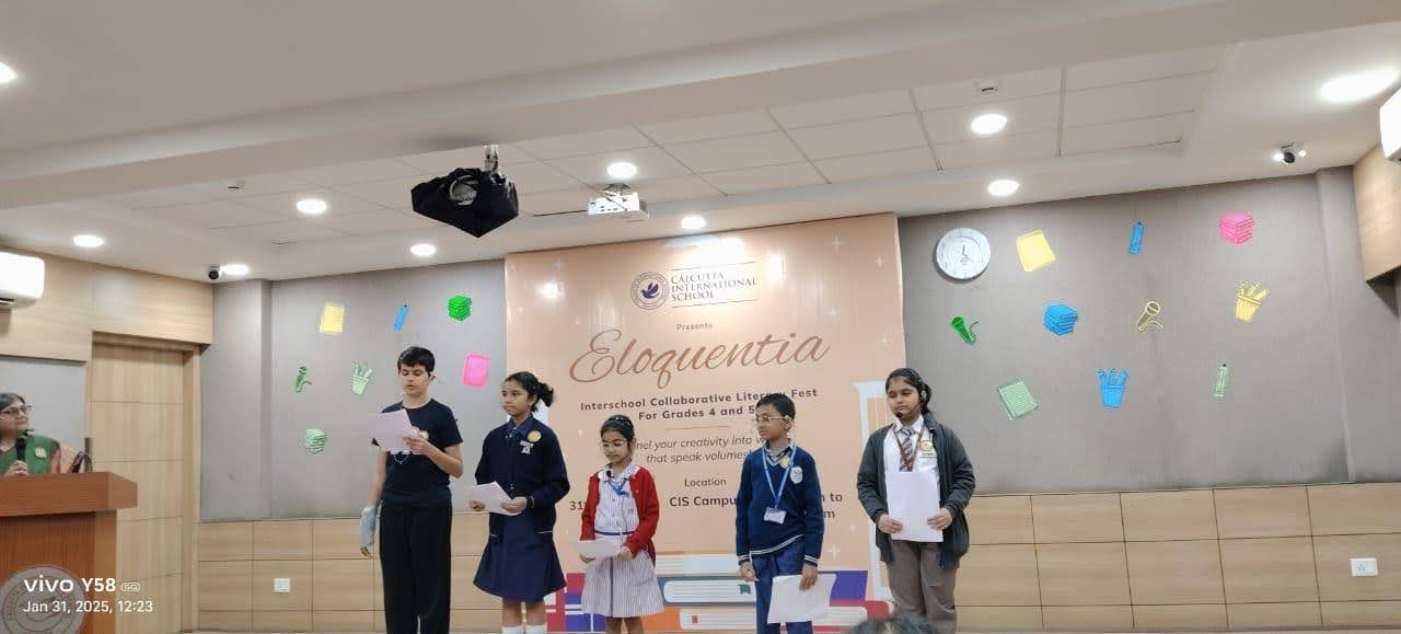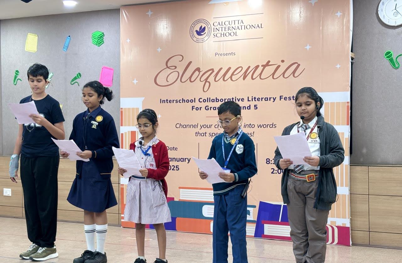 Indus Valley World School participated in Eloquentia 2025, an inter-school literary event hosted by Calcutta International School. The competition emphasized collaboration, as students from different schools worked together in groups to create skits, poems, and artistic book covers based on themes drawn by lottery.
