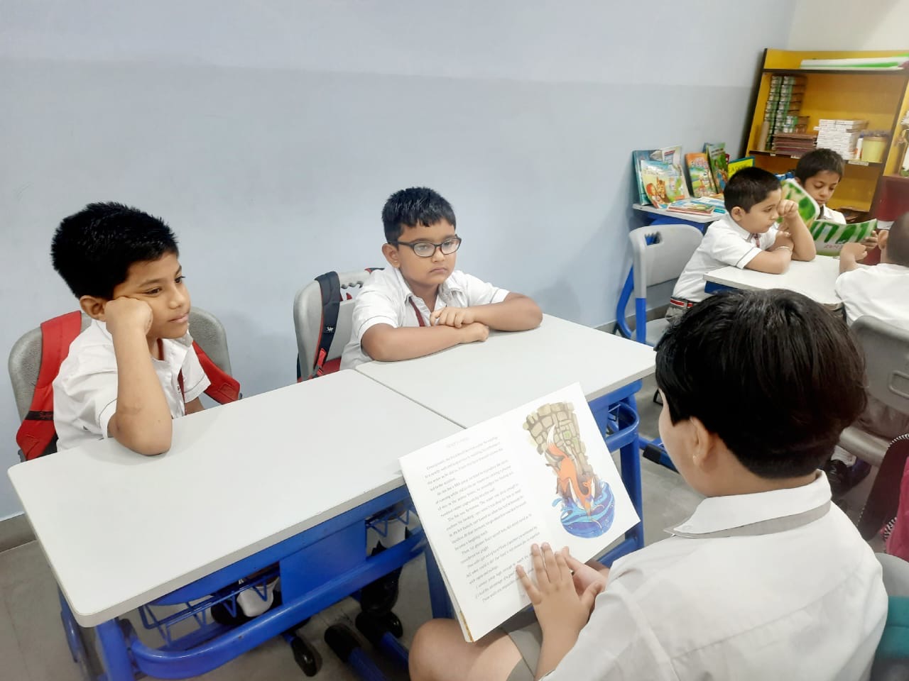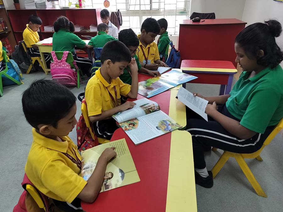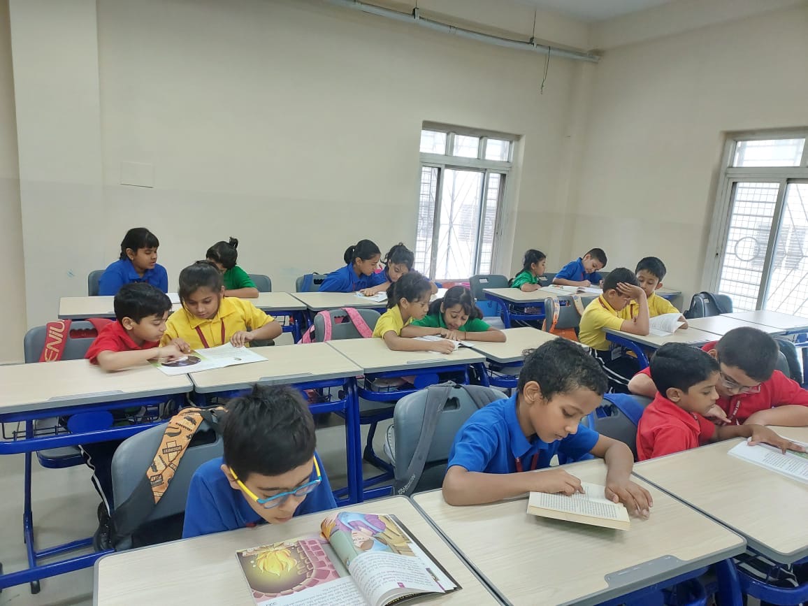 Our little ones had their seniors from Grades 3-5 go to their classes and read to them. The students from Grades 3-8, all read stories during their language classes ( English, Bengali, and Hindi) and had a wonderful time.