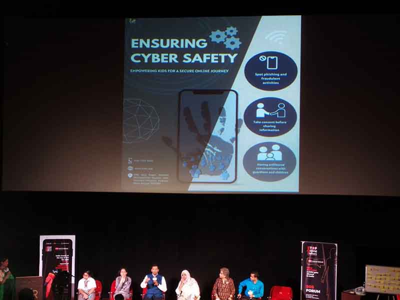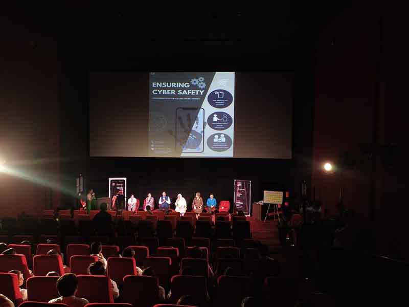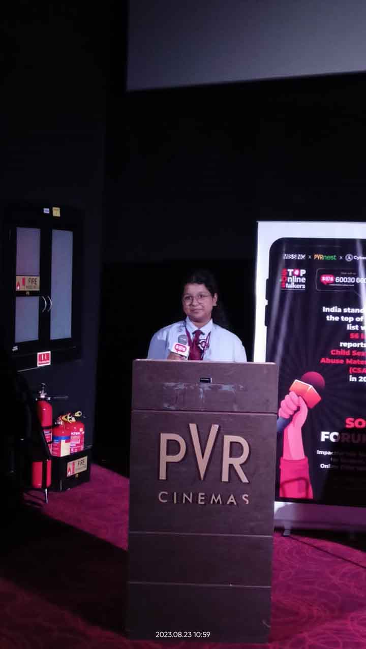 On 23rd August the students of Indus Valley World School attended the launch of the programme ‘Stop Online Stalkers’ initiated by the Missing Link Trust in collaboration with PVR Nest. The event commenced with the screening of a Public Service Announcement short film, followed by a discussion with a panel of eminent experts and a student from Grade IX of Indus Valley World School. Our students then presented a digital poster on cyber crime made by them and followed it up with a thought-provoking poem. The panelists answered questions regarding cyber safety as the students shared their own stories with the audience.