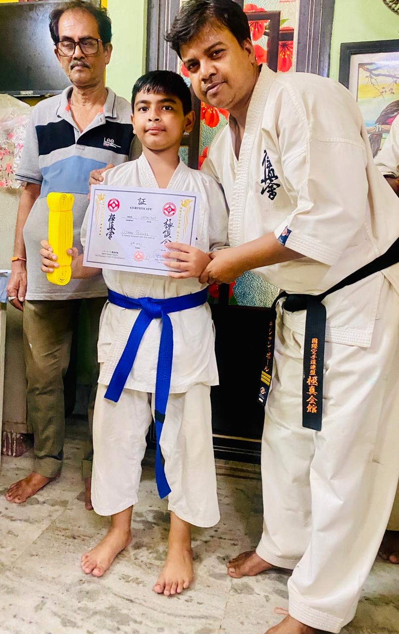 Ujaan achievement of the yellow belt in Kyokushin Karate