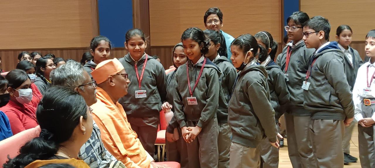 On 13th January the students of Grades 9 and 11 were privileged to be addressed by Swami Suparnananda Maharaj , Secretary ,Ramkrishna Mission Institute of Culture Golpark. The morning commenced with the students of Grades 4 and 5 singing one of Swami Vivekananda’s favourite hymns ‘ Khandava Bhava…’which enthralled everyone. This was followed by Swami Suparanandaji talking to the students about problems they face in their daily lives and the ways in which they could surmount them.