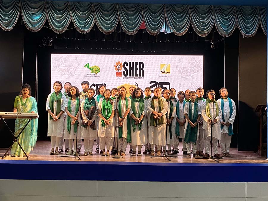 (Society for Heritage and Ecological Research). It was an honour for the school to perform for senior forest officers of the Government of West Bengal as the students presented a strong message about conservation to a packed auditorium.