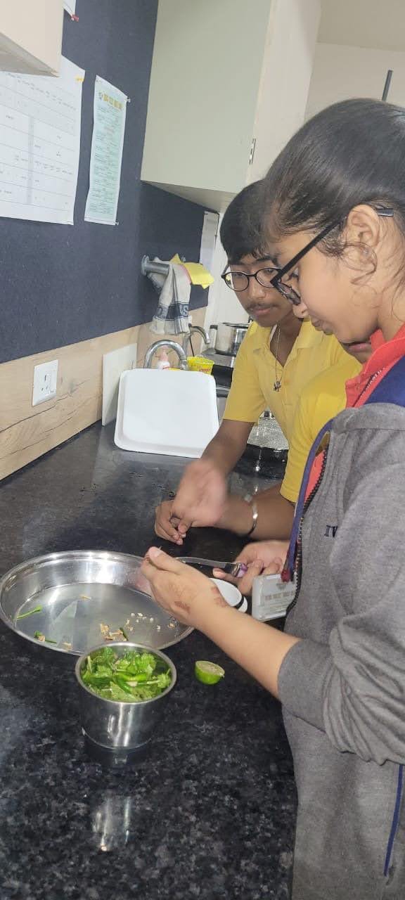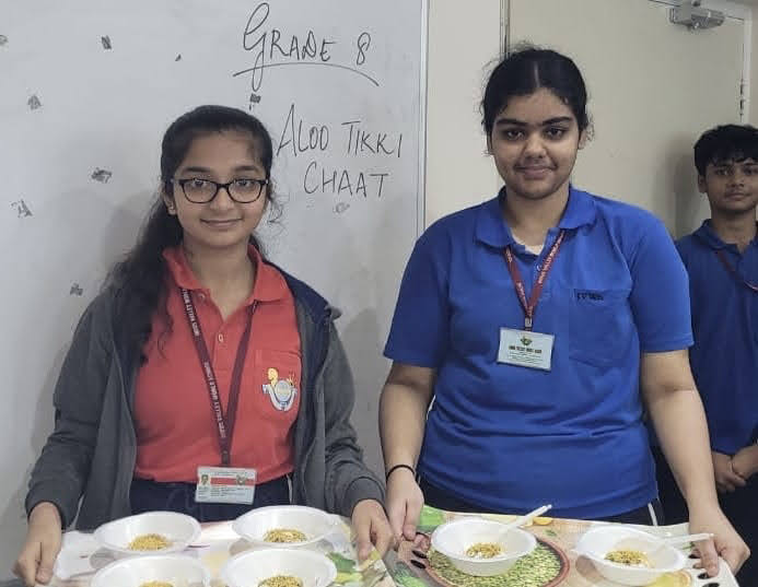 Grade 8 had an exhilarating morning with Ms. Ishita Biswas and Ms. Pratima Purkayastha in the Home Science lab. They tried their hand at making aloo tikia chat and served to all their friends and teachers in school. We were proud to see them hard at work, trying their hand at becoming master chefs!