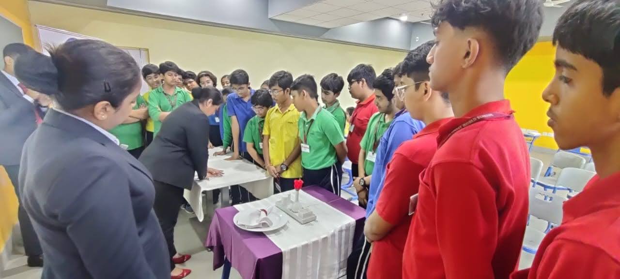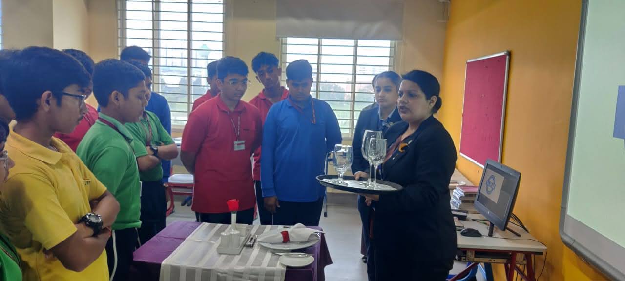 Grade 7 and 8 had wonderful sessions of floral art and table etiquette. Renowned world famous floral artist Ms. Kavita Poddar demonstrated 5 designs of floral art including interesting flowers, foliage and even vegetables. The experienced team from IIHM very kindly came over for an interesting session on table etiquette. Both proved to be vital learning experiences for the students from Grades 7 and 8.