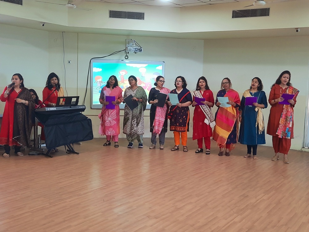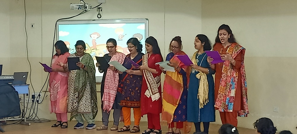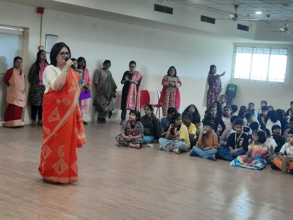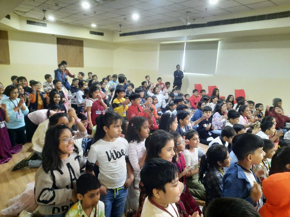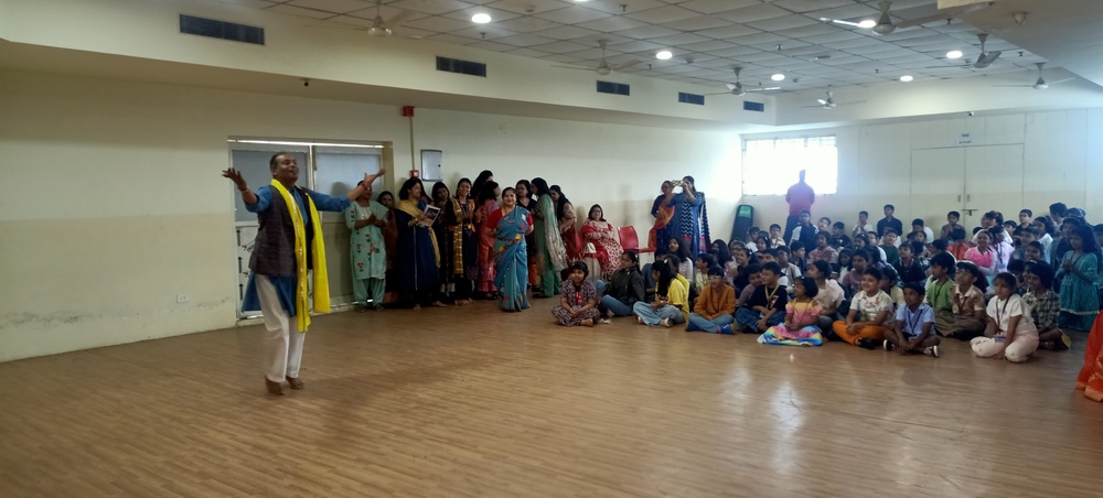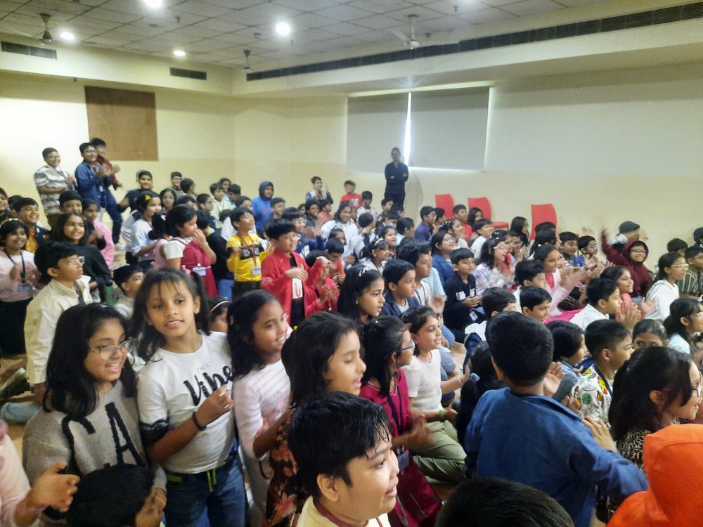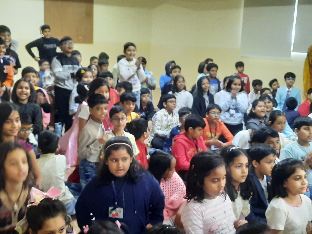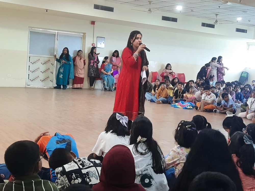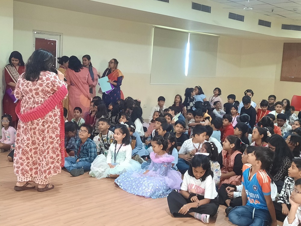 The Indus Valley World School buzzed with laughter and excitement as students of Grades 3 to 5 gathered to celebrate Children’s Day with a vibrant and heart warming program. The morning began with a delightful Hindi recitation titled Joker, capturing the innocence and humor of childhood. This was followed by a captivating song medley filled with foot-tapping tunes that opened nostalgic vistas of carefree days and sparkling imaginations. A lively folk song and dance then painted the stage with color and rhythm, celebrating India’s cultural richness and the joy of togetherness. However, the highlight of the morning was an uproarious skit that turned the tables—a dance-off between the “old” and the “new” in a classroom setting. To the students’ absolute delight, their favorite teachers took on the roles of mischievous classmates, playfully quarrelling, teaming up, and rediscovering the child within. The auditorium erupted in endless cheers as the performances unfolded, filling the air with boundless energy and shared laughter. The event beautifully captured the spirit of childhood—joyful, spontaneous, and forever young at heart.