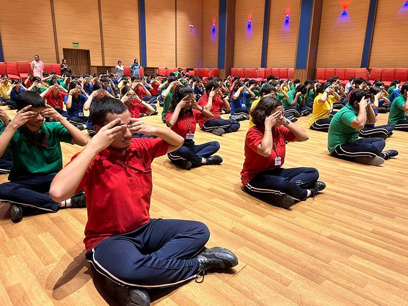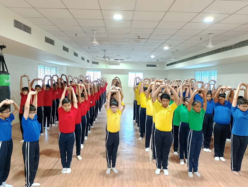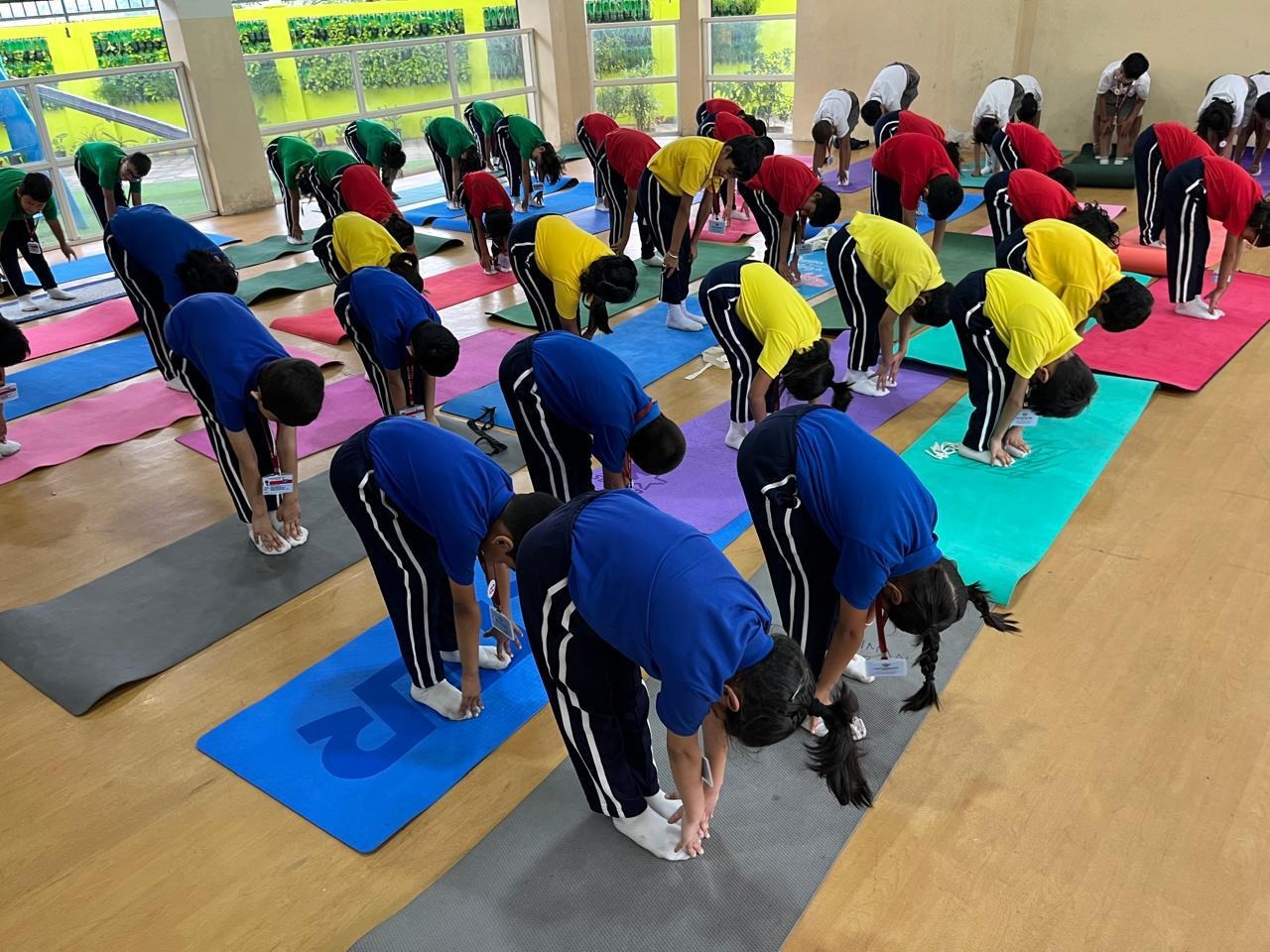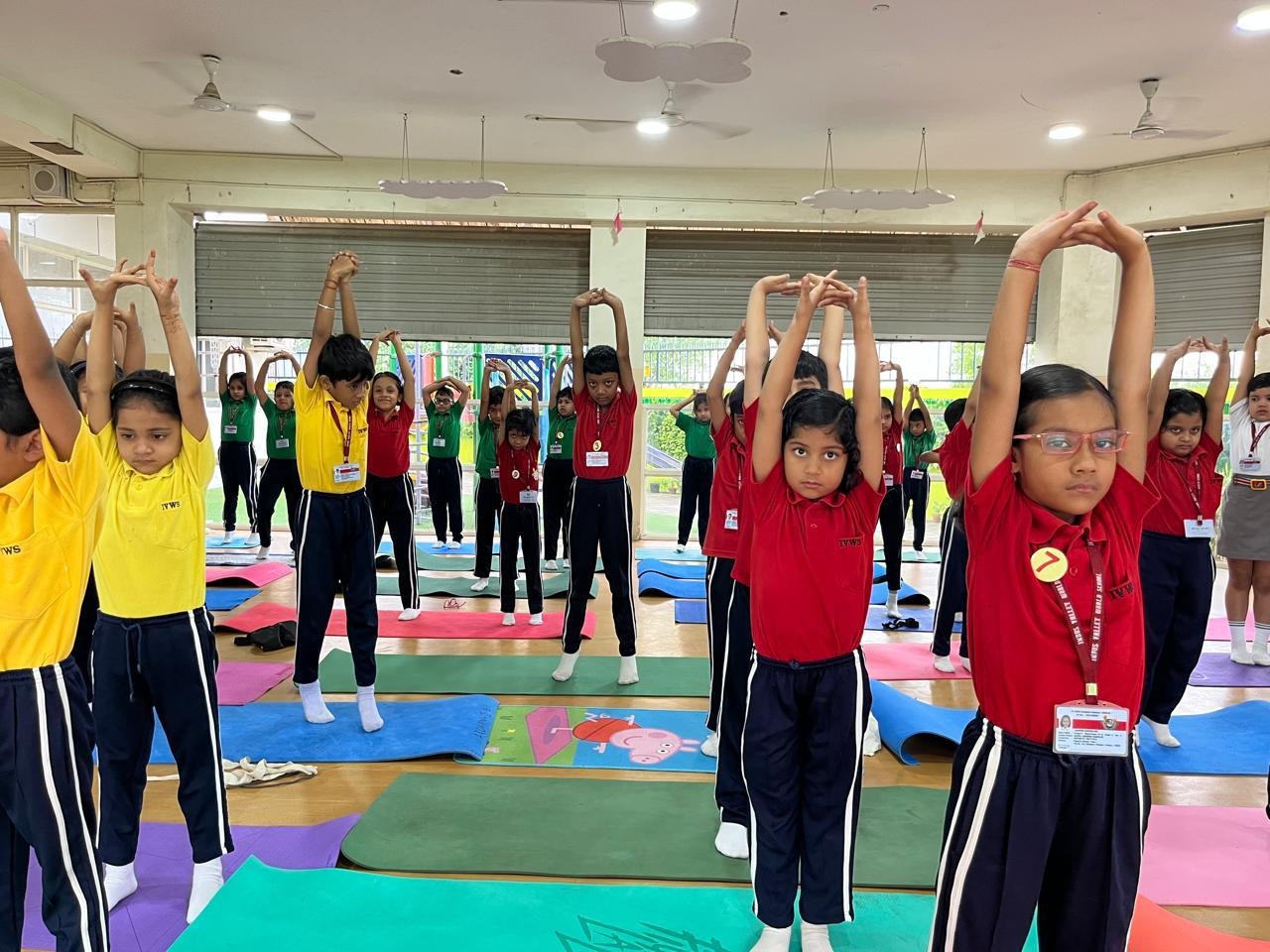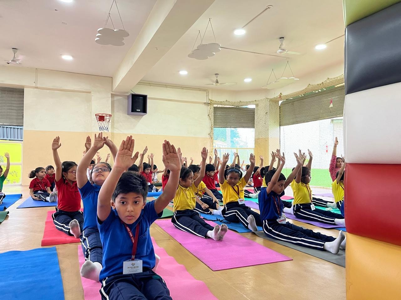On 21st June 2024, all the students from Upper KG to Grade XII celebrated the International Day of Yoga. All the students spent the first period of the day doing breathing exercises and various asanas along with their teachers.
