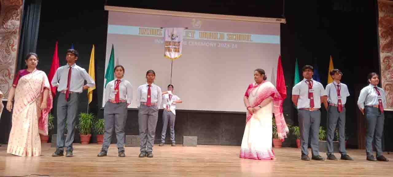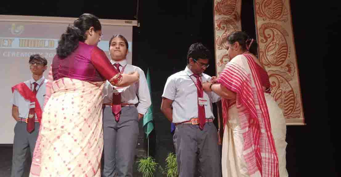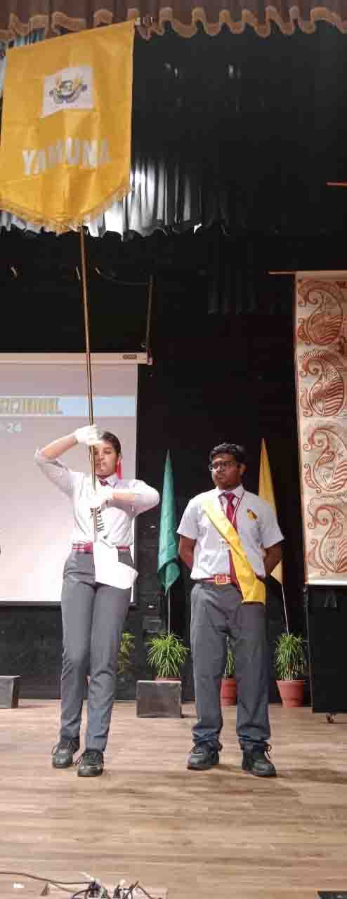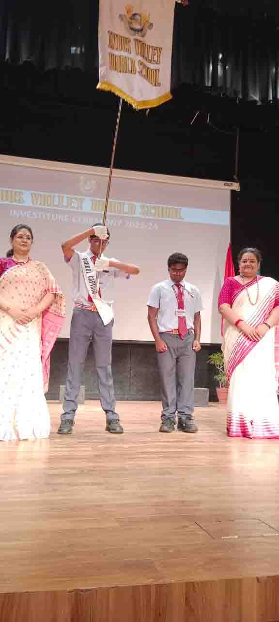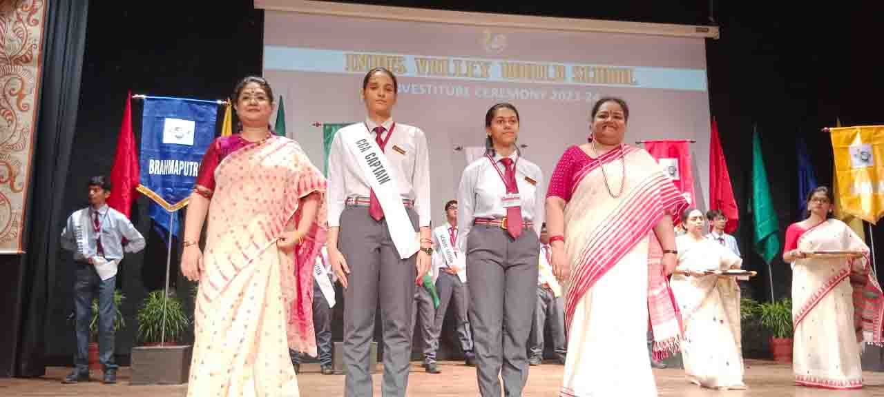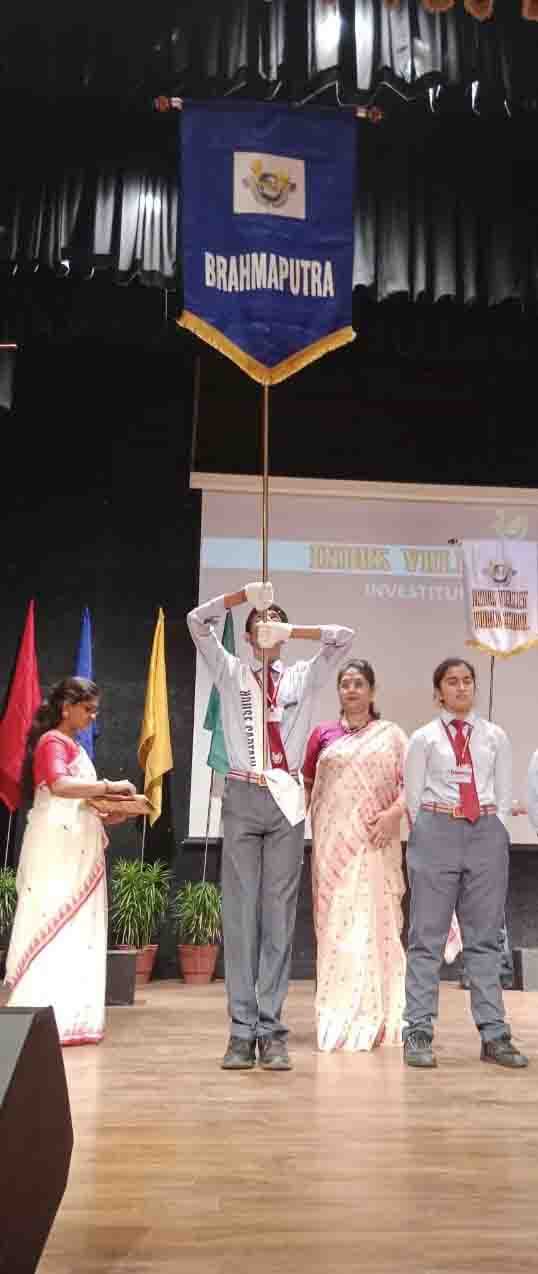 On 18th May 2023, Indus Valley World School conducted its investiture ceremony for the academic year, 2023-2024. At the outset of the programme there was a lamp lighting and prayer song followed by the address of Ms. Amita Prasad, the director of the school. She underscored the solemnity of the occasion when she said “The students who will be invested today have a quality that sets them apart — the quality to lead. Leadership is not about power; only people who serve can be good leaders.” The invested student leaders were Ishir Narayan (School captain), Utsa Ray (School vice-captain), Kashvi Ray (Captain co-curricular activities ), Sanchi Tiwary (Vice -captain of co-curricular activities) Prajit Bose (Sports captain) and S. Shree Ganesan (Sports vice-captain). The students appointed as the four house captains and vice captains respectively were Krishna Keshab Banik and Ryan Roy (Brahmaputra), Krishaa Nema and Parnika Dutta (Ganga), Toshan Chakraborty and Zayan Qaiser (Indus) and Aradhita Ray and Utsa Ray (Yamuna). They were badged by the Principal Ms. Reshma Bhattacharya and the Vice-Principal Ms. Priyadarshinee Guha. The students were administered the pledge by the Principal. The programme ended with a student’s prayer being read out by Madhupee Bhaumik of Grade XI which was followed by the School Song and the National Anthem.