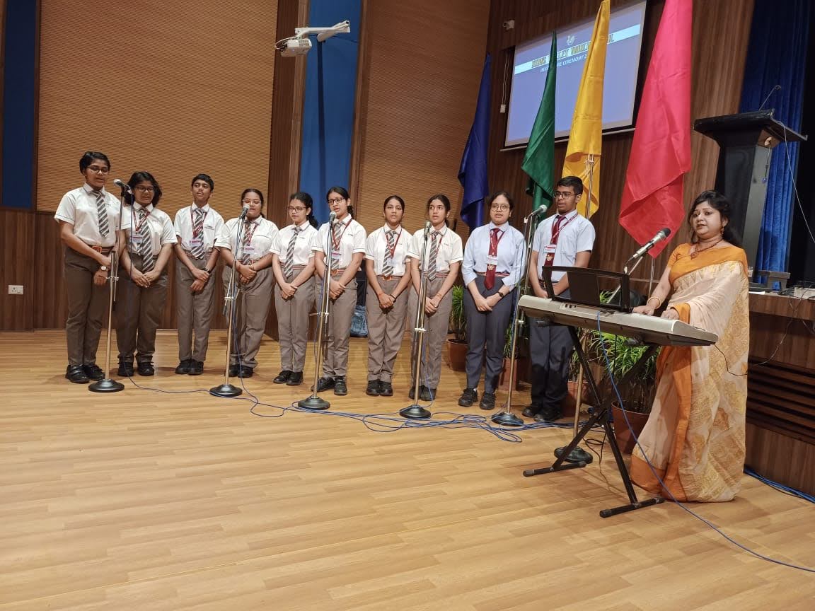 The ceremony began with the members of the Council walking in which was followed by the lighting of the lamp. This was followed by the Choir singing a prayer song. The gathering was addressed by the outgoing School Captain Ishir Narayan.The ceremony was presided over by the Director Ms. Amita Prasad and the students were badged by the Vice Principal Ms. Priyadarshinee Guha, Senior Secondary Coordinator Ms. Anu Khosla, Secondary Coordinator Ms. Dipshikha Mukherjee, Middle School Coordinator Ms. Saugata Banerjee and Junior School Headmistress Ms. Deborina Roy.