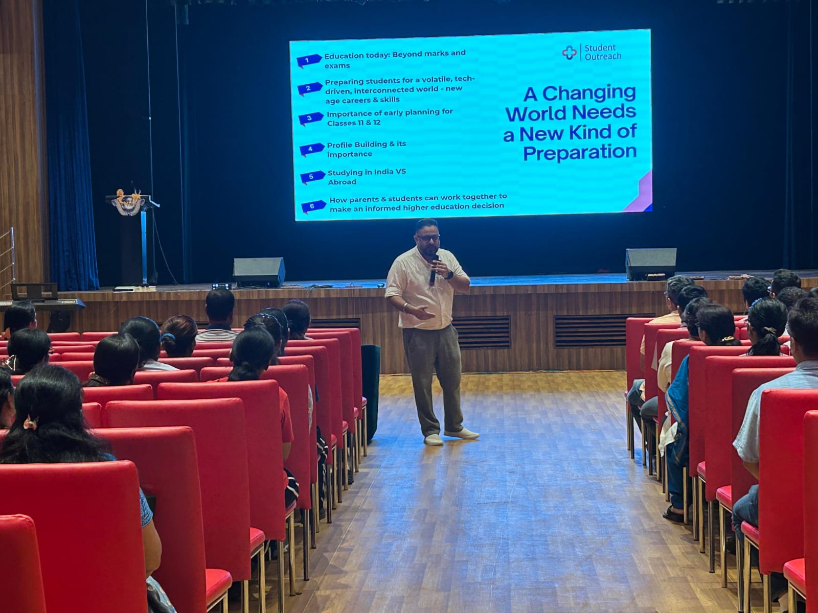 IVWS believes that career counseling is crucial for young individuals to help them make informed decisions about their career paths. It not only enhances self- awareness but also helps them to understand their true strengths and interests. It empowers them to choose careers that align with their aptitudes and aspirations, fostering a more satisfying and productive work life. With this motto, Indus Valley World School, in collaboration with Student Outreach organized its Annual Career Fair, 3 rd Edition, on September 20, 2025. In order to make the Fair more meaningful, a special Career Talk was organized for the students and parent alike where Mr Ajay Sharma, a veteran career counselor addressed important questions like why a Career Fair is important, the impact of the rapidly changing world on career options, the growing spectrum of new age career choices and the evolution of many new universities offering such career paths. The large hall in the school campus buzzed with activity from 8 am to 12.30 pm as the students of Grade X to XII, along with their parents visited the fair in large numbers. Thirty eight renowned universities like Ashoka, Flame, OP Jindal, Krea, Rishiwood, Dayanand Sagar and many more participated in it. The event saw an overwhelming response from the students and their parents. They were more than happy to have got the opportunity to interact directly with the university representatives, who in turn were satisfied with the very high footfall.