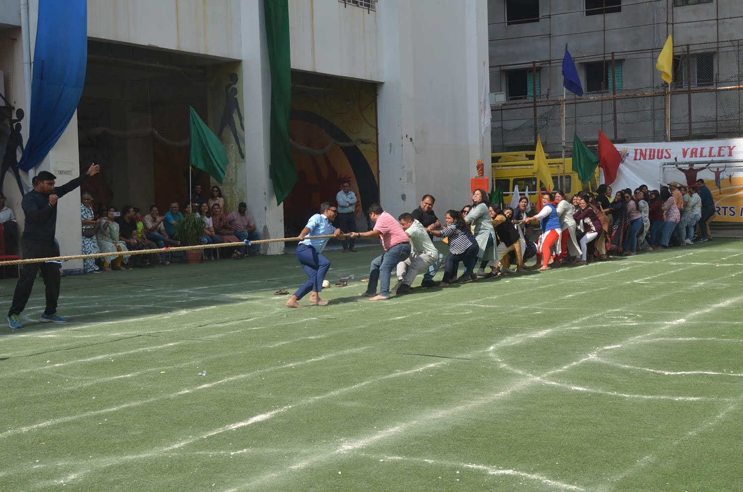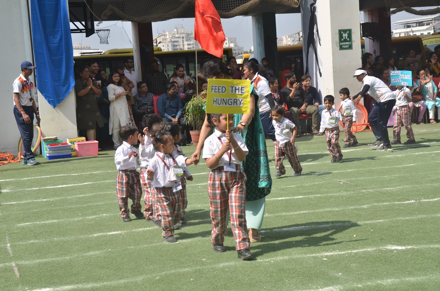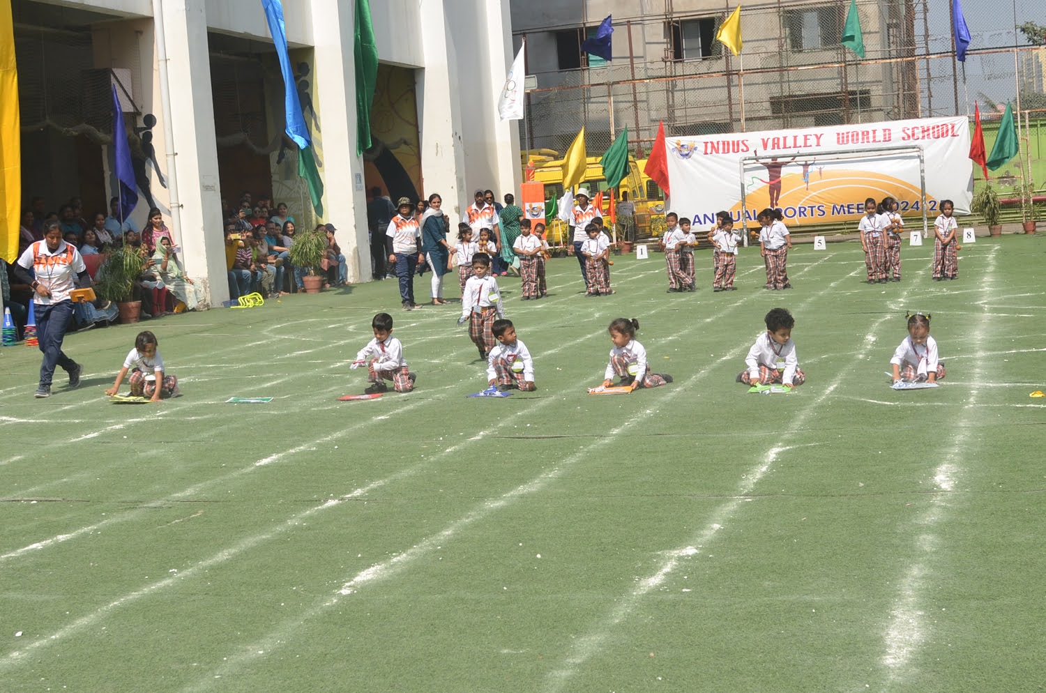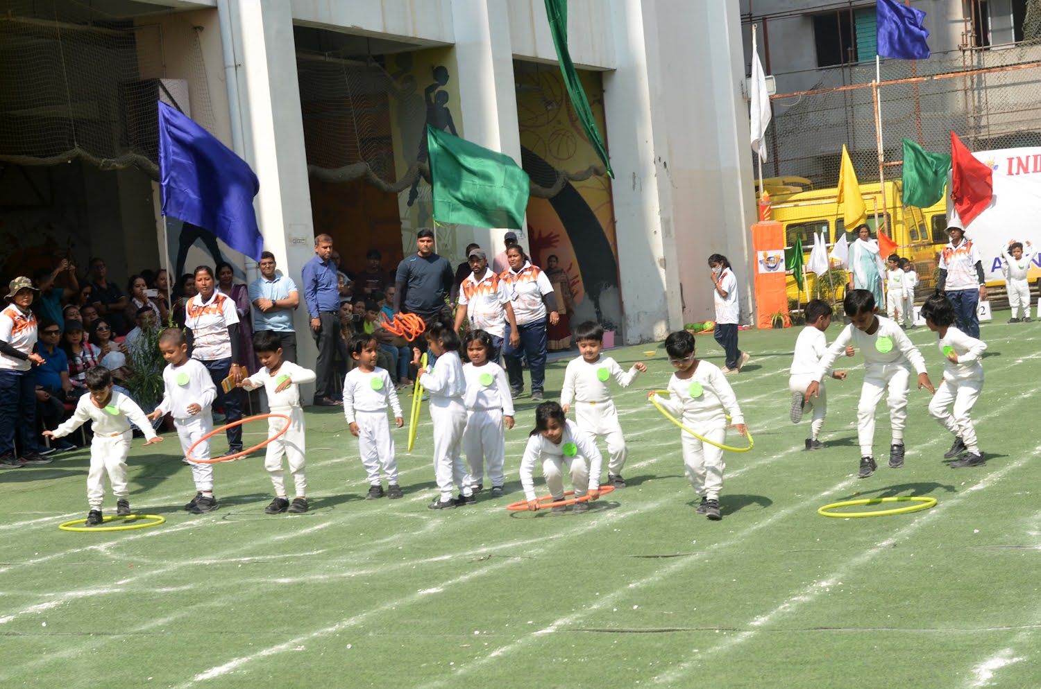 On February 8th, 2025, IVWS’s Pre-Primary Department hosted a Mini Sports Day themed around SDG 3 (Good Health and Well-Being), featuring a series of engaging activities and ceremonies. The event began with a welcome address by Headmistress Ms. Deborina Roy, followed by a flag-hoisting ceremony led by Principal Mrs. Reshma Bhattacharya, Vice Principal Ms. Madhumita Seal, and Sports HOD Mr. Anshu Pandey. Special Guest Mrs. Suman Sood and Guest of Honor Mrs. Chandra Banerjee graced the occasion. The day’s activities included a parade by Playgroup and Nursery students, drill displays by Lower and Upper Kindergarten children, and various novelty races themed around healthy living, such as “Tiny Hands, Big Achievements,” “Healthy versus Junk Food” and “Ball Balance Buddy Race.” A tug-of-war competition for parents added to the festivities, and the event concluded with a prize distribution ceremony, successfully promoting the message of health, wellness, and sustainable development among young children.