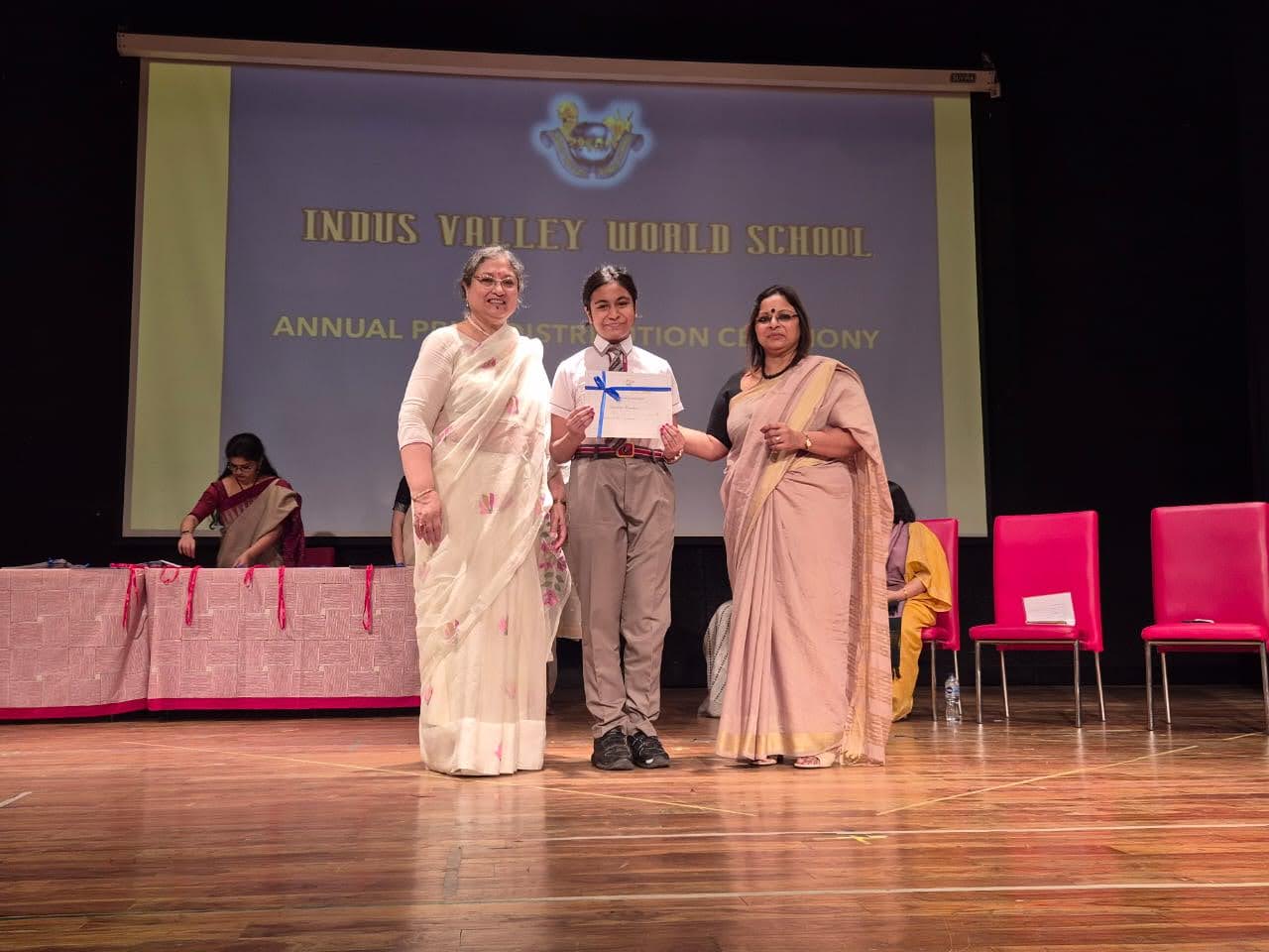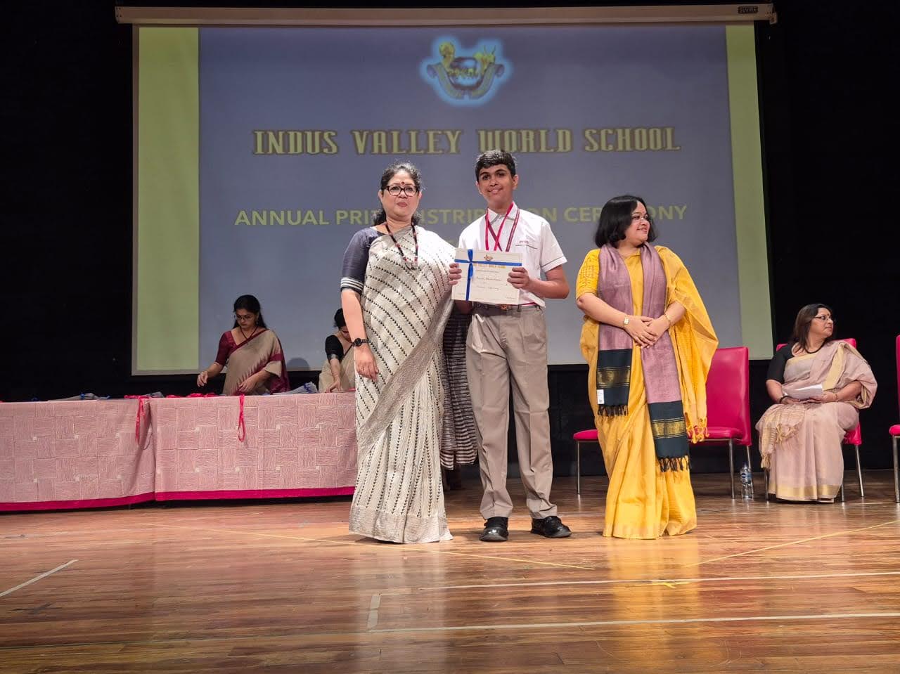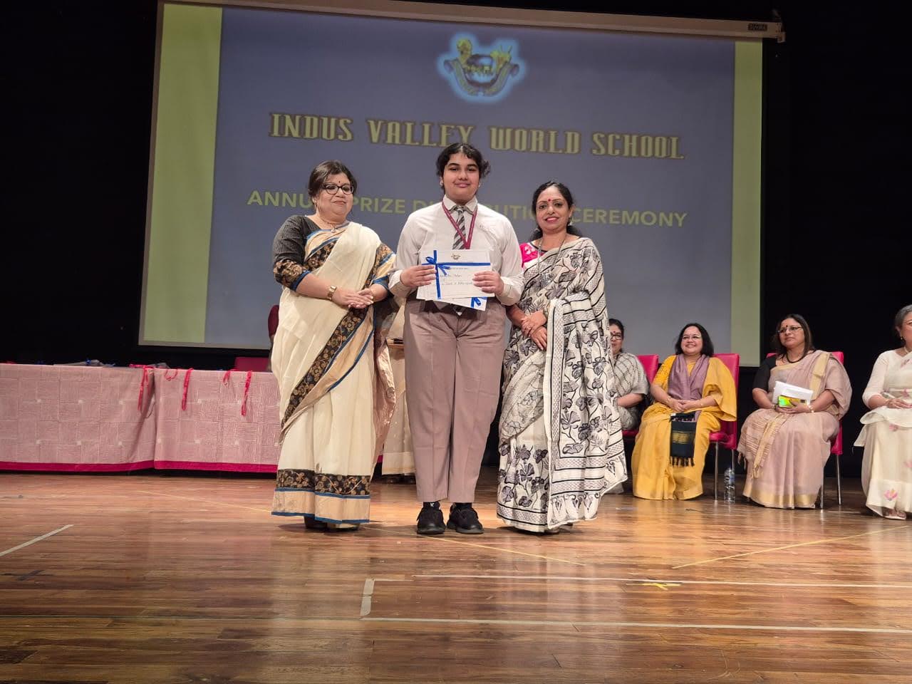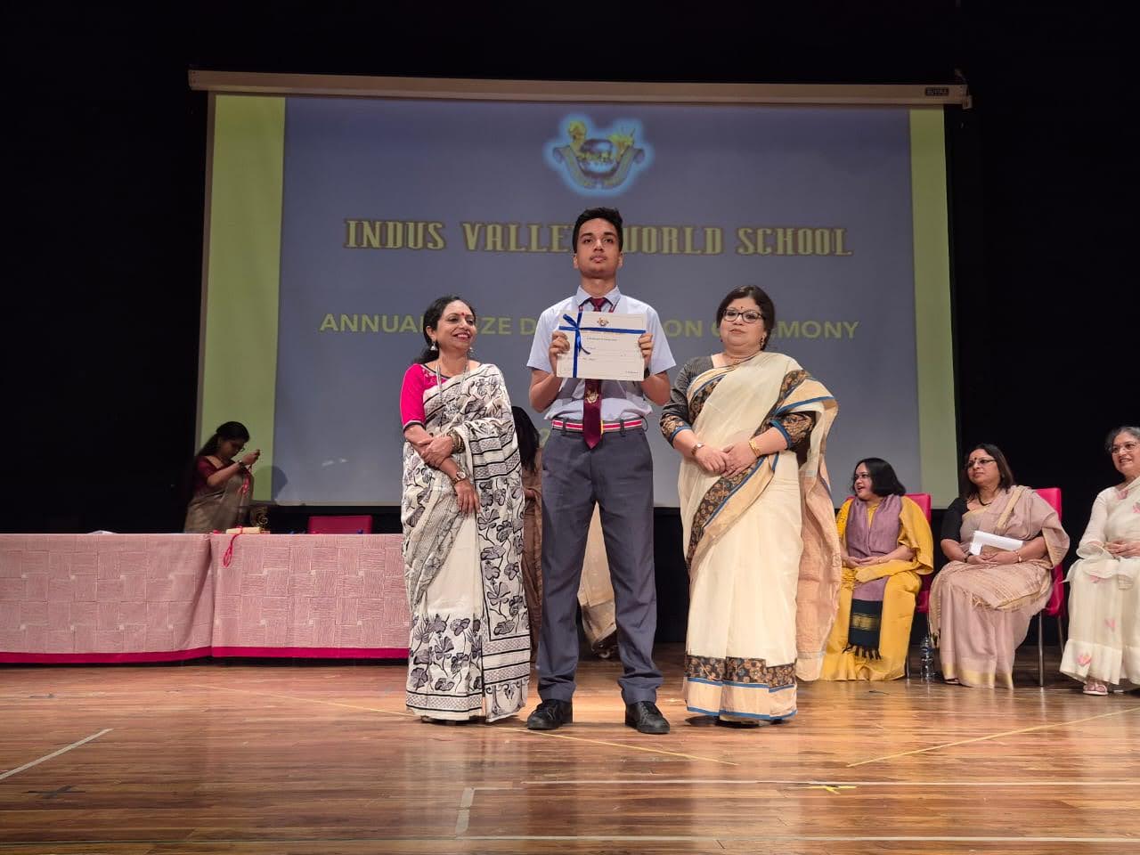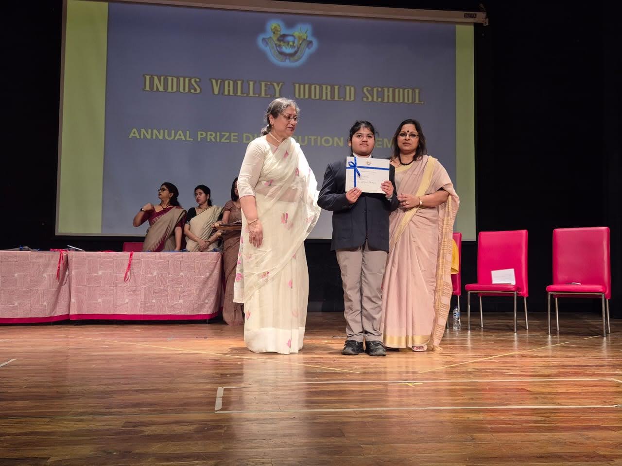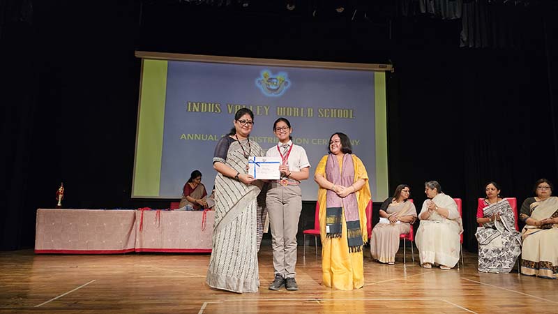 Students were awarded for excelling in several categories. Certificates were given for General Proficiency, Subject Excellence, 100% Attendance, Commendable Progress in academics, Sports and Co-curricular Activities and All Round Excellence. Certificates of Appreciation were awarded to a few students from grades 9 and 11, who had rendered selfless service to Children with Special Needs as Readers and Prodders thereby helping in the smooth facilitation of their papers during the Board Examinations.