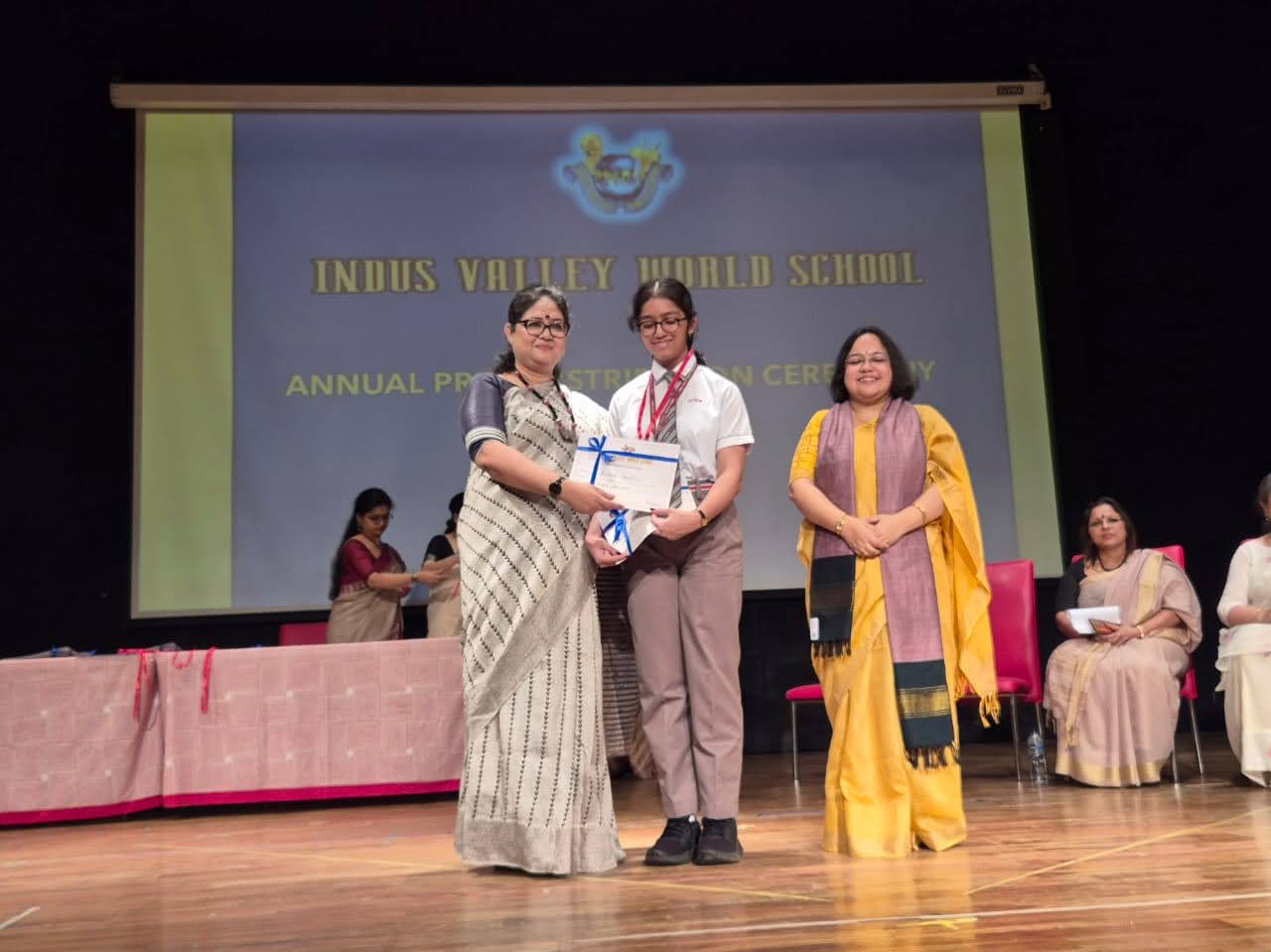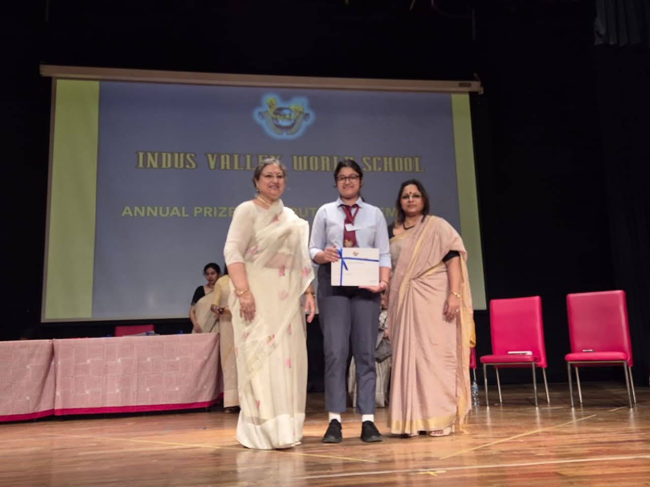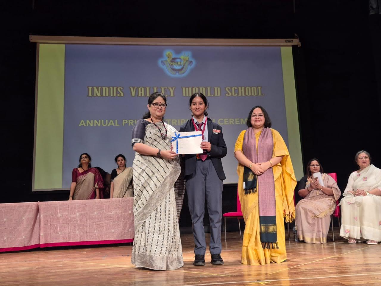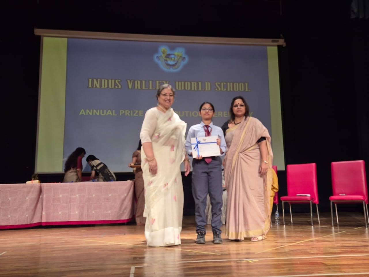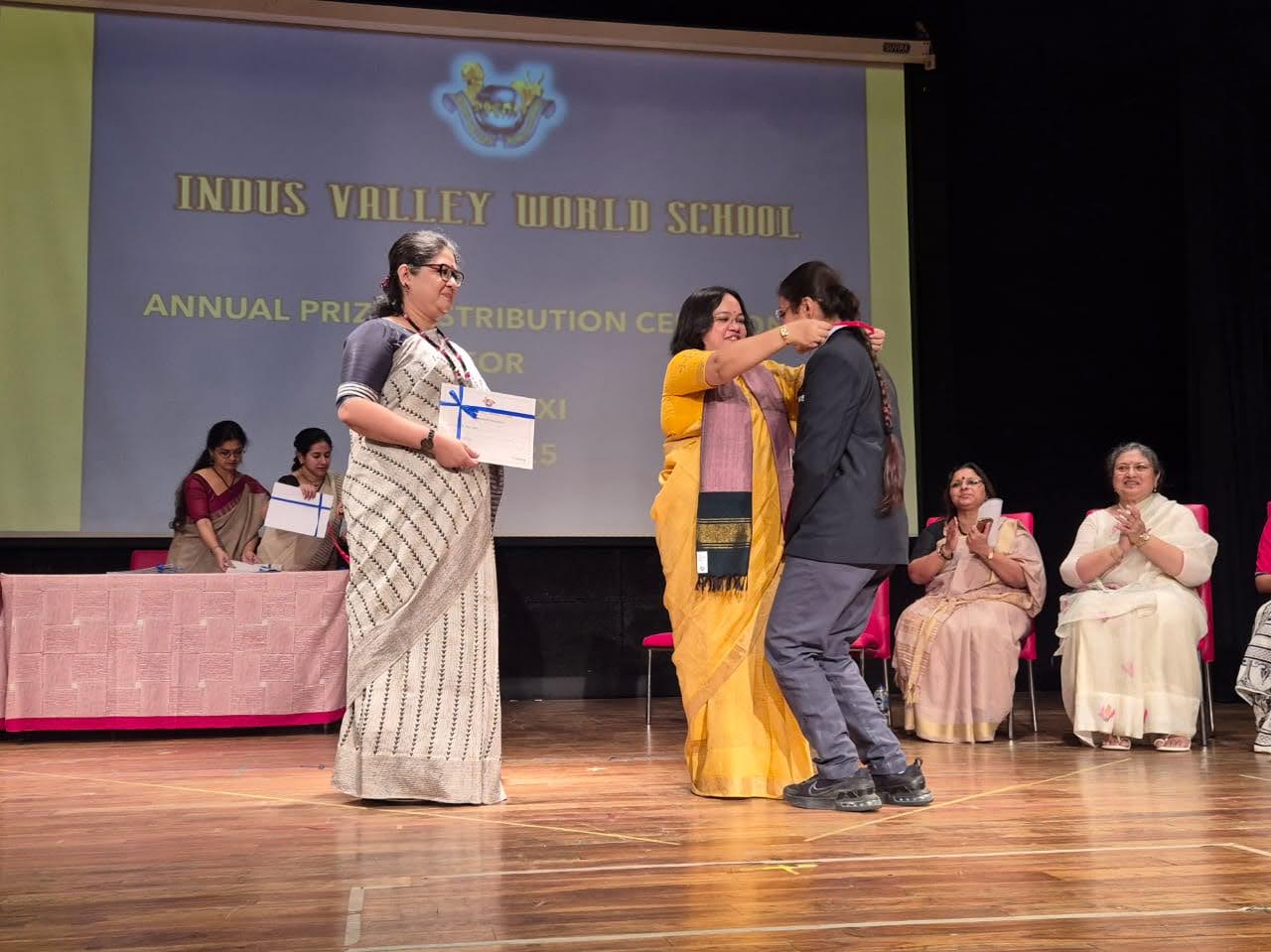 Students were awarded for excelling in several categories. Certificates were given for General Proficiency, Subject Excellence, 100% Attendance, Commendable Progress in academics, Sports and Co-curricular Activities and All Round Excellence. Certificates of Appreciation were awarded to a few students from grades 9 and 11, who had rendered selfless service to Children with Special Needs as Readers and Prodders thereby helping in the smooth facilitation of their papers during the Board Examinations.