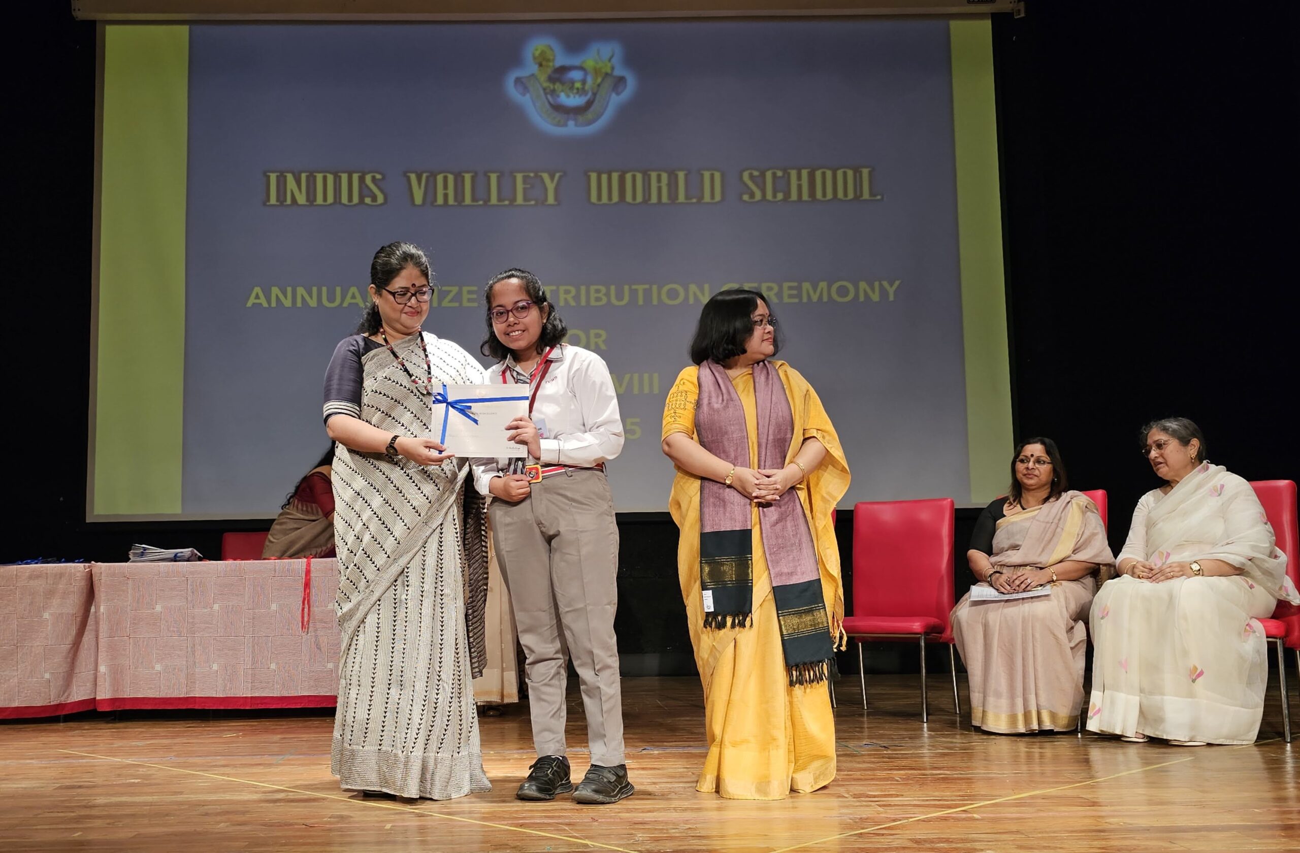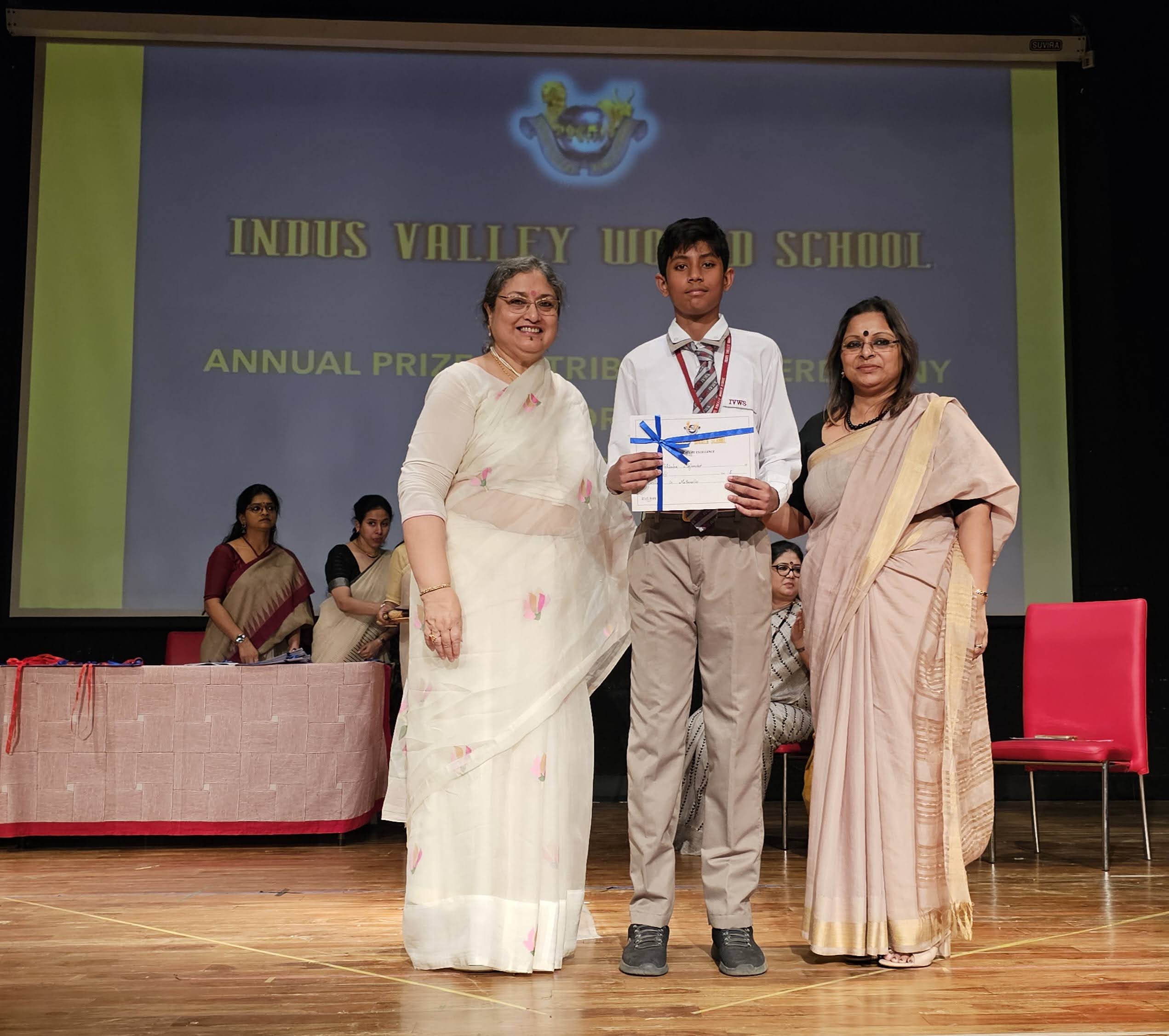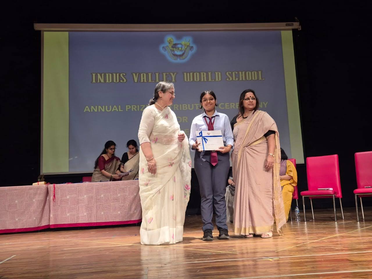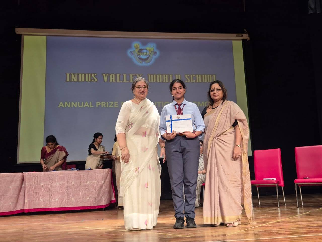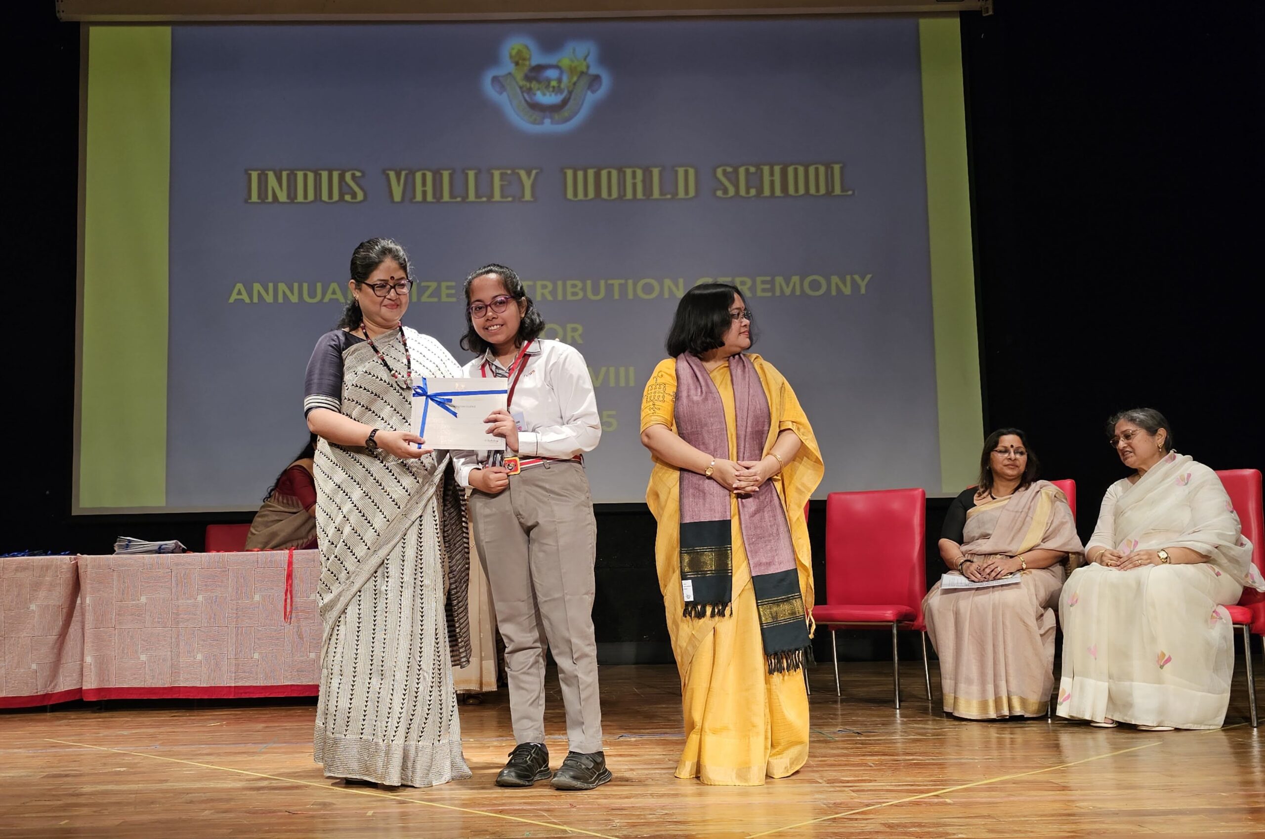 Students were awarded for excelling in several categories. Certificates were given for General Proficiency, Subject Excellence, 100% Attendance, Commendable Progress in academics, Sports and Co-curricular Activities and All Round Excellence. Certificates of Appreciation were awarded to a few students from grades 9 and 11, who had rendered selfless service to Children with Special Needs as Readers and Prodders thereby helping in the smooth facilitation of their papers during the Board Examinations.