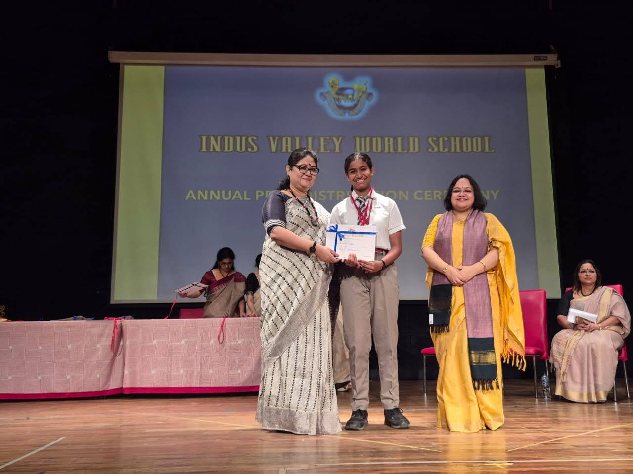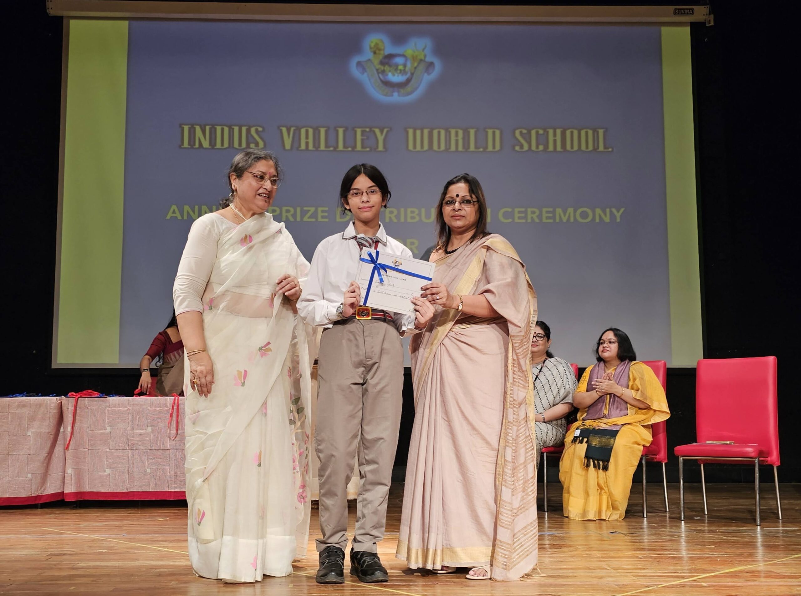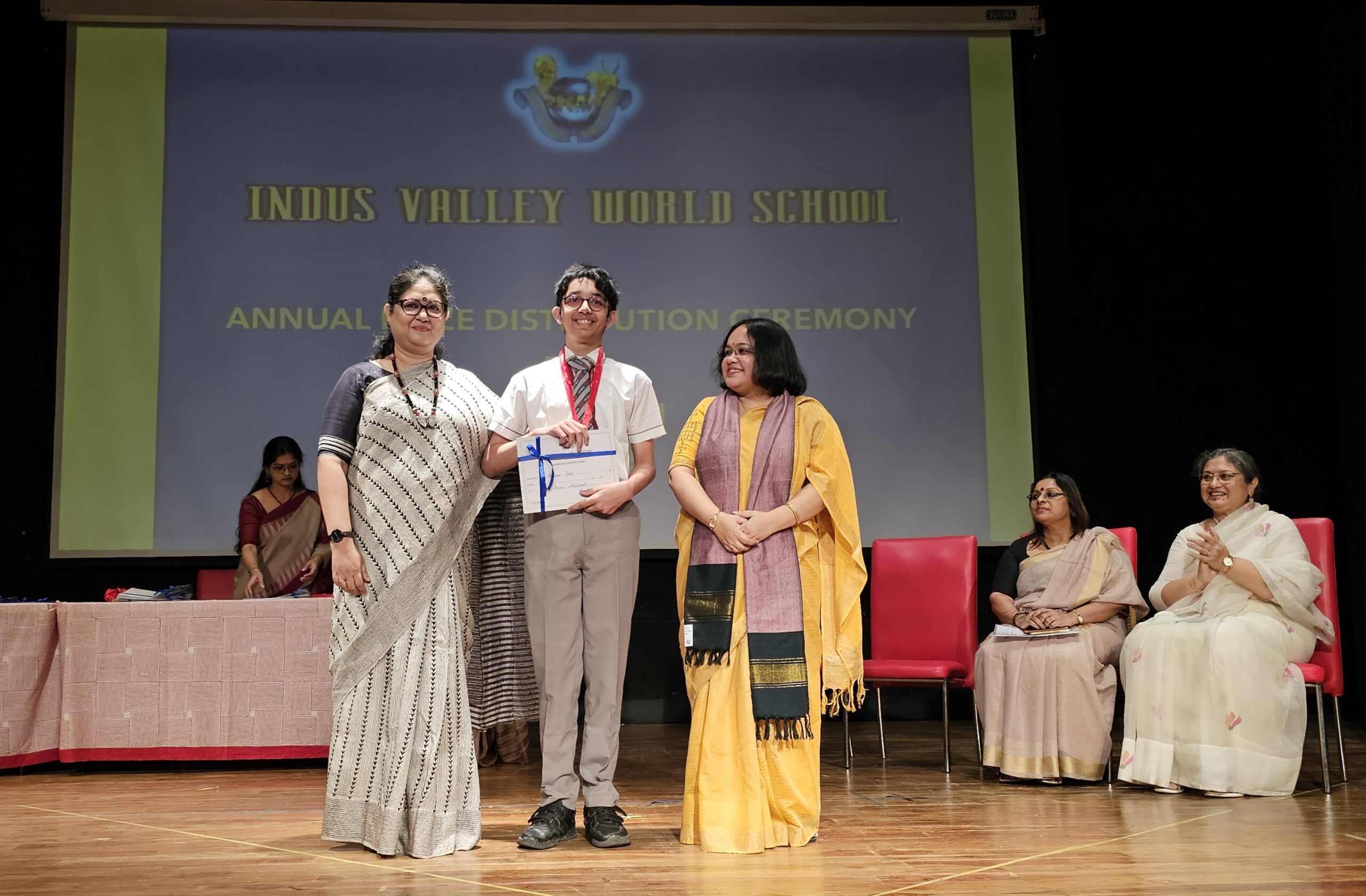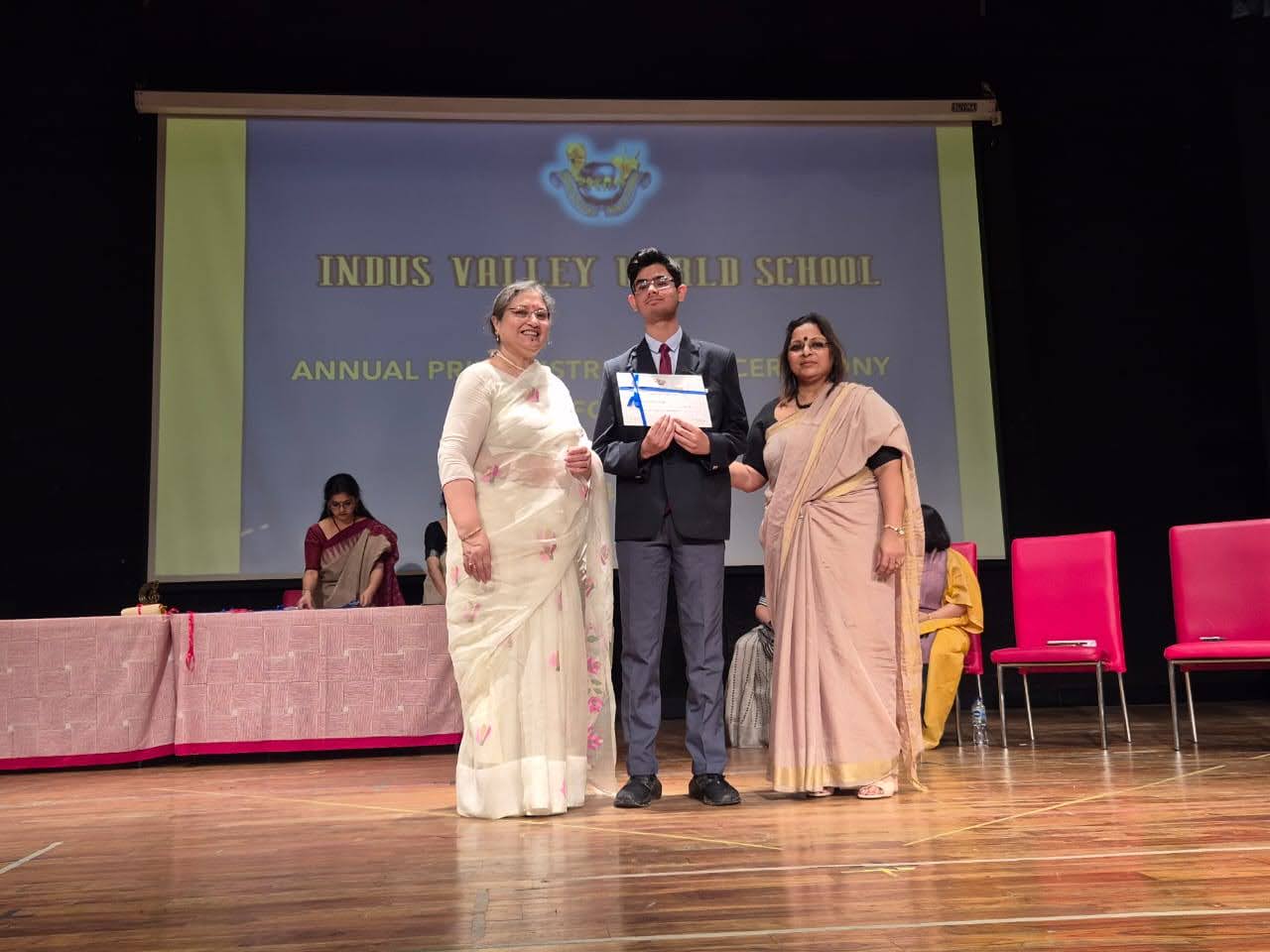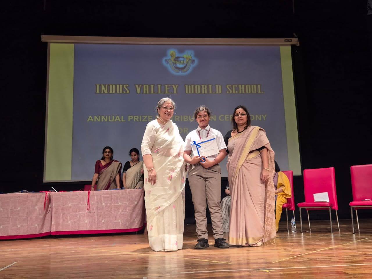 Students were awarded for excelling in several categories. Certificates were given for General Proficiency, Subject Excellence, 100% Attendance, Commendable Progress in academics, Sports and Co-curricular Activities and All Round Excellence. Certificates of Appreciation were awarded to a few students from grades 9 and 11, who had rendered selfless service to Children with Special Needs as Readers and Prodders thereby helping in the smooth facilitation of their papers during the Board Examinations.