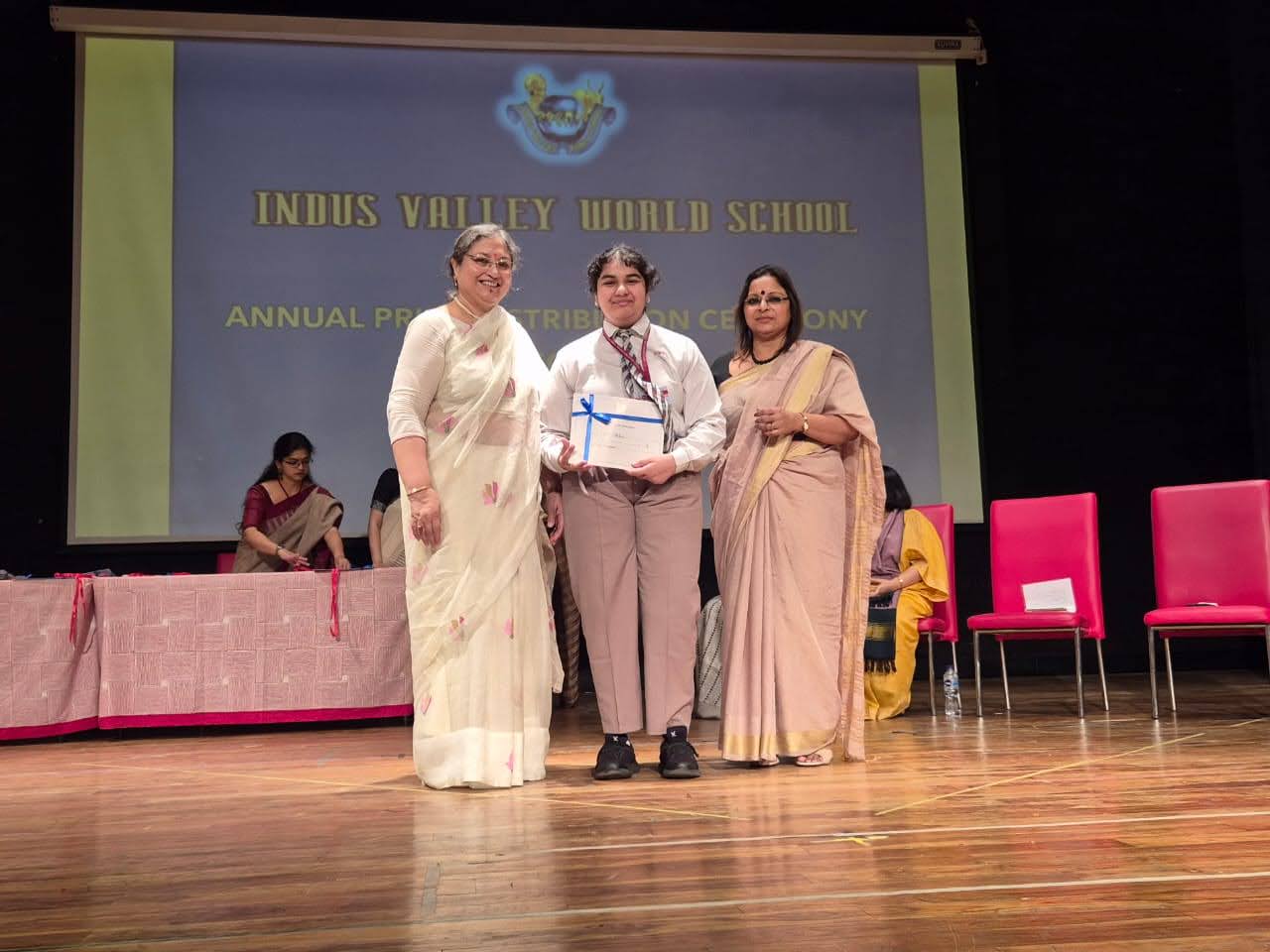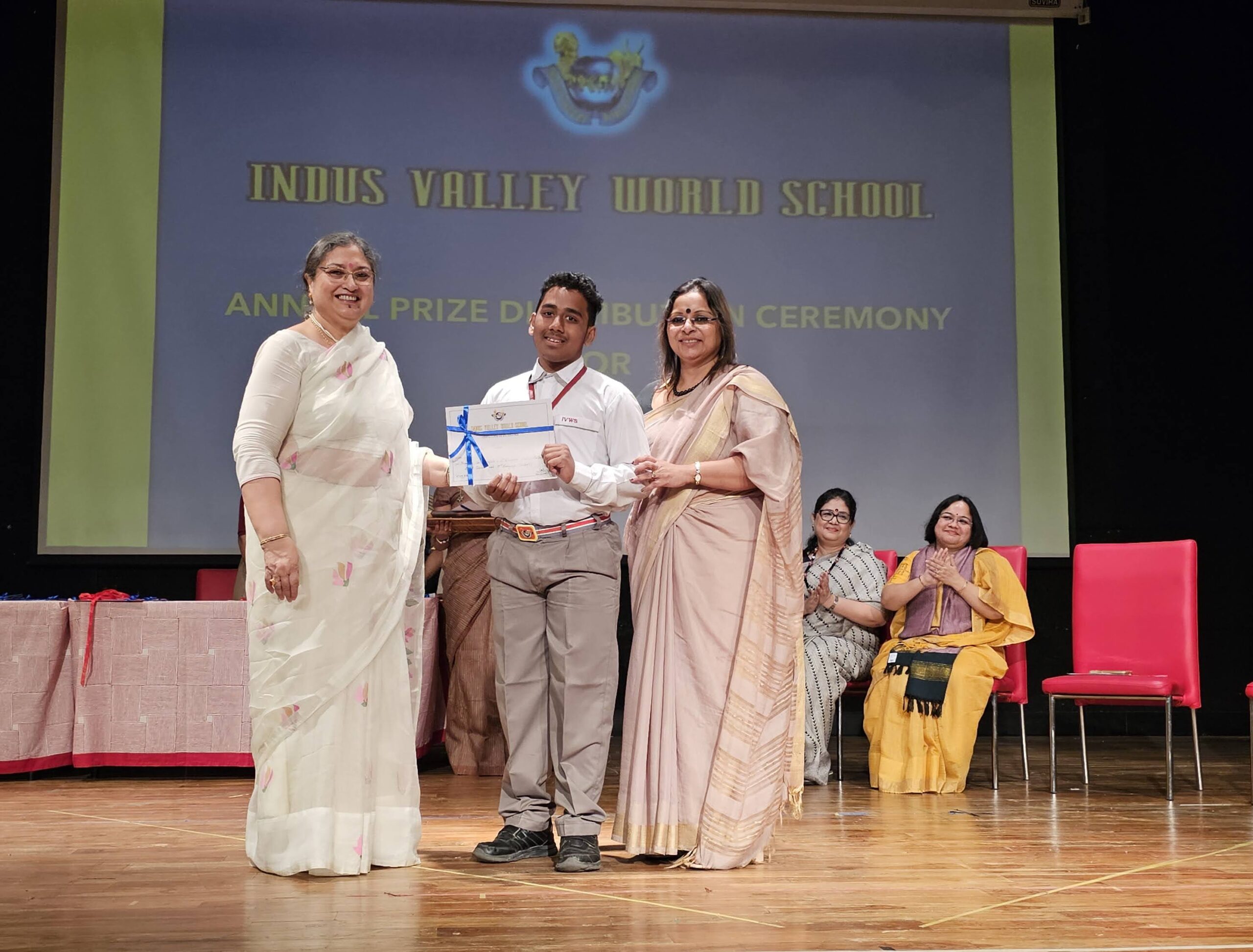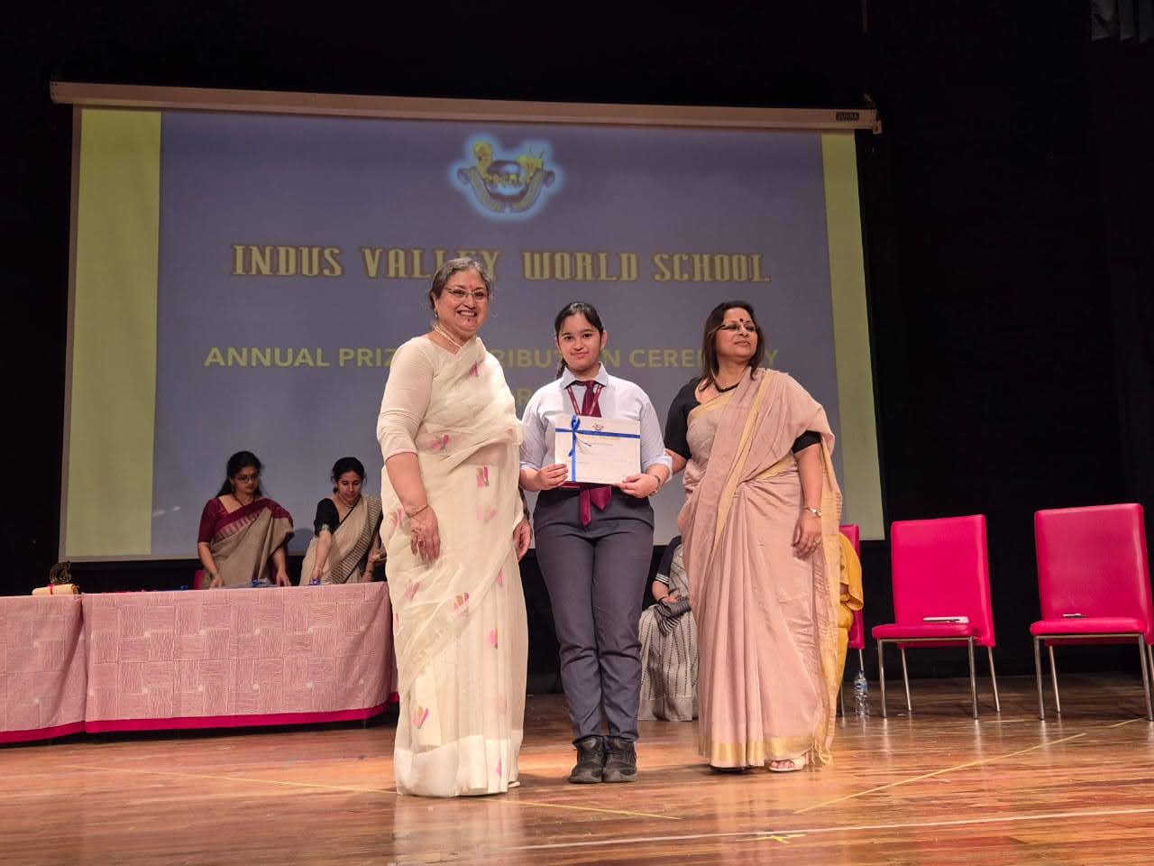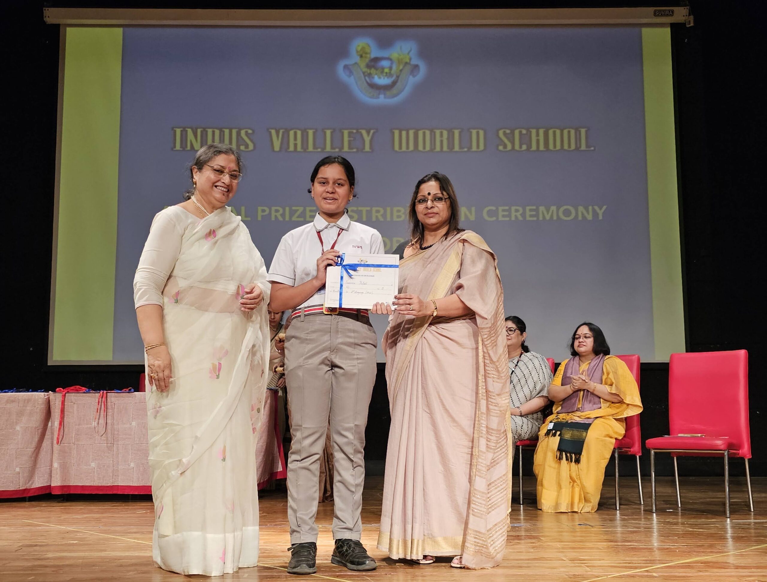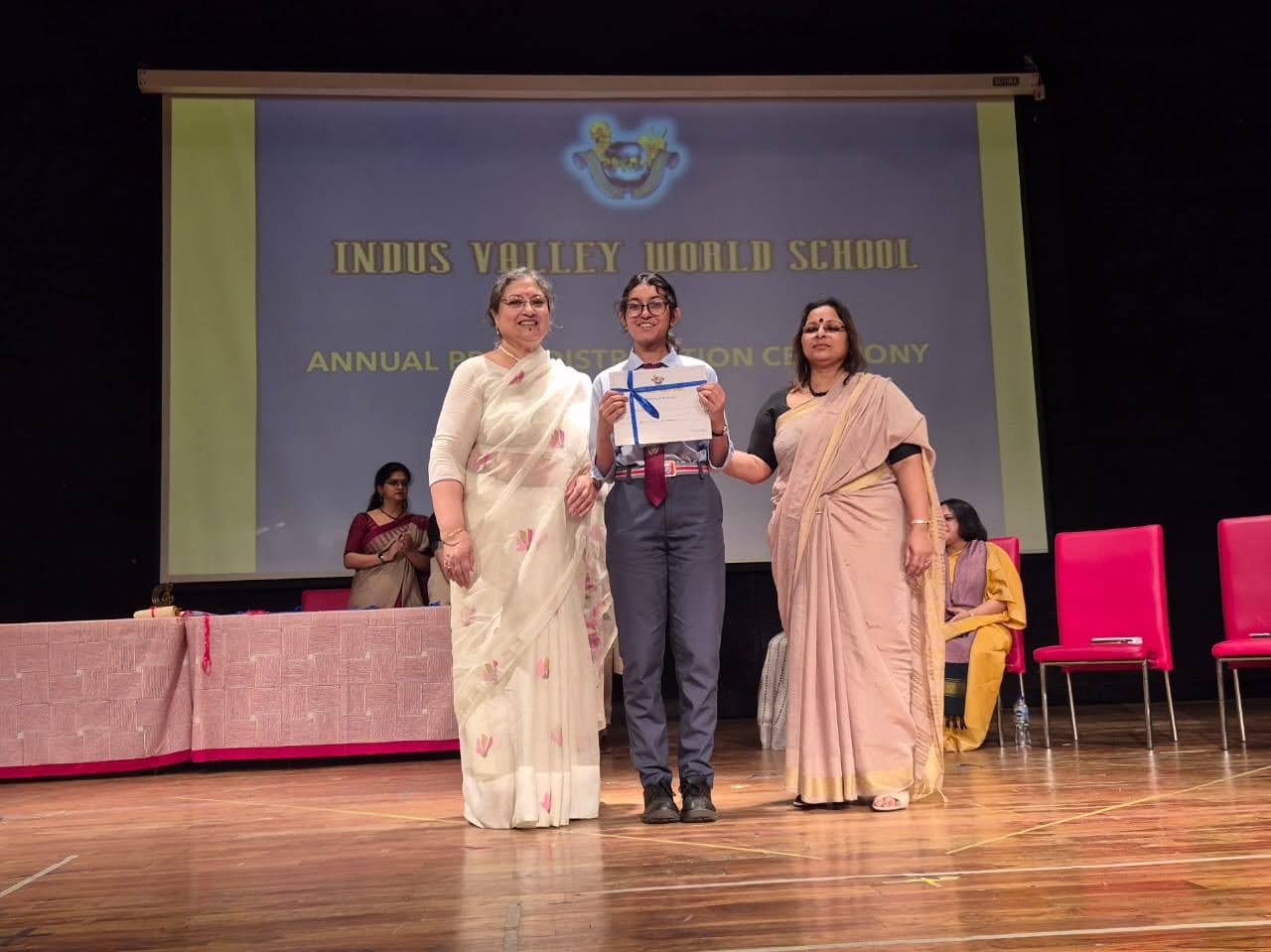 Students were awarded for excelling in several categories. Certificates were given for General Proficiency, Subject Excellence, 100% Attendance, Commendable Progress in academics, Sports and Co-curricular Activities and All Round Excellence. Certificates of Appreciation were awarded to a few students from grades 9 and 11, who had rendered selfless service to Children with Special Needs as Readers and Prodders thereby helping in the smooth facilitation of their papers during the Board Examinations.
