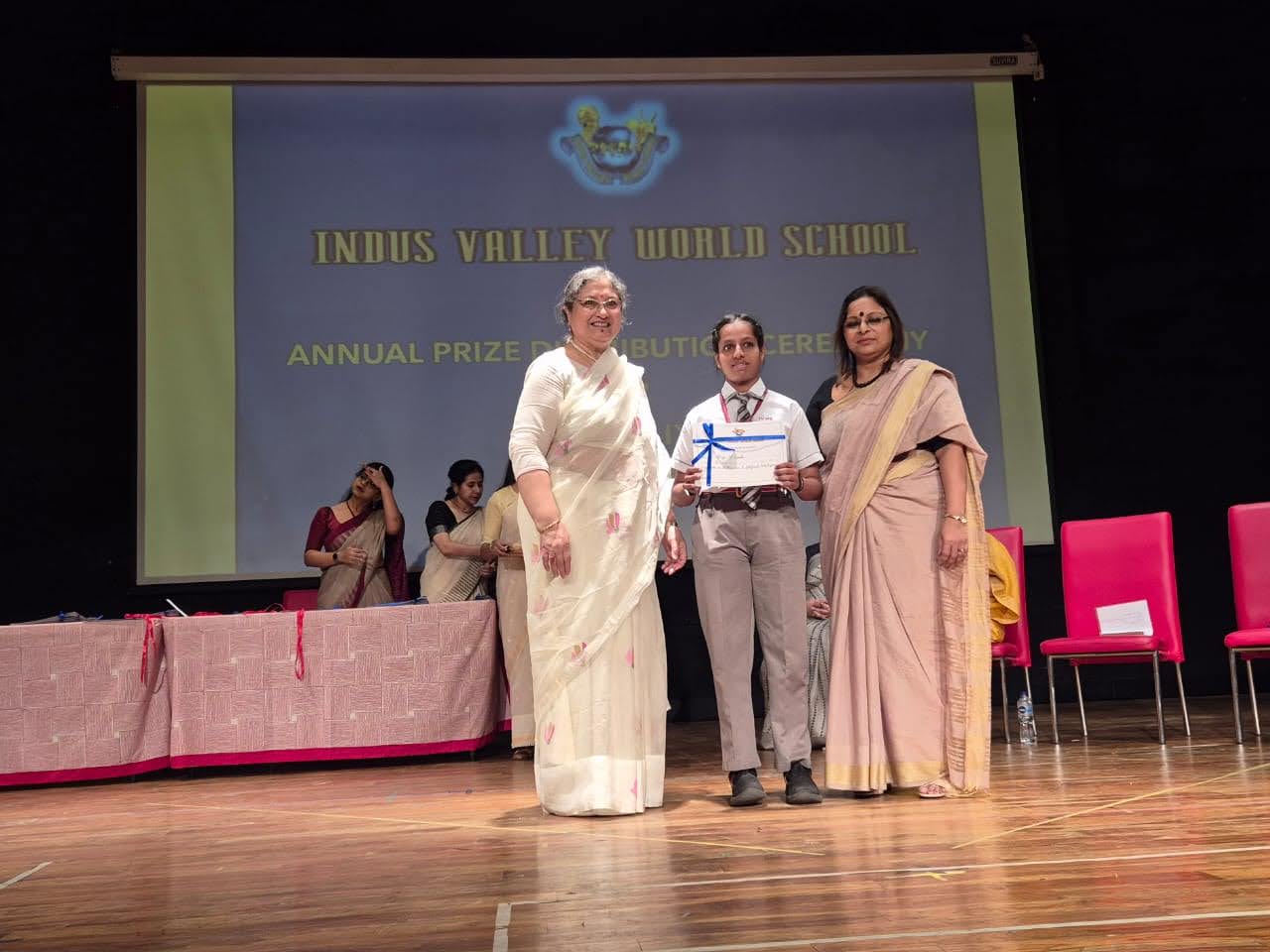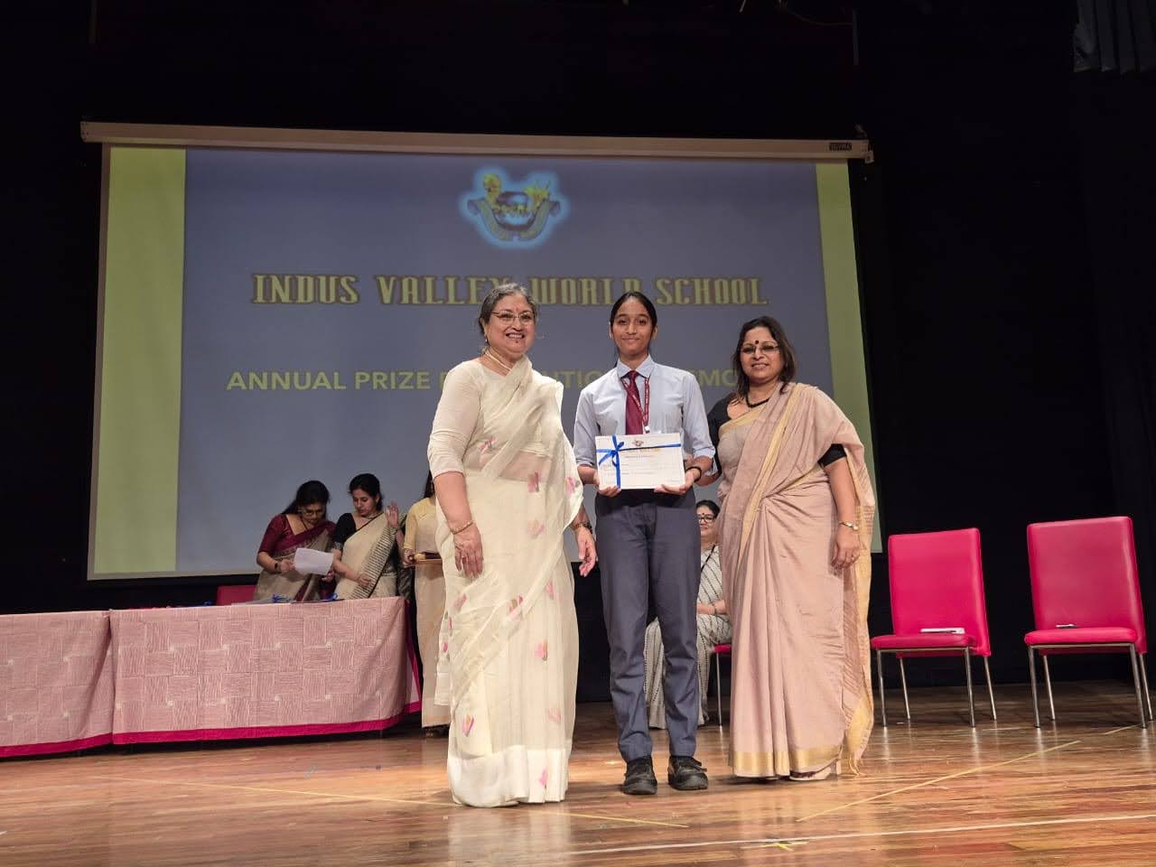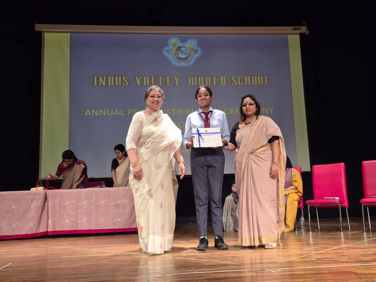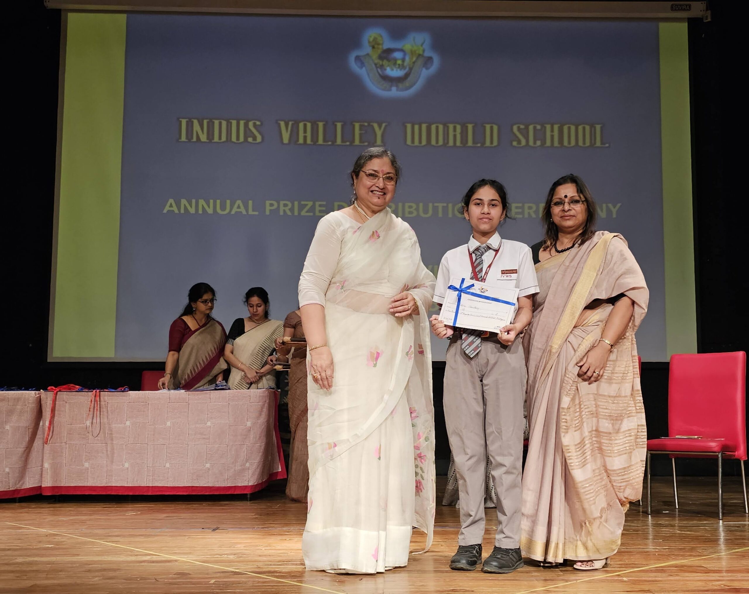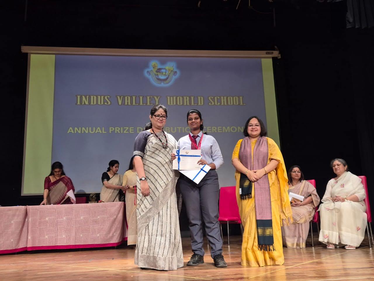 Students were awarded for excelling in several categories. Certificates were given for General Proficiency, Subject Excellence, 100% Attendance, Commendable Progress in academics, Sports and Co-curricular Activities and All Round Excellence. Certificates of Appreciation were awarded to a few students from grades 9 and 11, who had rendered selfless service to Children with Special Needs as Readers and Prodders thereby helping in the smooth facilitation of their papers during the Board Examinations.