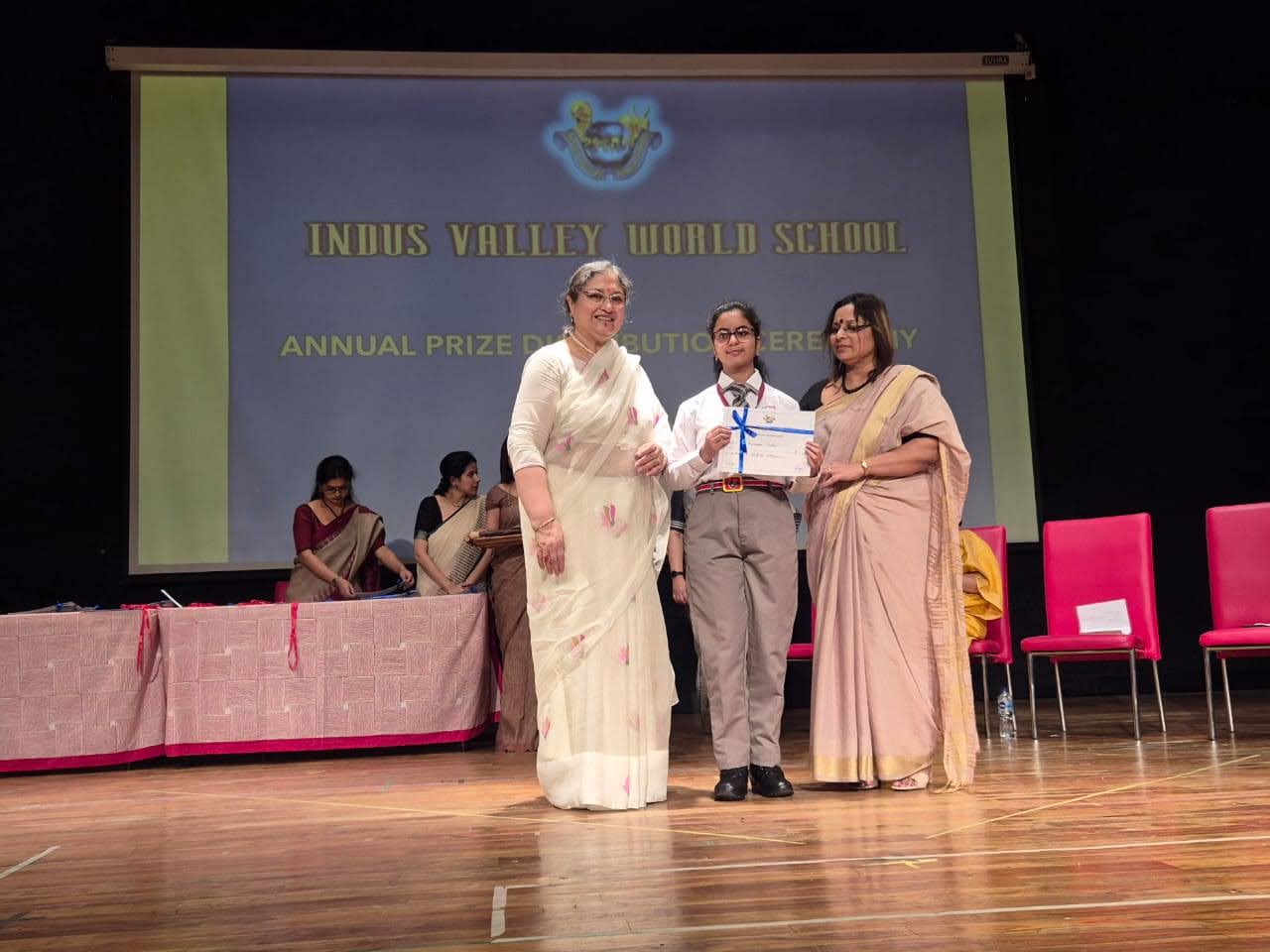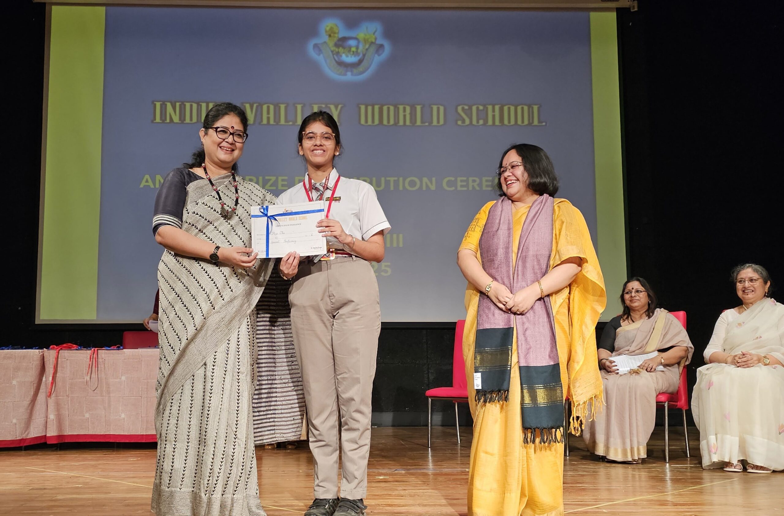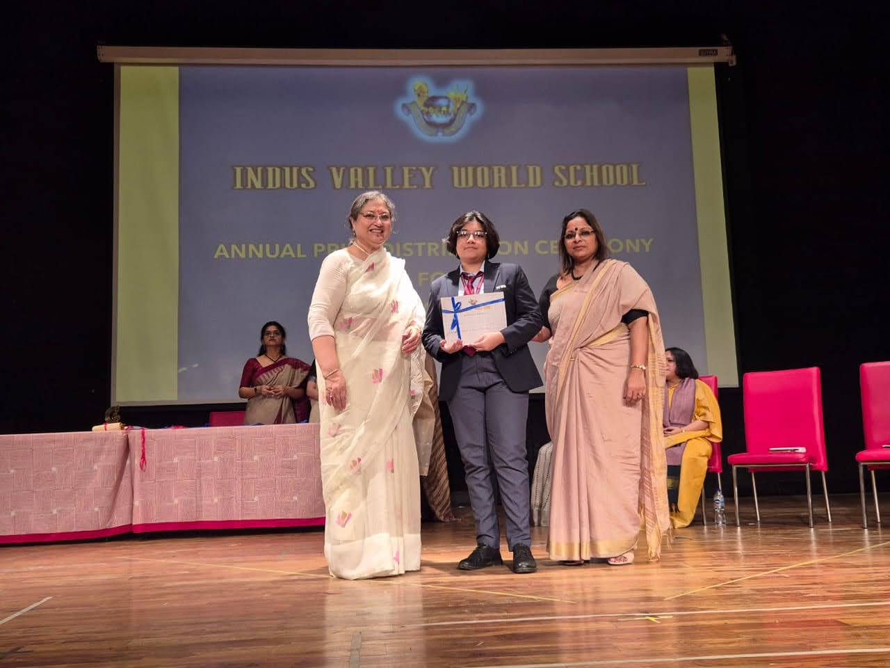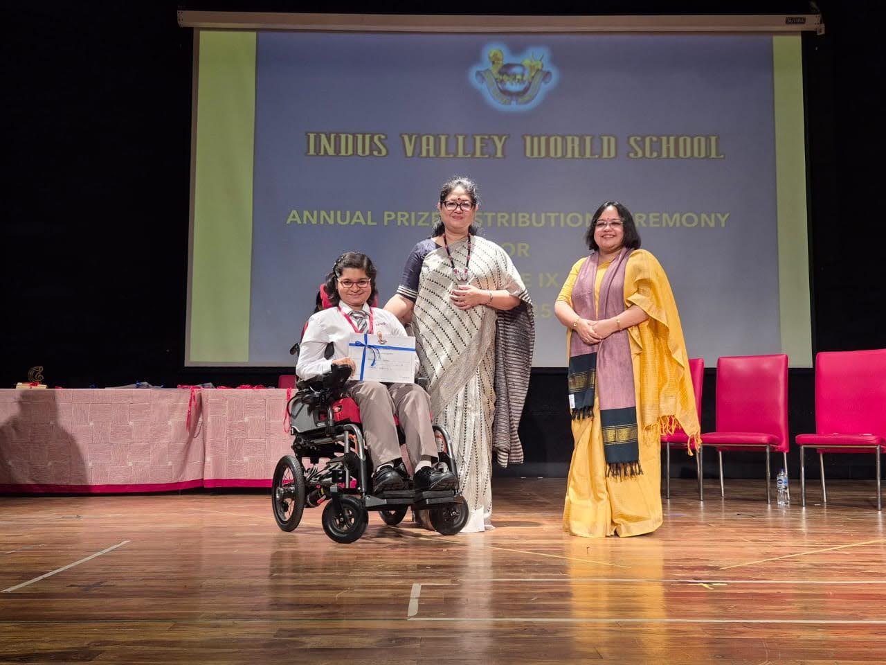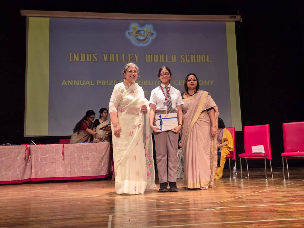 Students were awarded for excelling in several categories. Certificates were given for General Proficiency, Subject Excellence, 100% Attendance, Commendable Progress in academics, Sports and Co-curricular Activities and All Round Excellence. Certificates of Appreciation were awarded to a few students from grades 9 and 11, who had rendered selfless service to Children with Special Needs as Readers and Prodders thereby helping in the smooth facilitation of their papers during the Board Examinations.