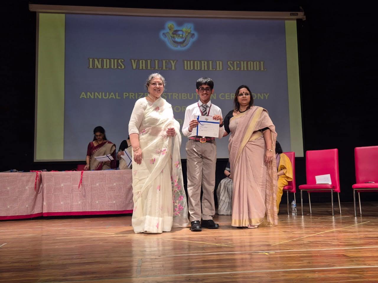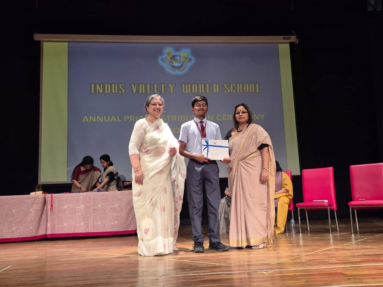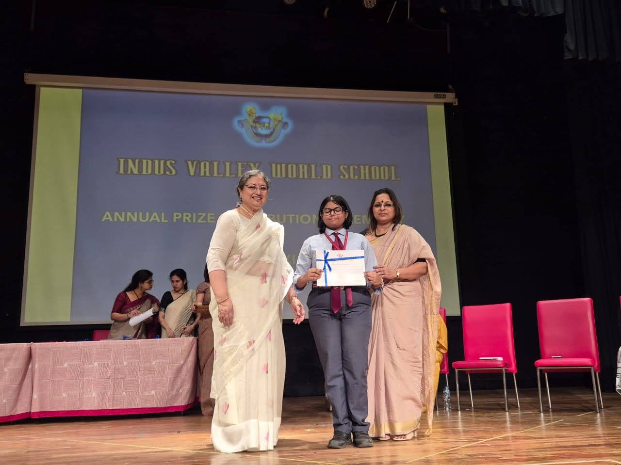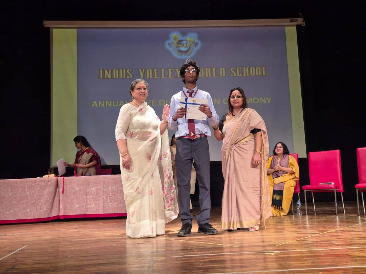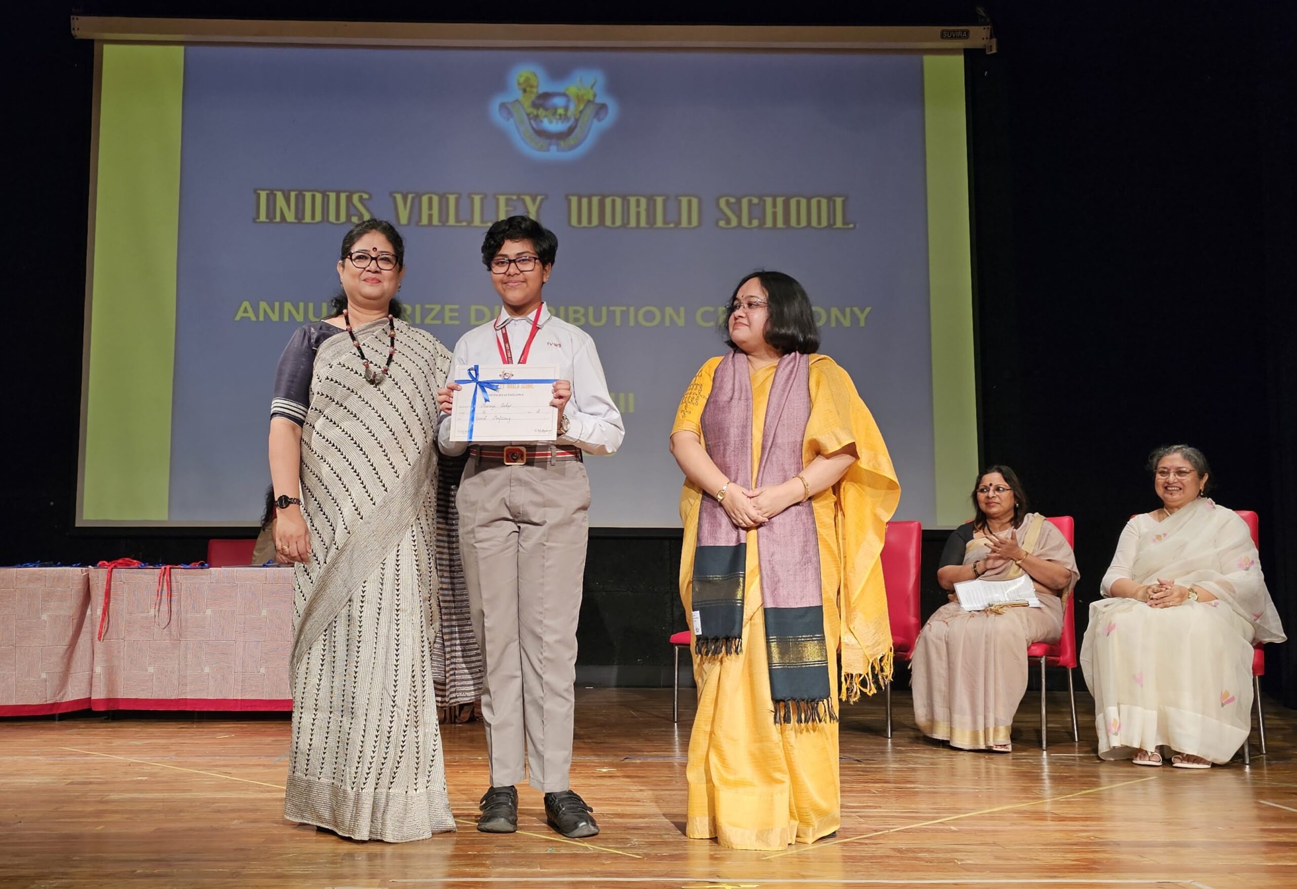 Students were awarded for excelling in several categories. Certificates were given for General Proficiency, Subject Excellence, 100% Attendance, Commendable Progress in academics, Sports and Co-curricular Activities and All Round Excellence. Certificates of Appreciation were awarded to a few students from grades 9 and 11, who had rendered selfless service to Children with Special Needs as Readers and Prodders thereby helping in the smooth facilitation of their papers during the Board Examinations.