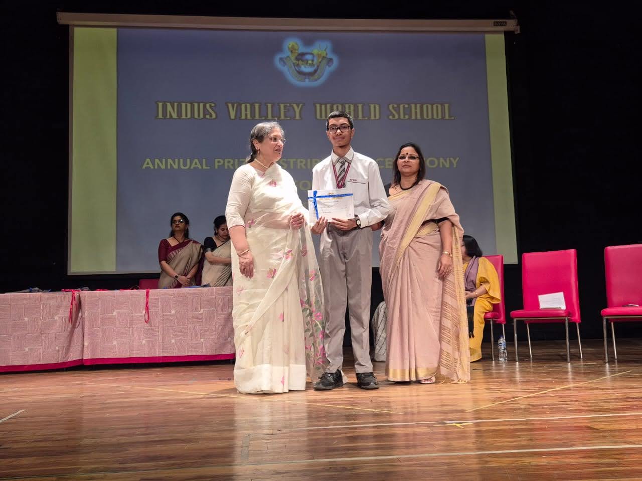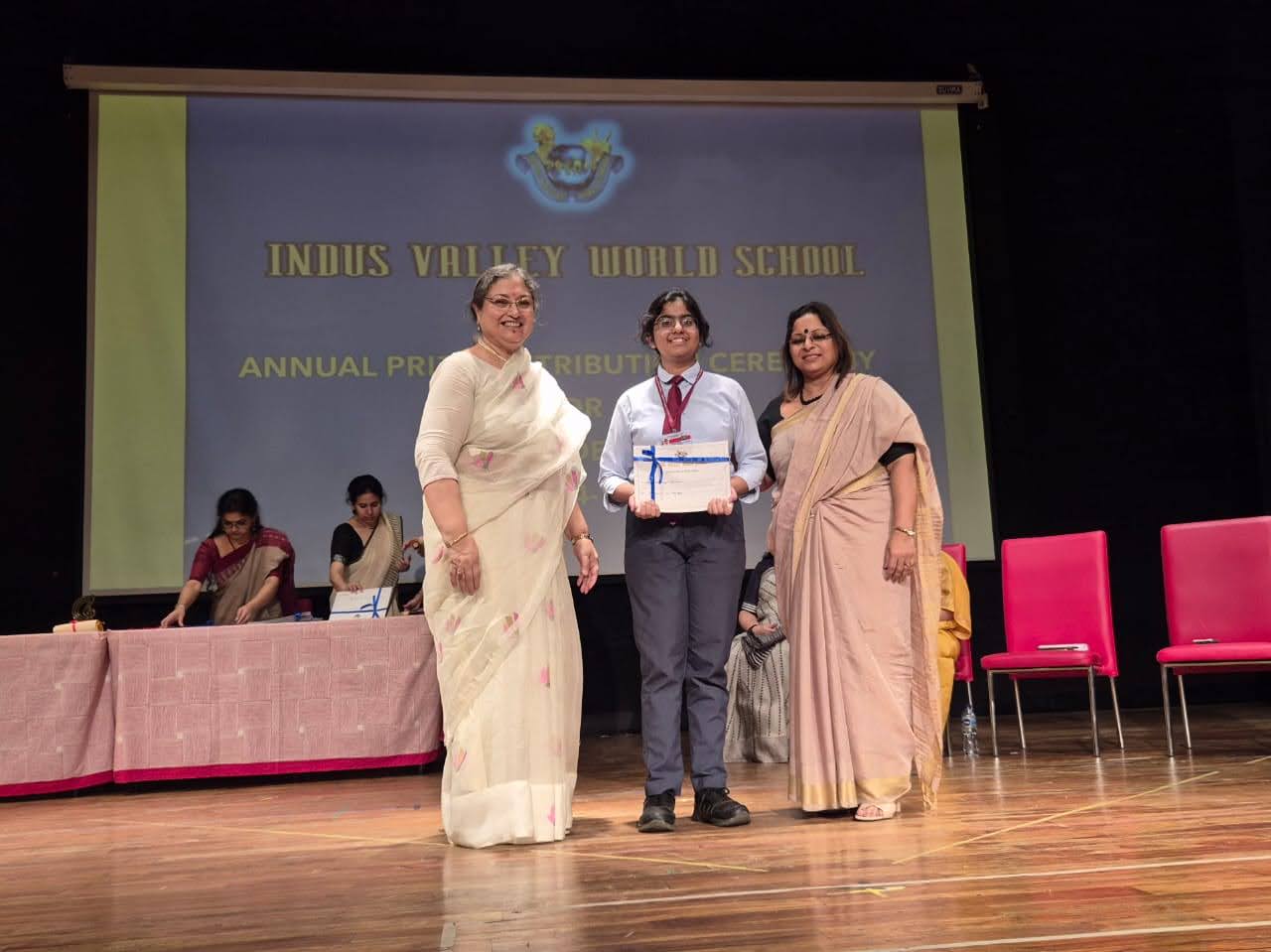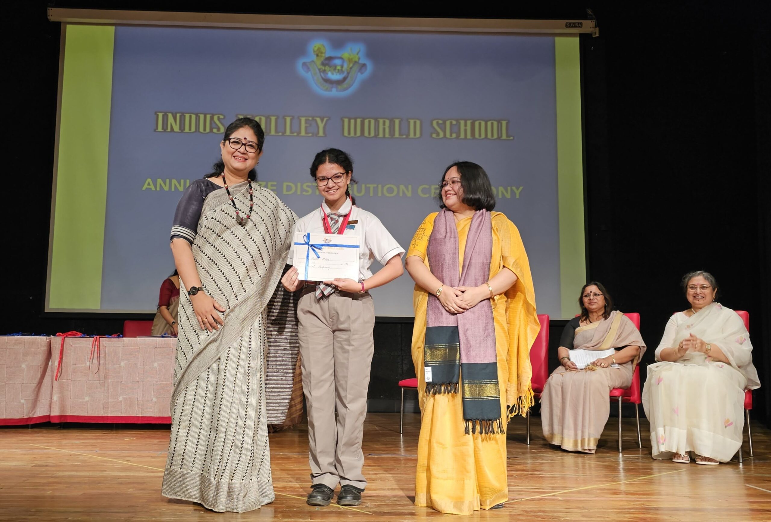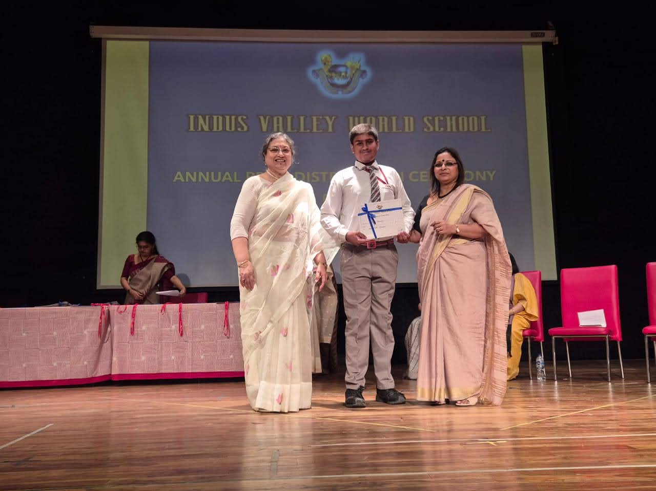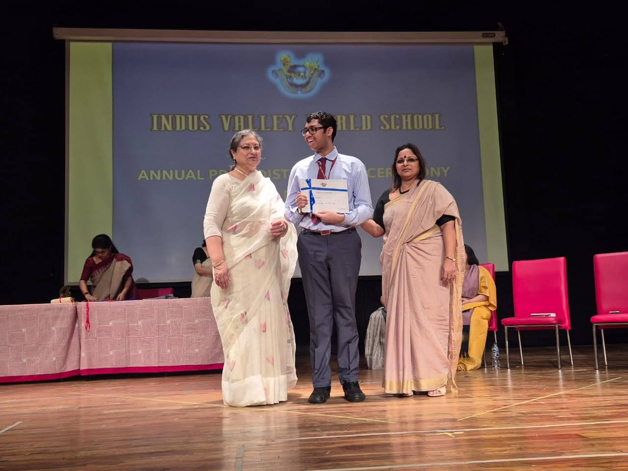 Students were awarded for excelling in several categories. Certificates were given for General Proficiency, Subject Excellence, 100% Attendance, Commendable Progress in academics, Sports and Co-curricular Activities and All Round Excellence. Certificates of Appreciation were awarded to a few students from grades 9 and 11, who had rendered selfless service to Children with Special Needs as Readers and Prodders thereby helping in the smooth facilitation of their papers during the Board Examinations.
