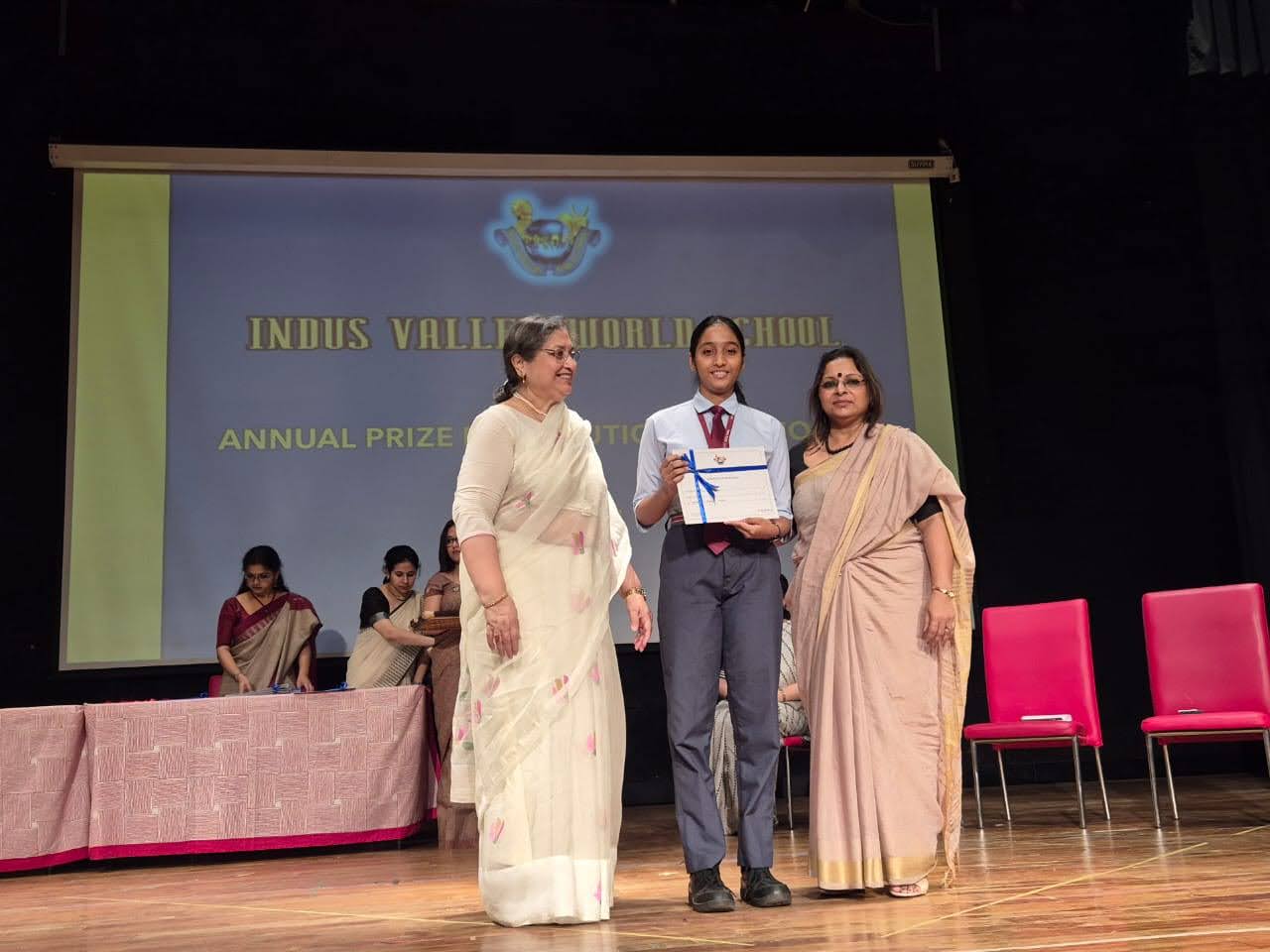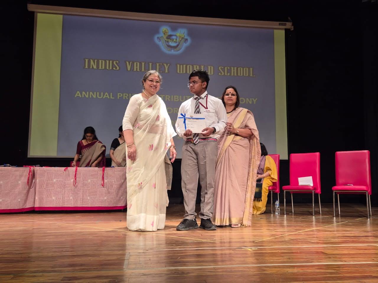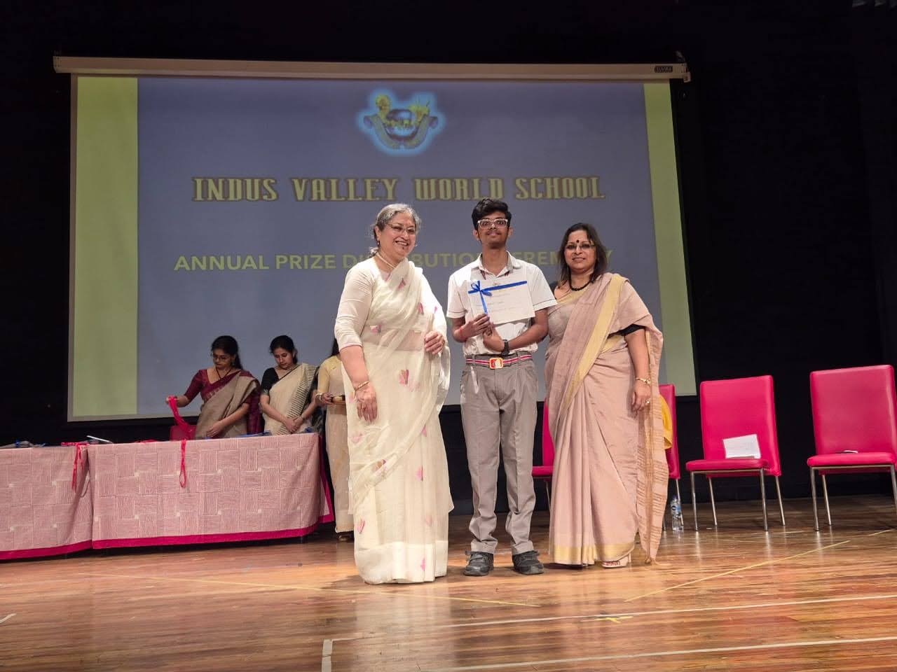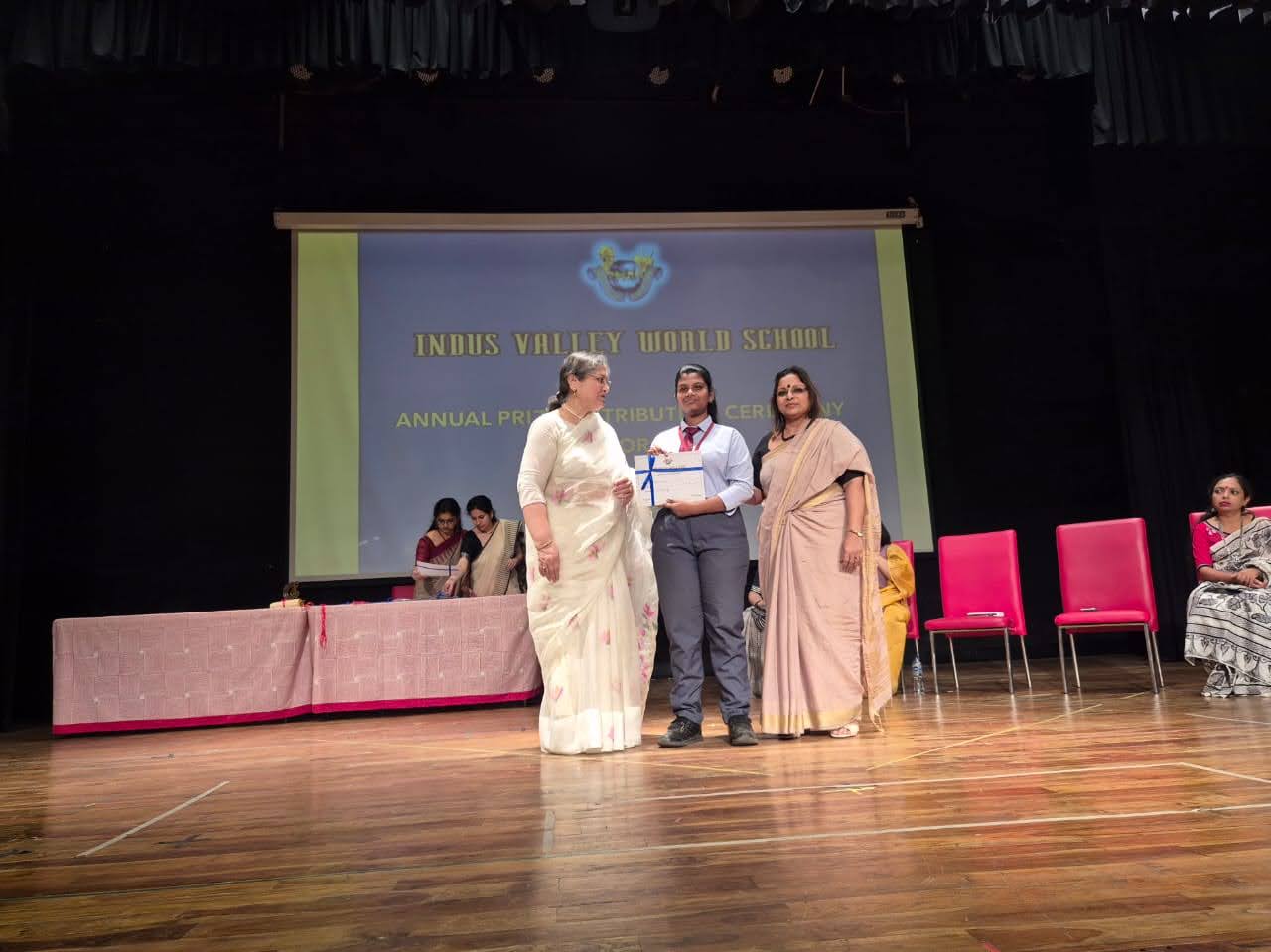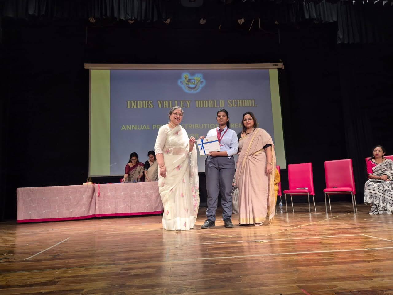 Students were awarded for excelling in several categories. Certificates were given for General Proficiency, Subject Excellence, 100% Attendance, Commendable Progress in academics, Sports and Co-curricular Activities and All Round Excellence. Certificates of Appreciation were awarded to a few students from grades 9 and 11, who had rendered selfless service to Children with Special Needs as Readers and Prodders thereby helping in the smooth facilitation of their papers during the Board Examinations.