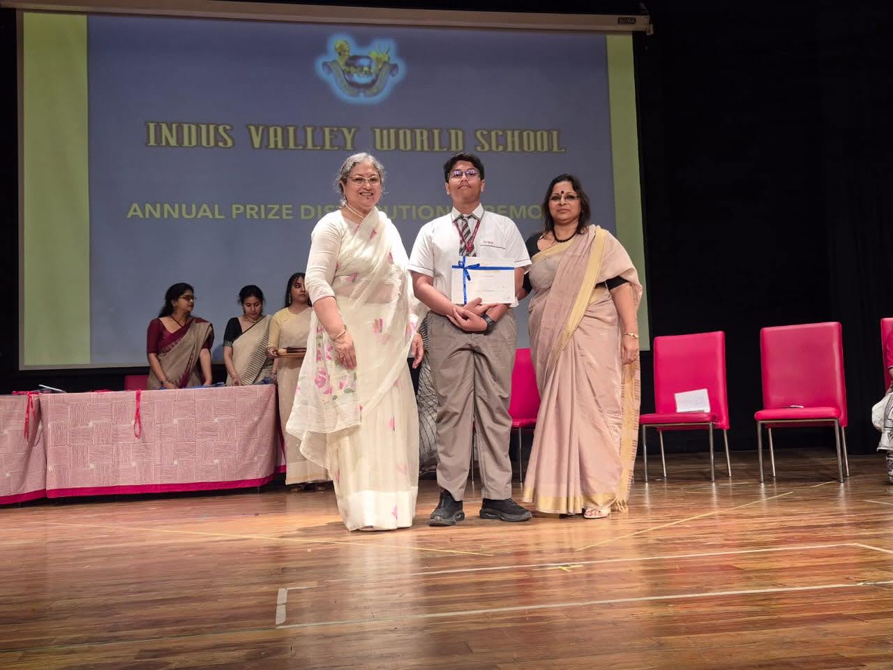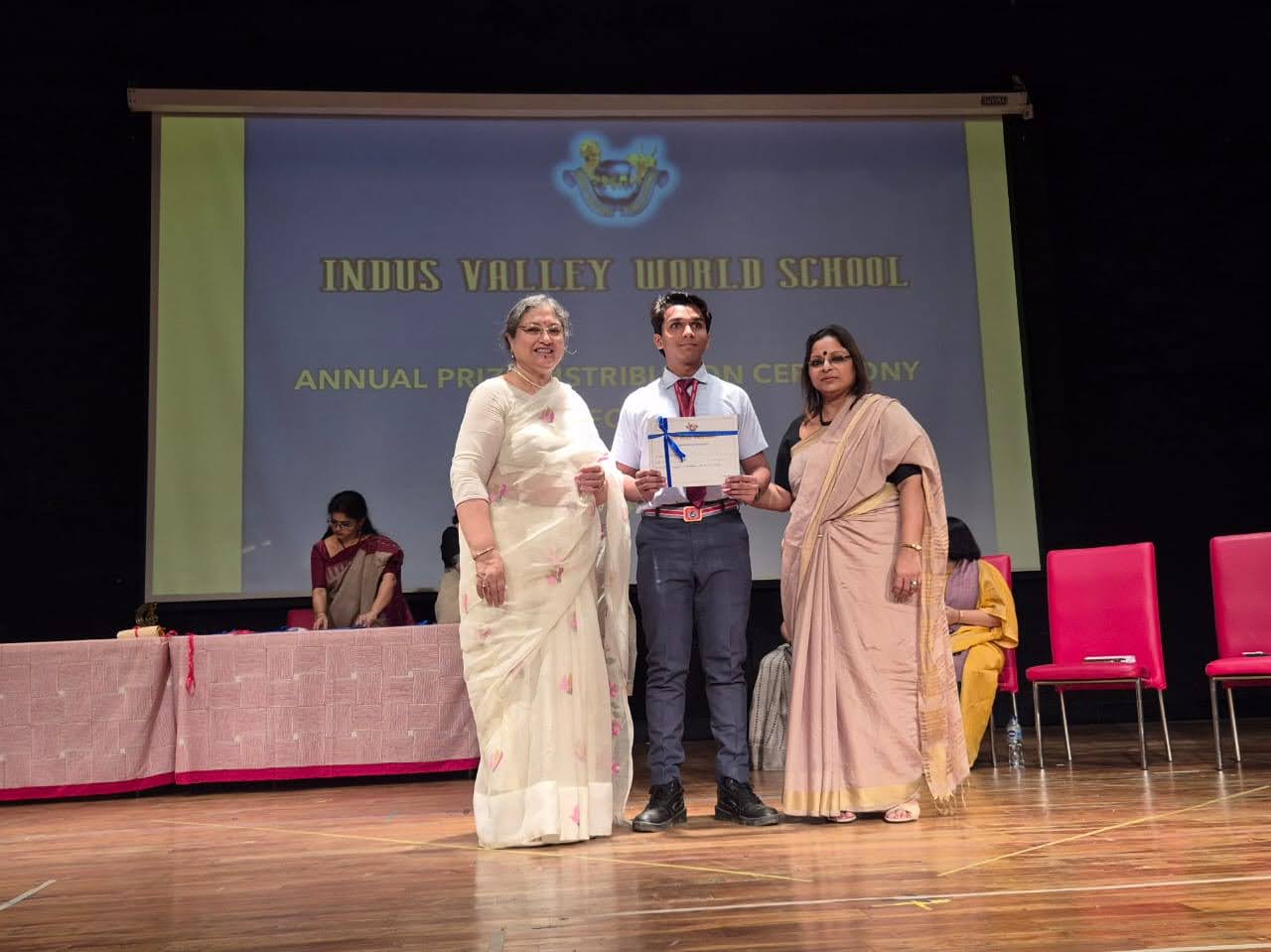 Certificates were also presented to the winners of the two-day inter- house fest Sangam, where students from grades 8 and 9 competed in a plethora of activities ranging from creative writing in the three languages, art and craft and elocution to dance, singing and non-fire cooking. The four Houses accumulated points during the competition and Indus House raised the Champions Trophy for scoring the highest points based on the number of winners.